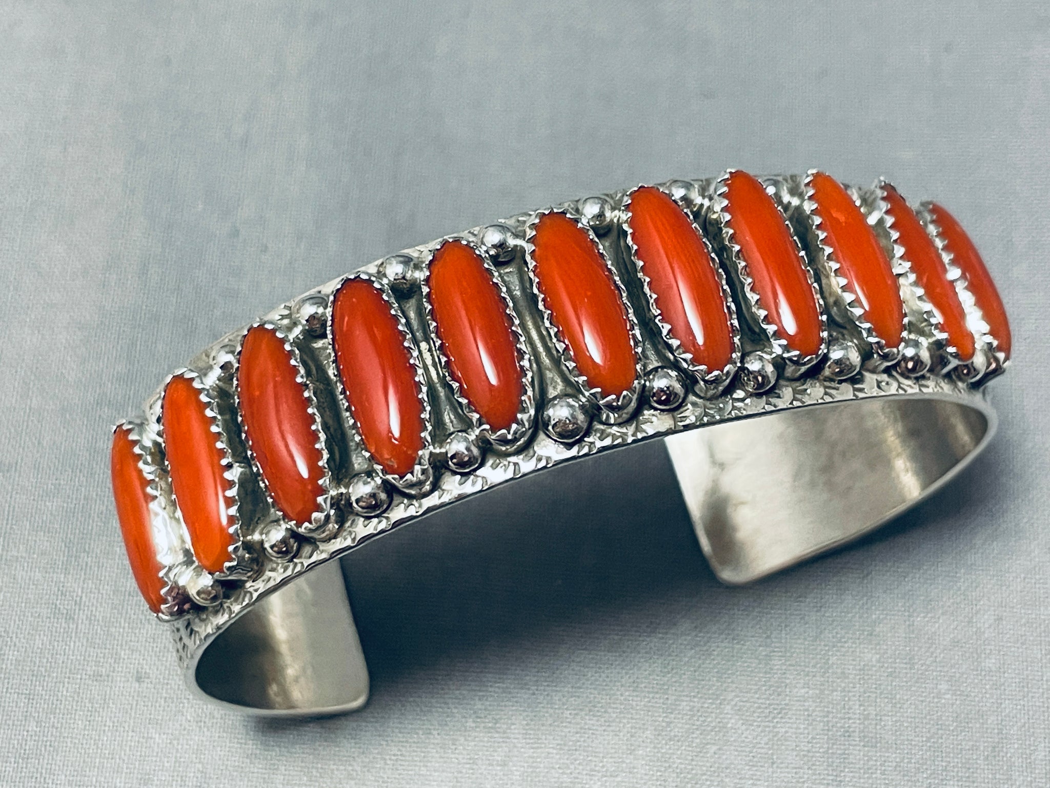 Important Long Coral Extremely Rare Native American Navajo Sterling Silver Bracelet