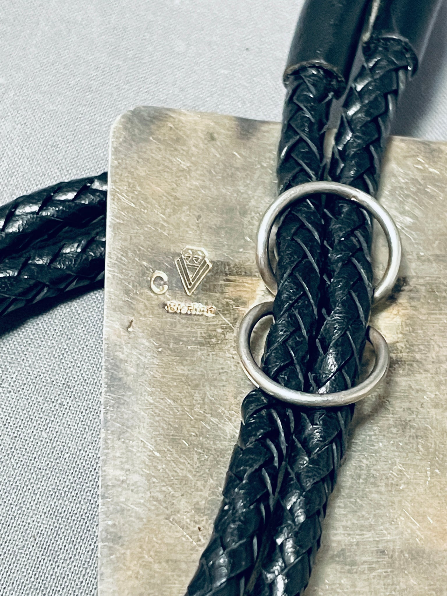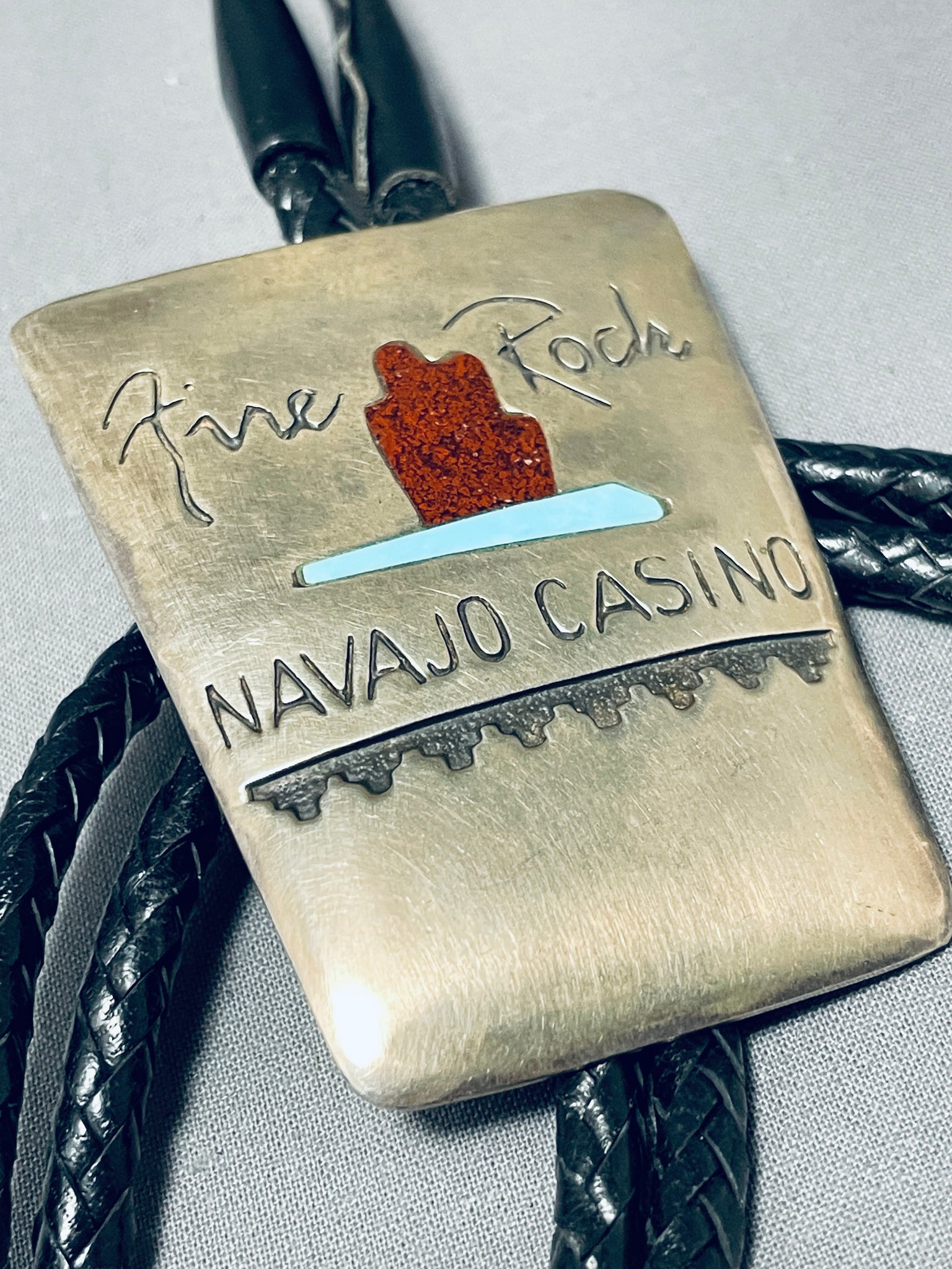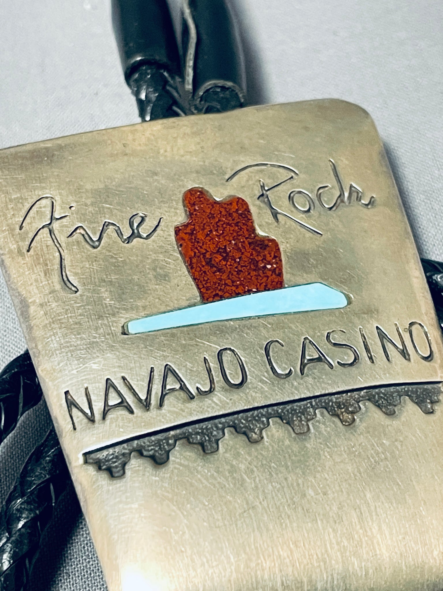 Important Native American Navajo Firerock Employee Turquoise Sterling Silver Bolo Tie