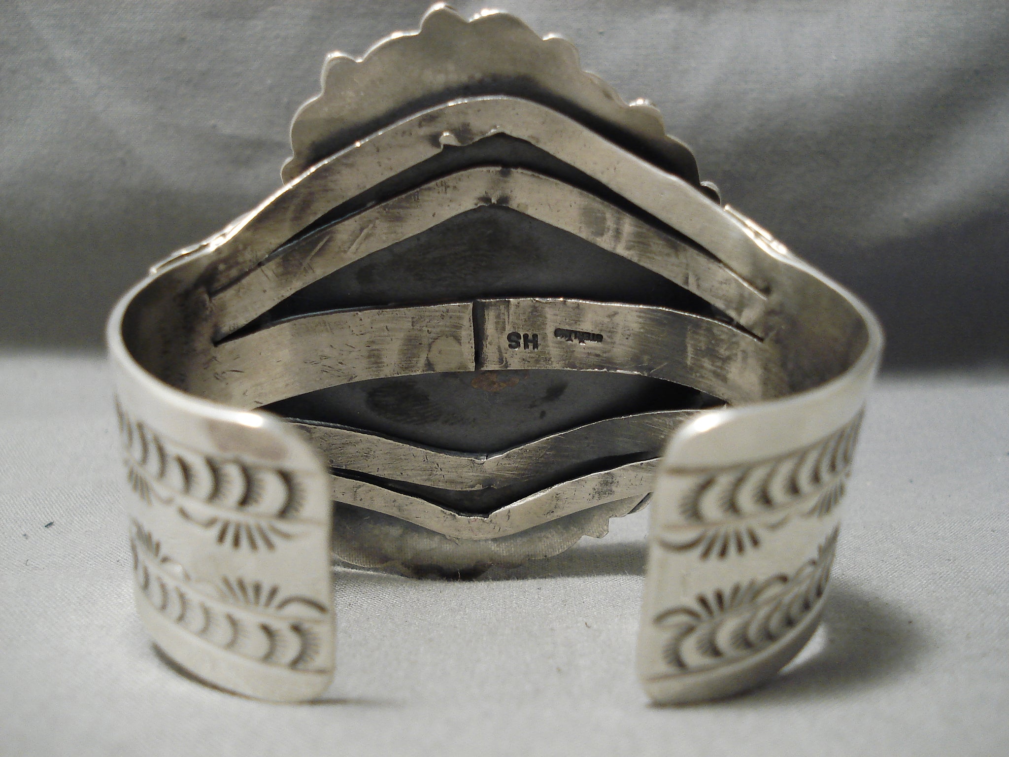 Important Native American Navajo Hand Scalloped Sterling Silver Royston Turquoise Bracelet