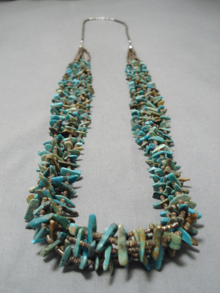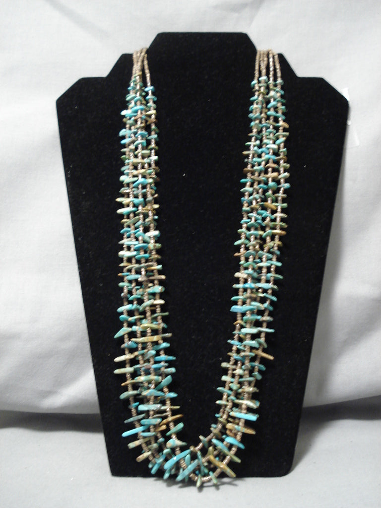 Important Native American Navajo Roe Yazzie Royston Turquoise Sterling Silver Necklace