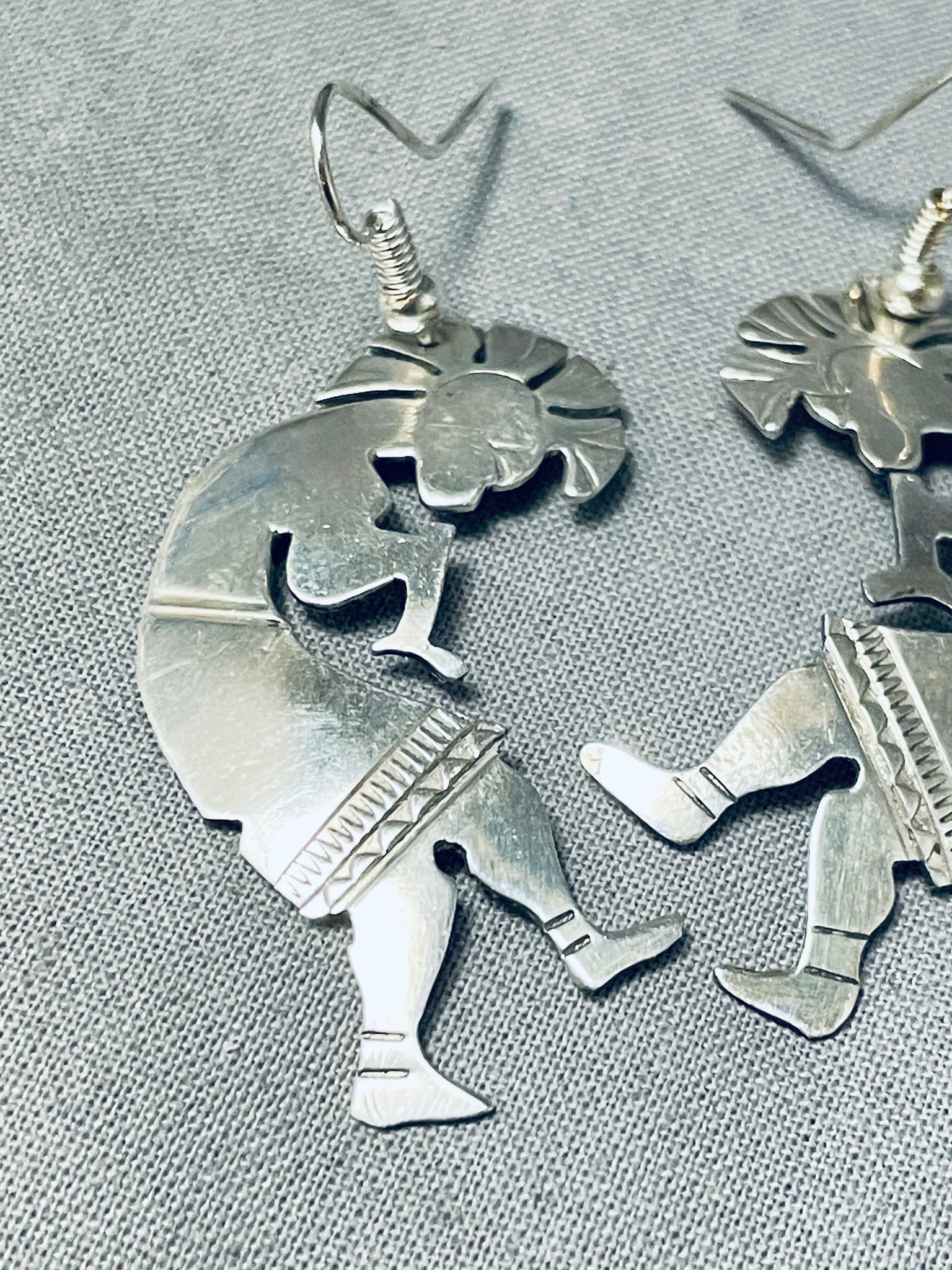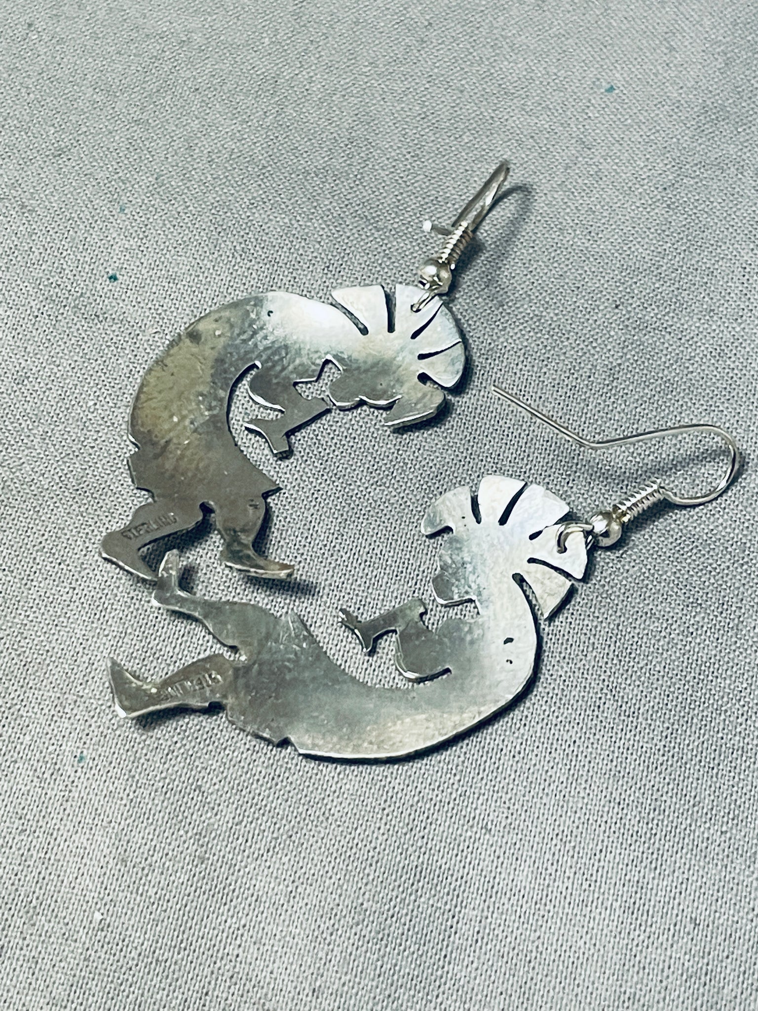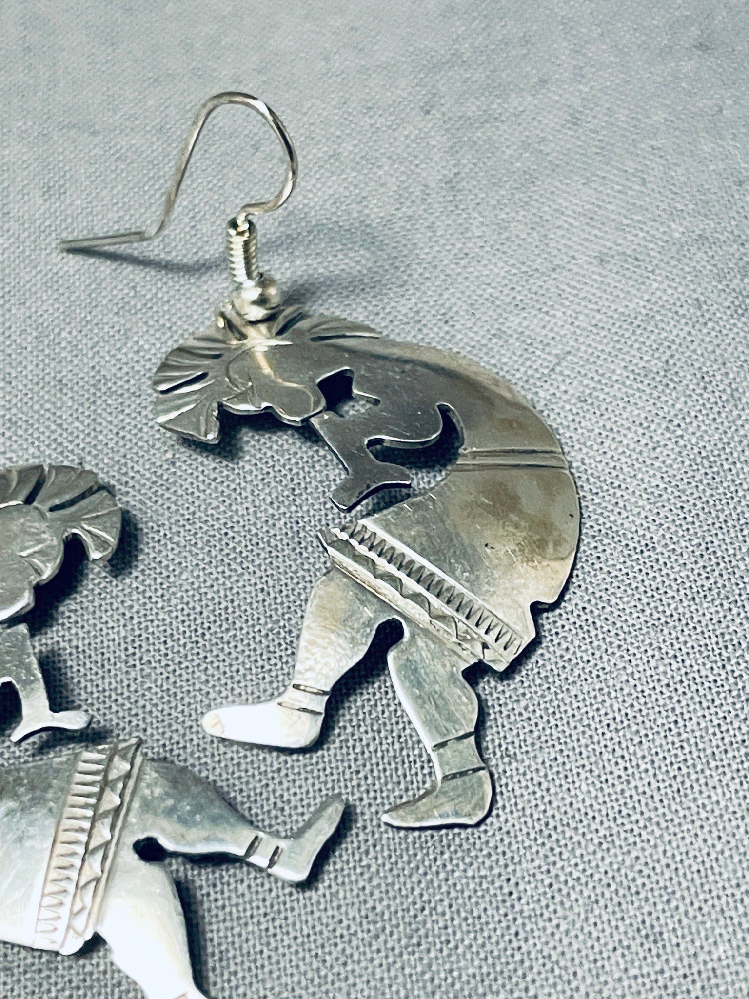 Important Native American Navajo Sterling Silver Kokopelli Earrings
