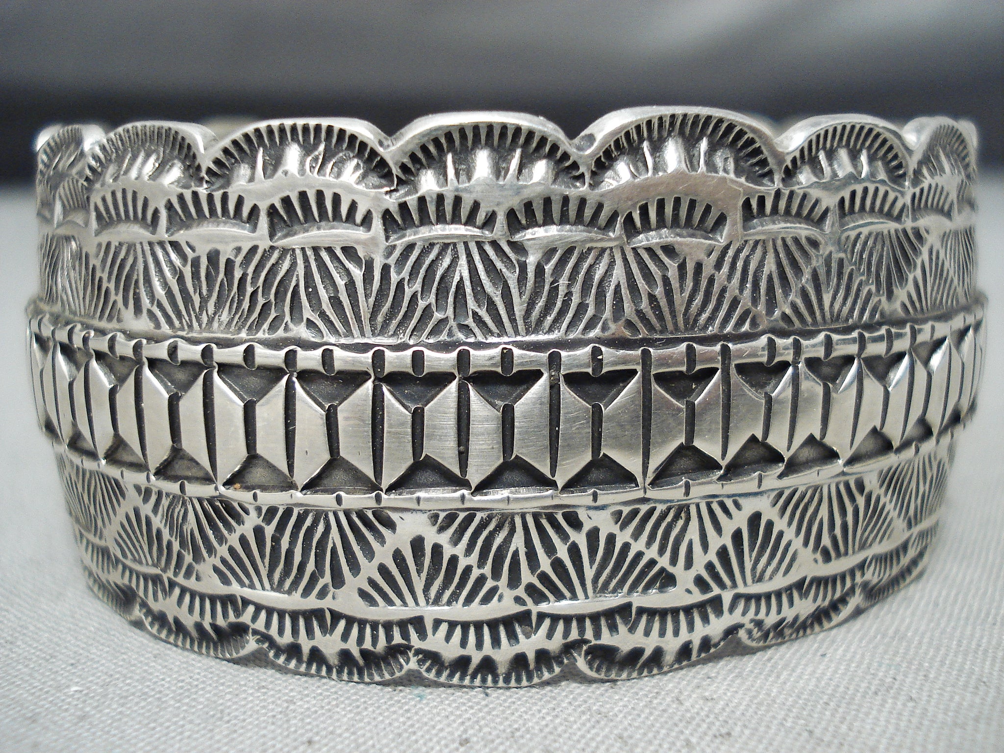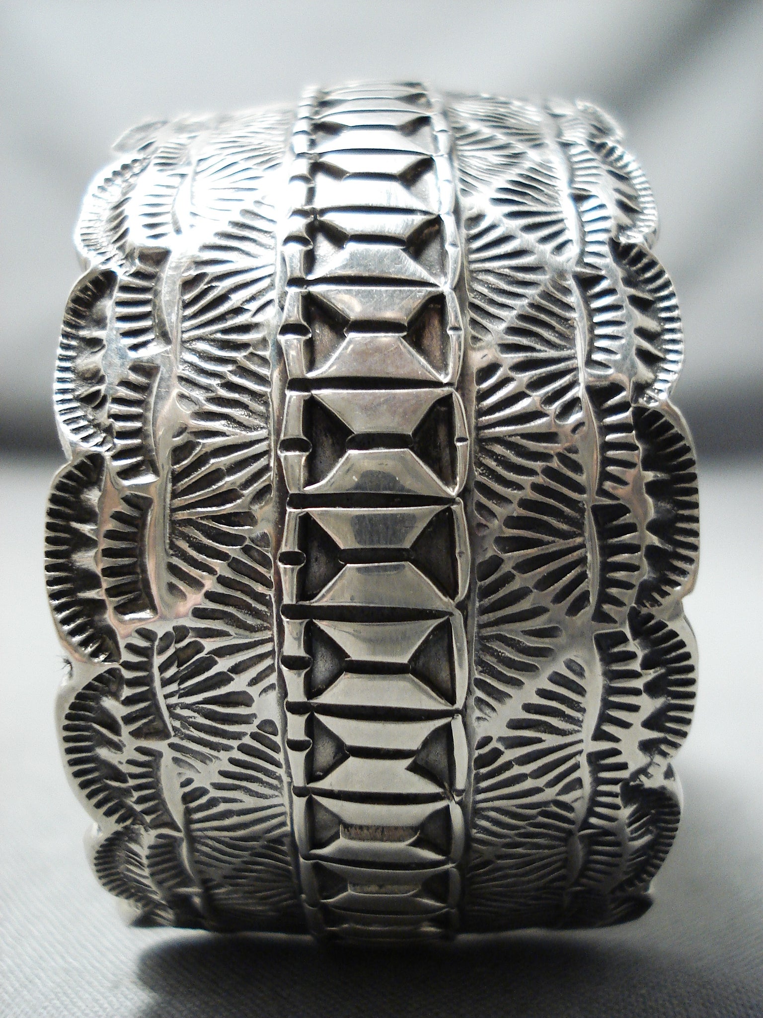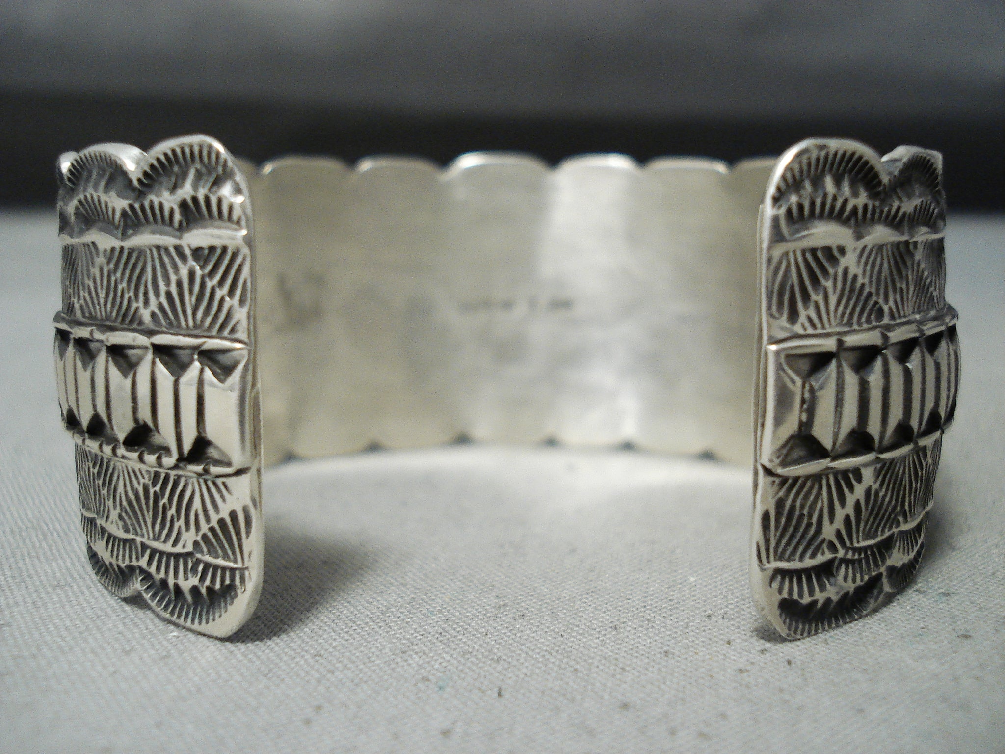 Important Native American Navajo Tillie Jon Detailed Sterling Silver Bracelet