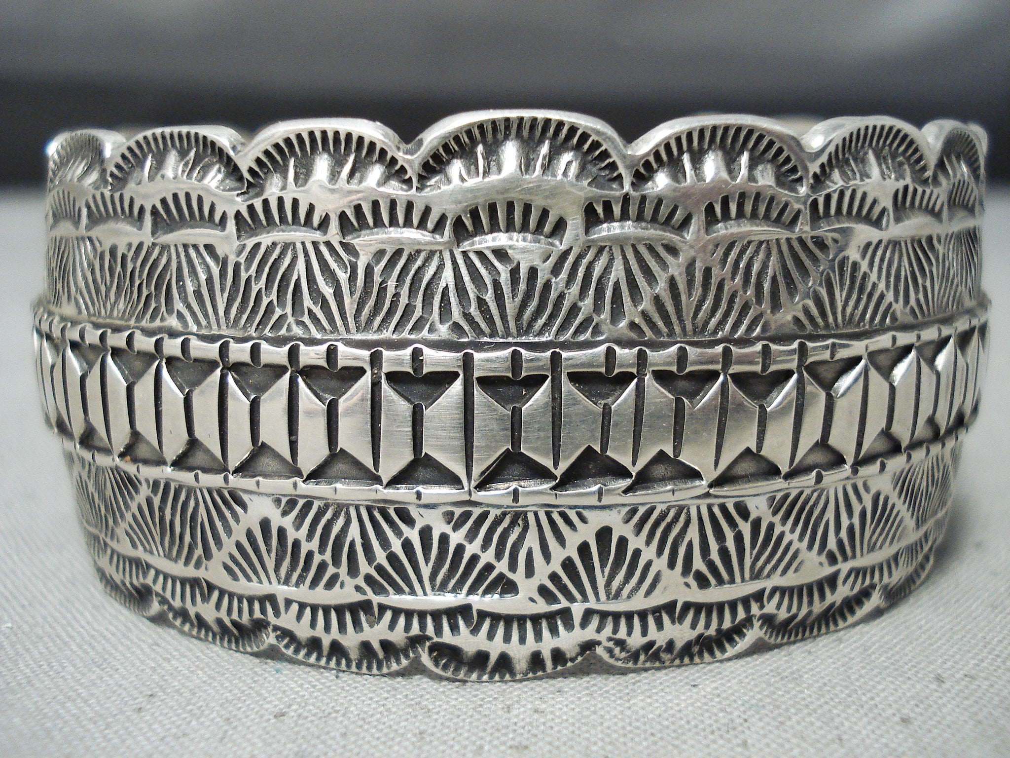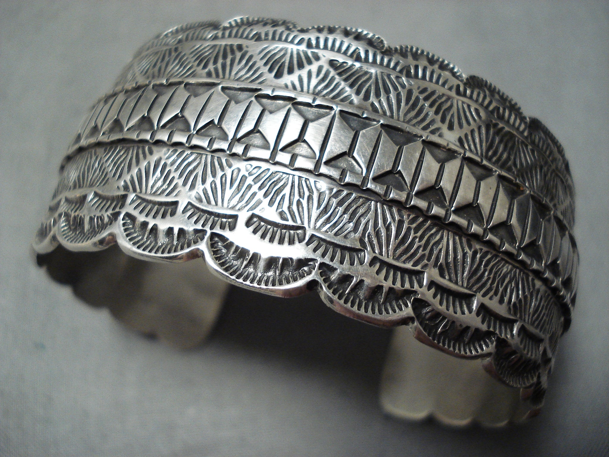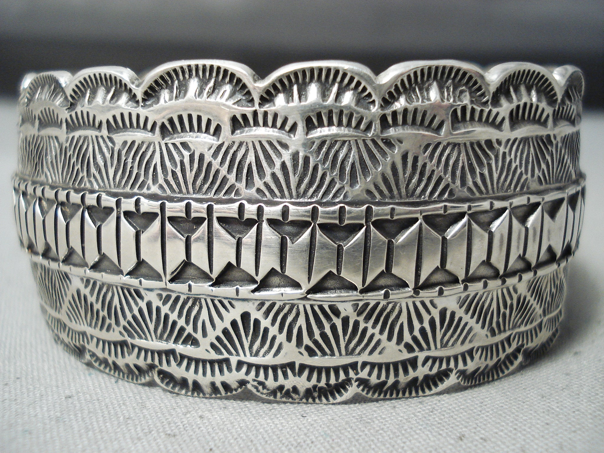 Important Native American Navajo Tillie Jon Detailed Sterling Silver Bracelet