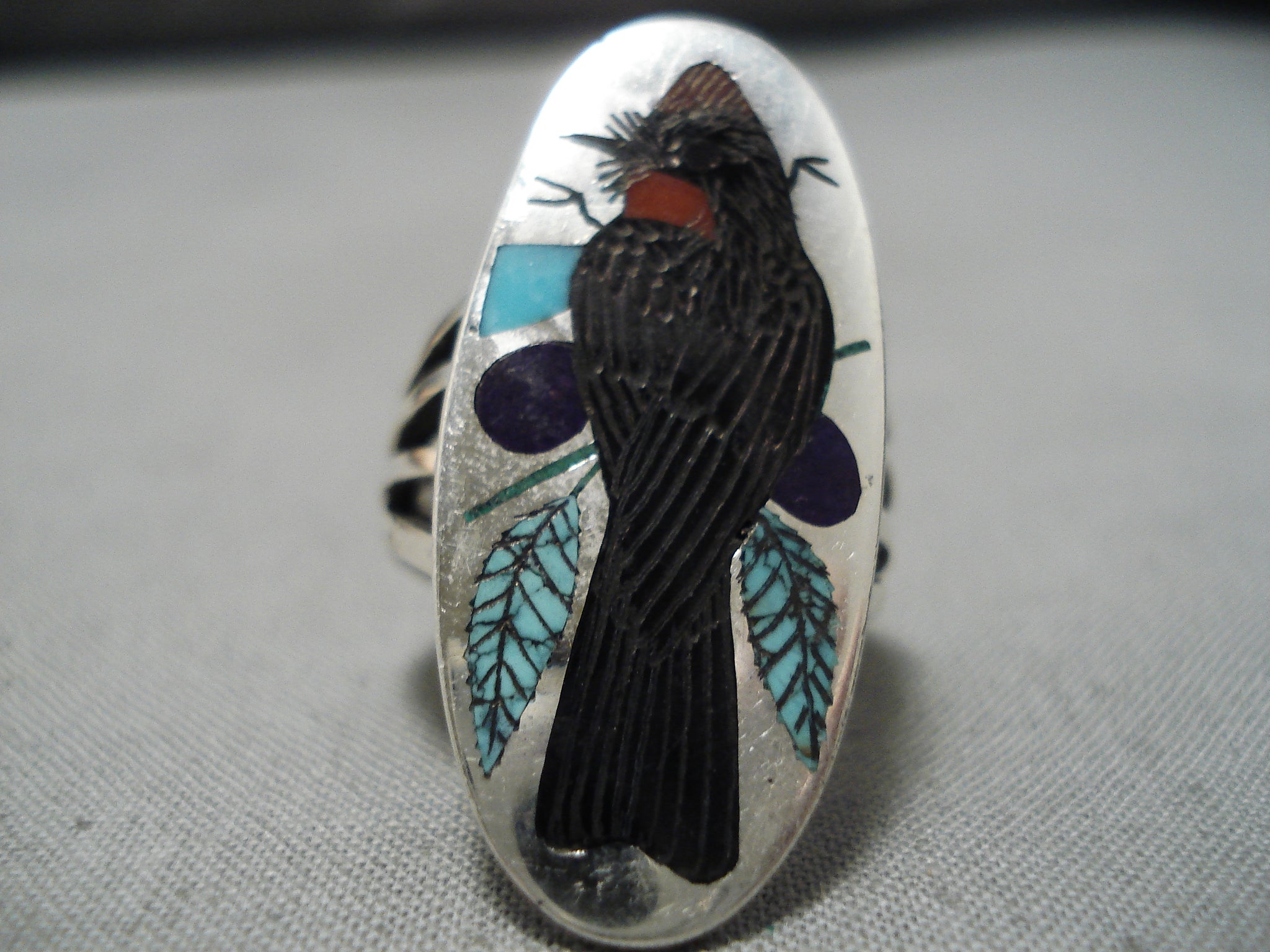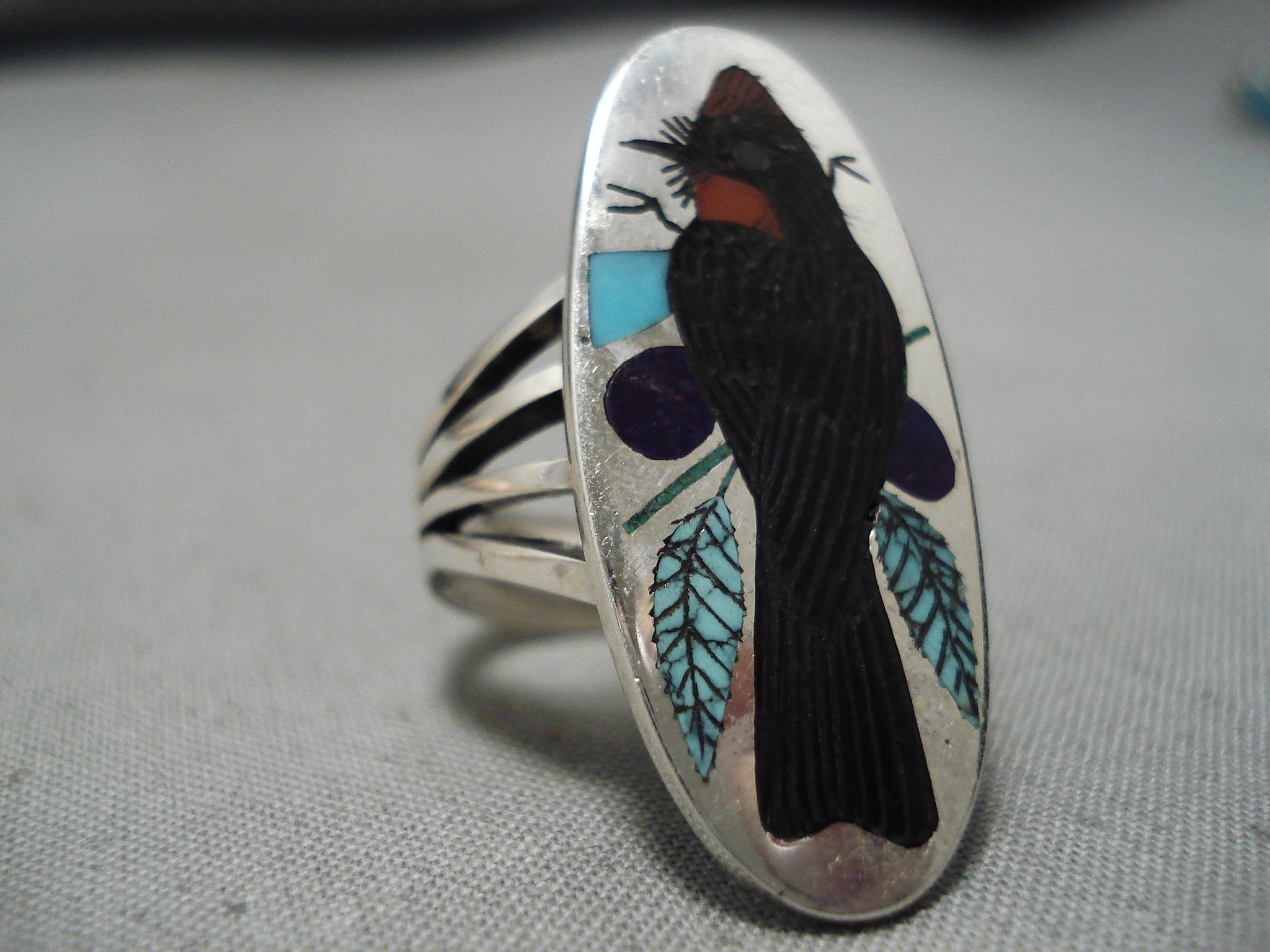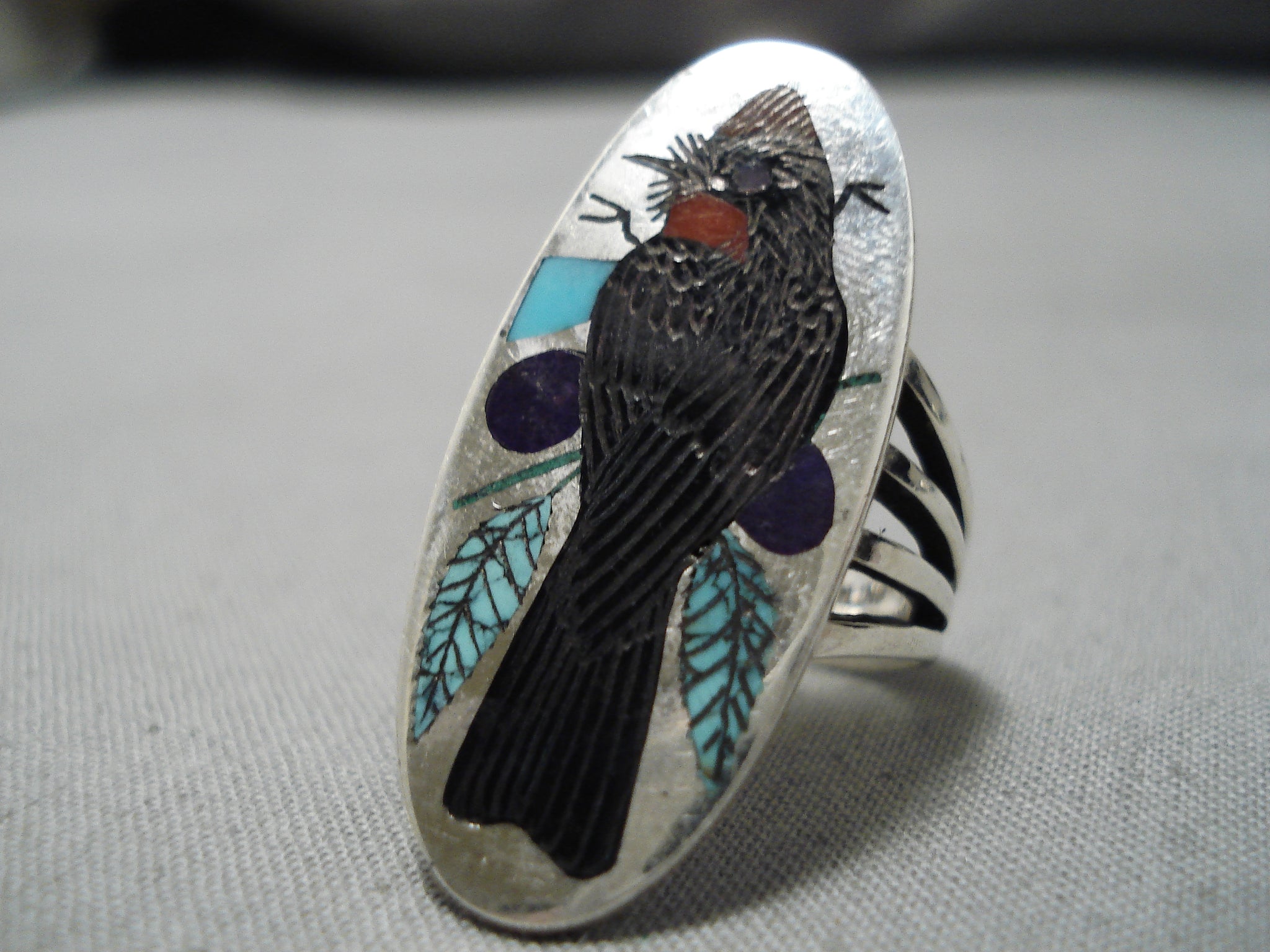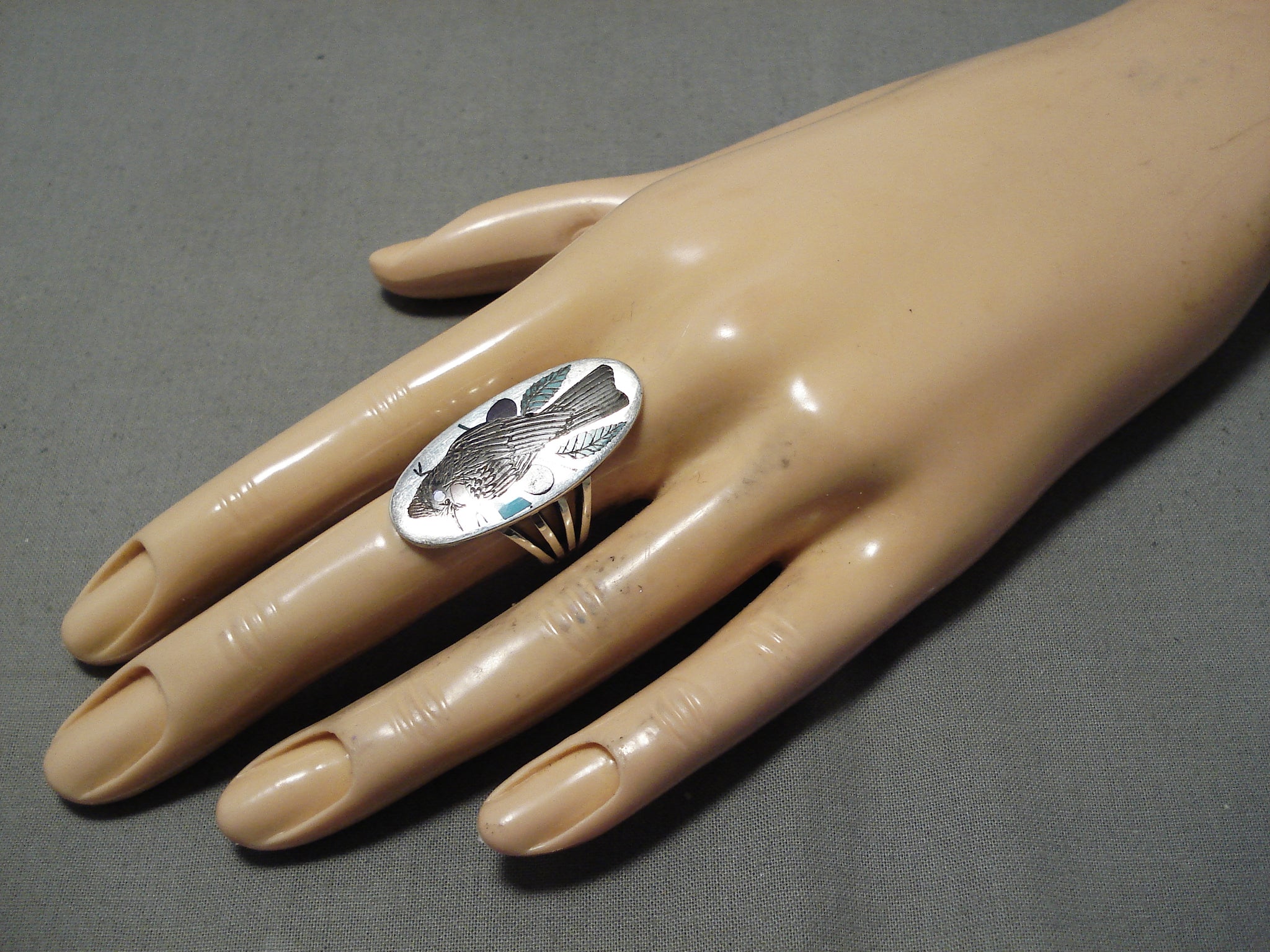 Important Native American Zuni Harlan Coonsis Bird Turquoise Sterling Silver Ring