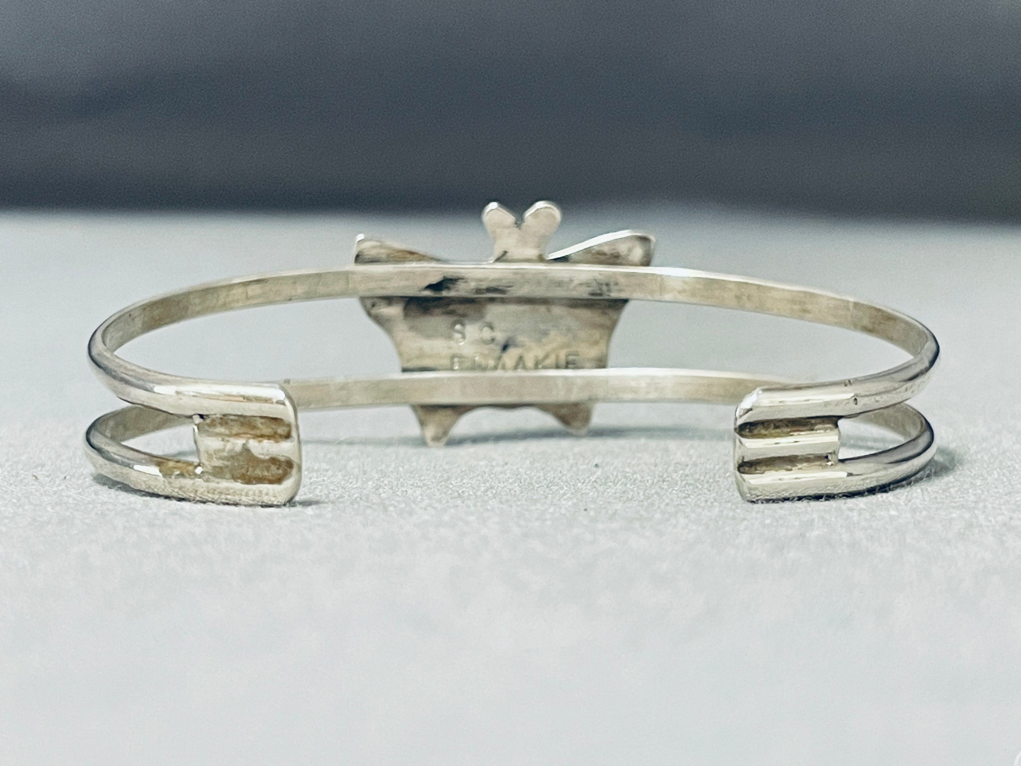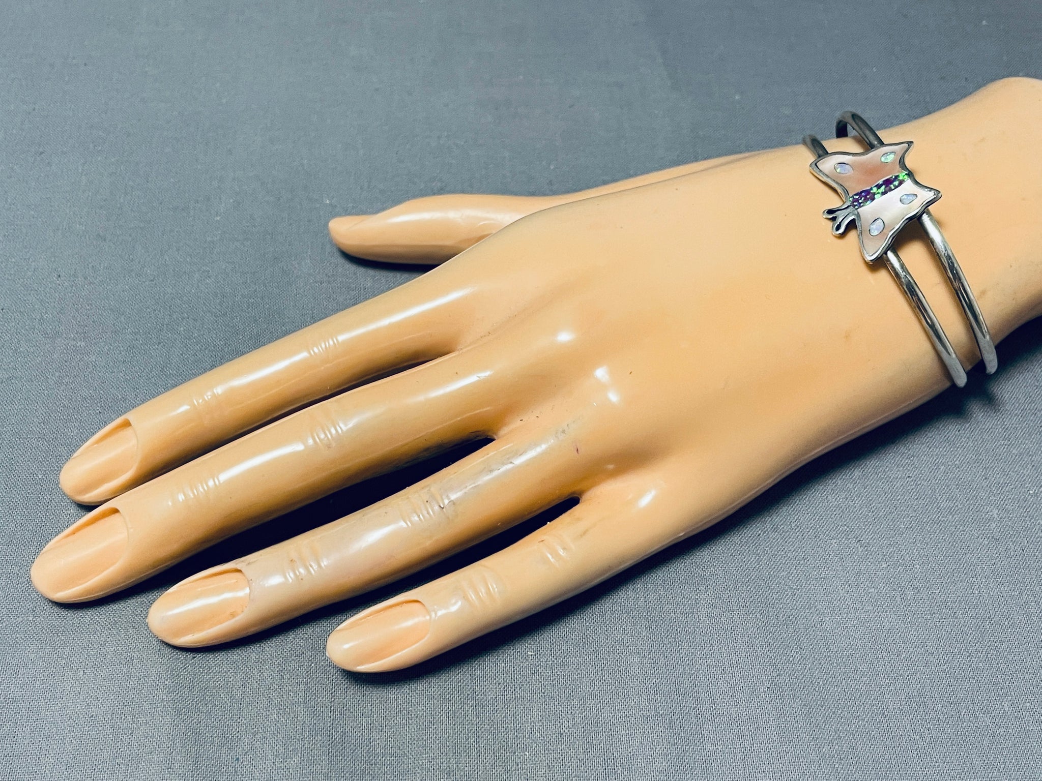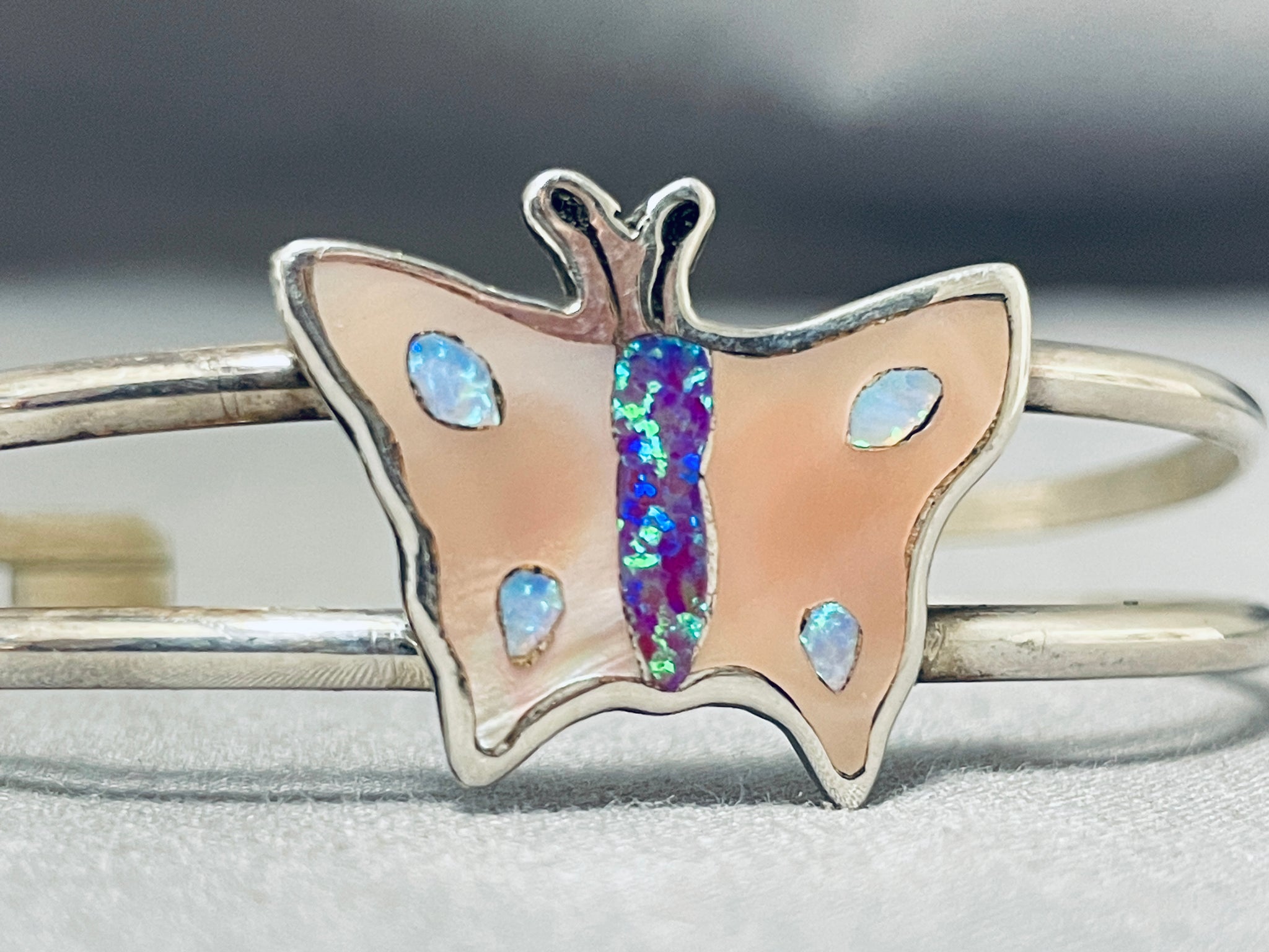 Important Native American Zuni Inlay Mother Of Pearl Butterfly Sterling Silver Bracelet