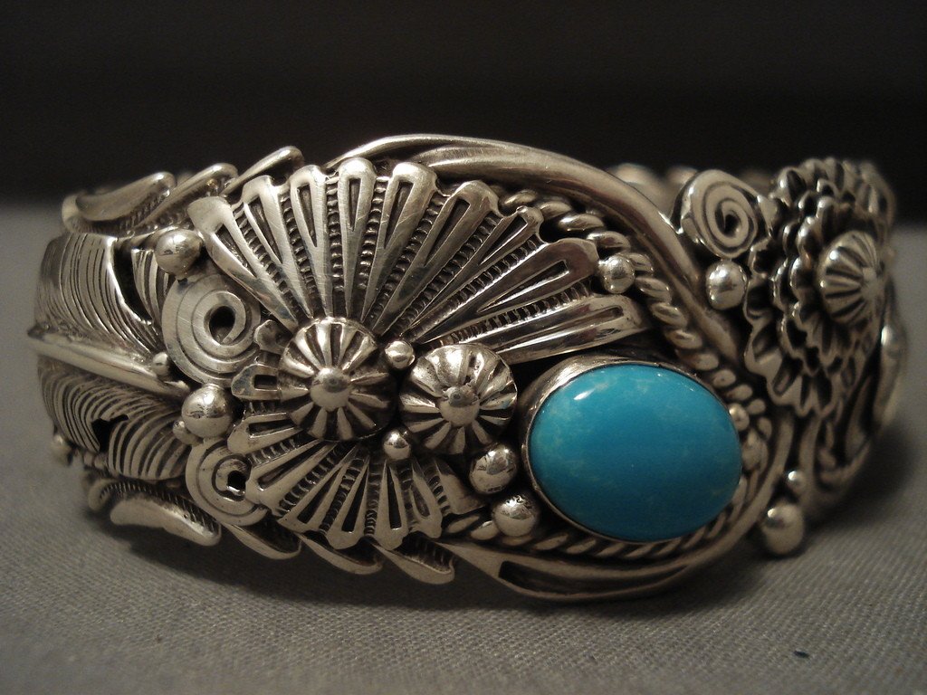 Important Navajo Sterling Native American Jewelry Silver Garden Ben Begaye Turquoise Bracelet