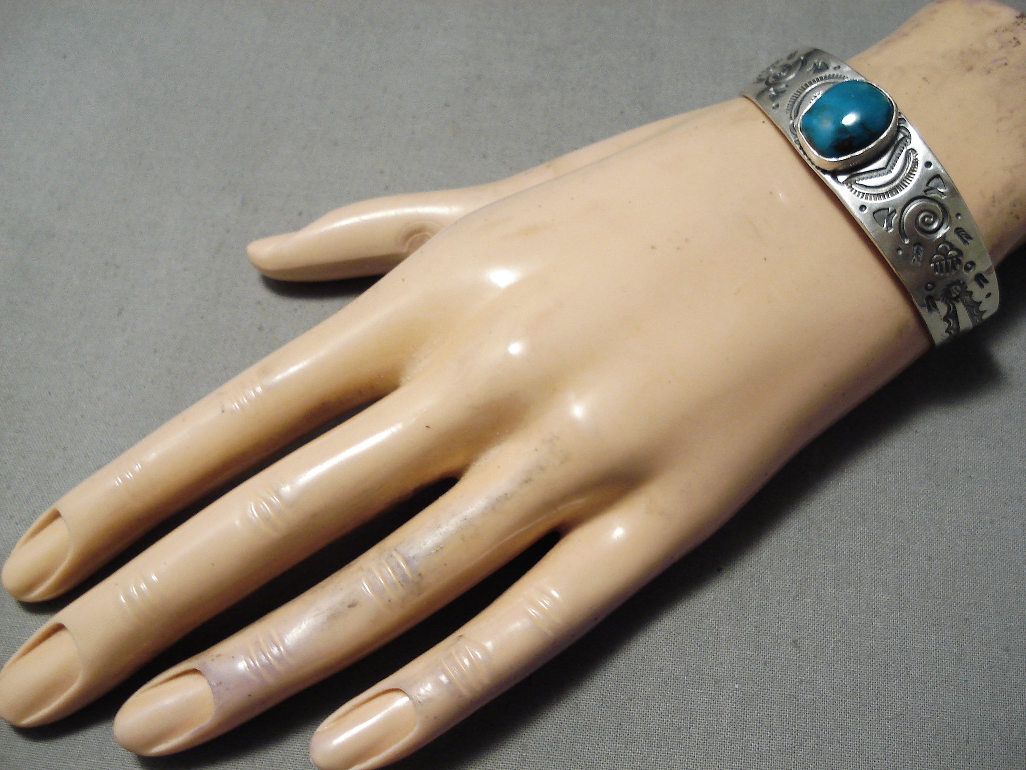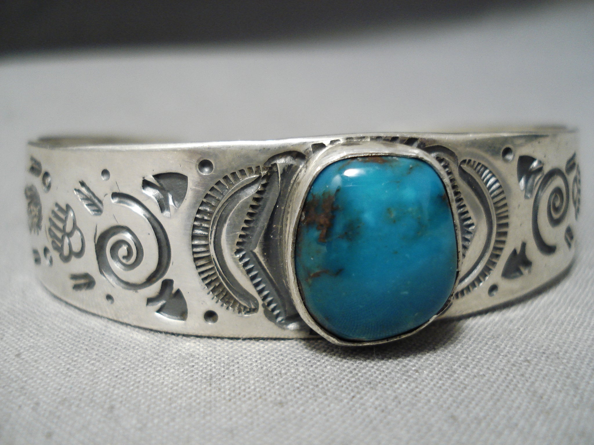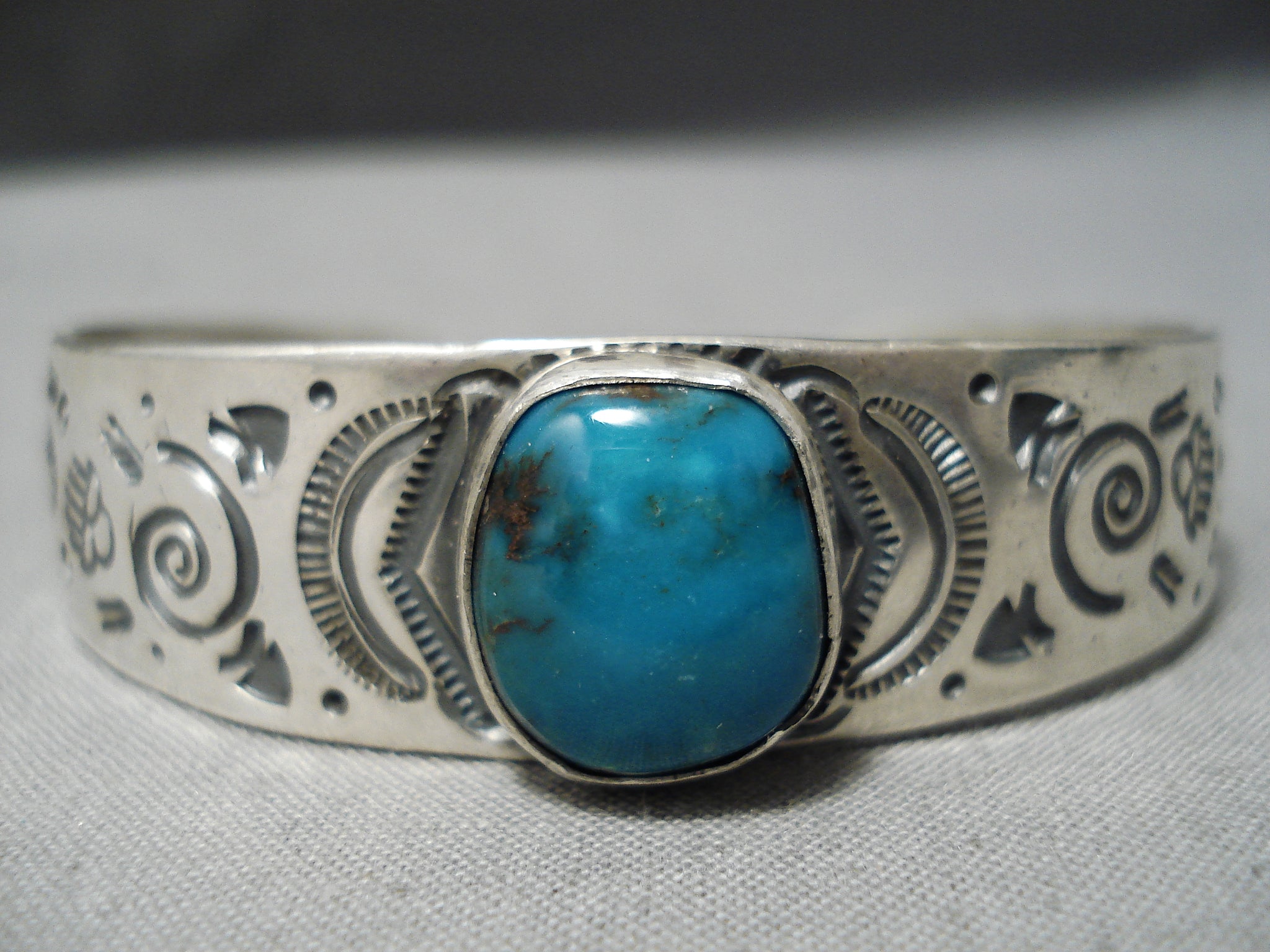 Important Navajoblue Diamond Turquoise Sterling Silver Bracelet