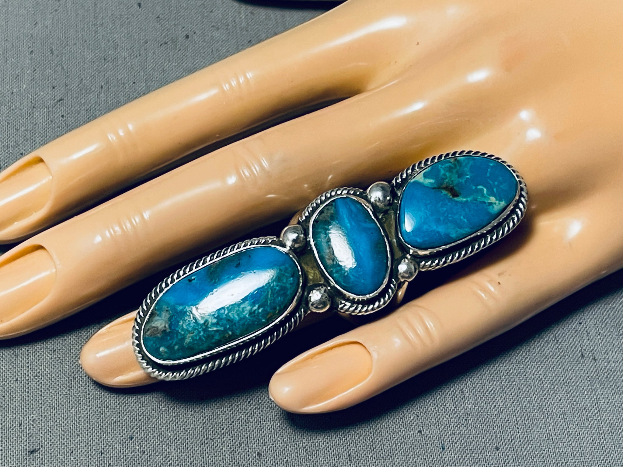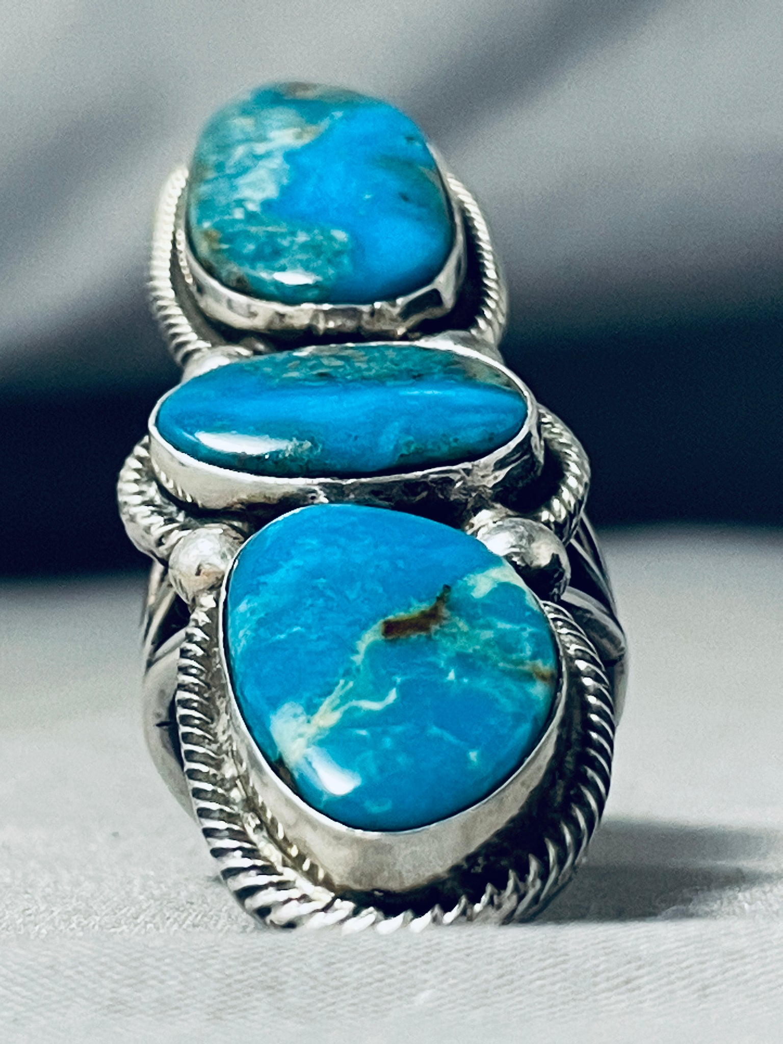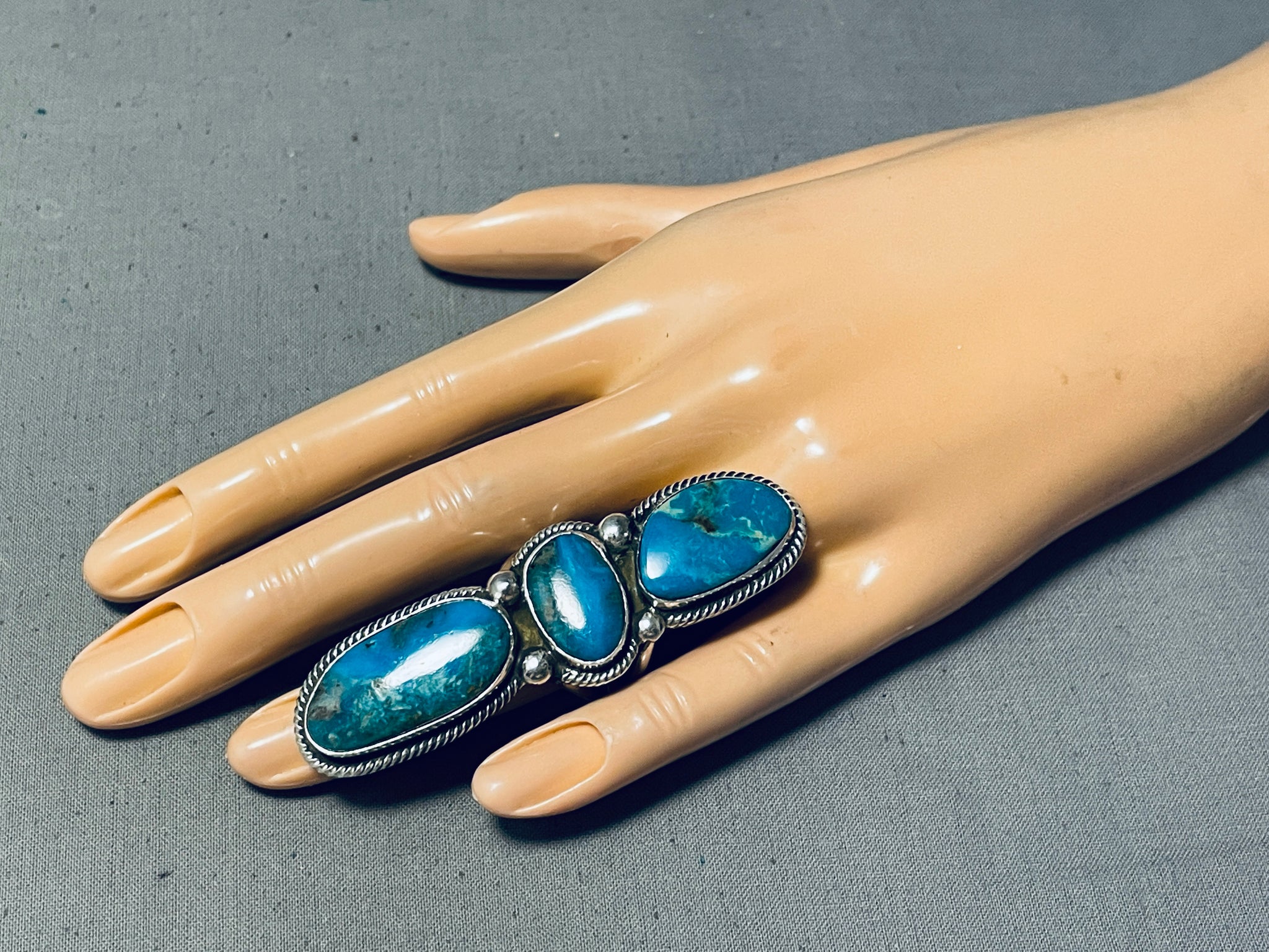 Important Rick Martinez Native American Navajo Triple Turquoise Sterling Silver Earrings
