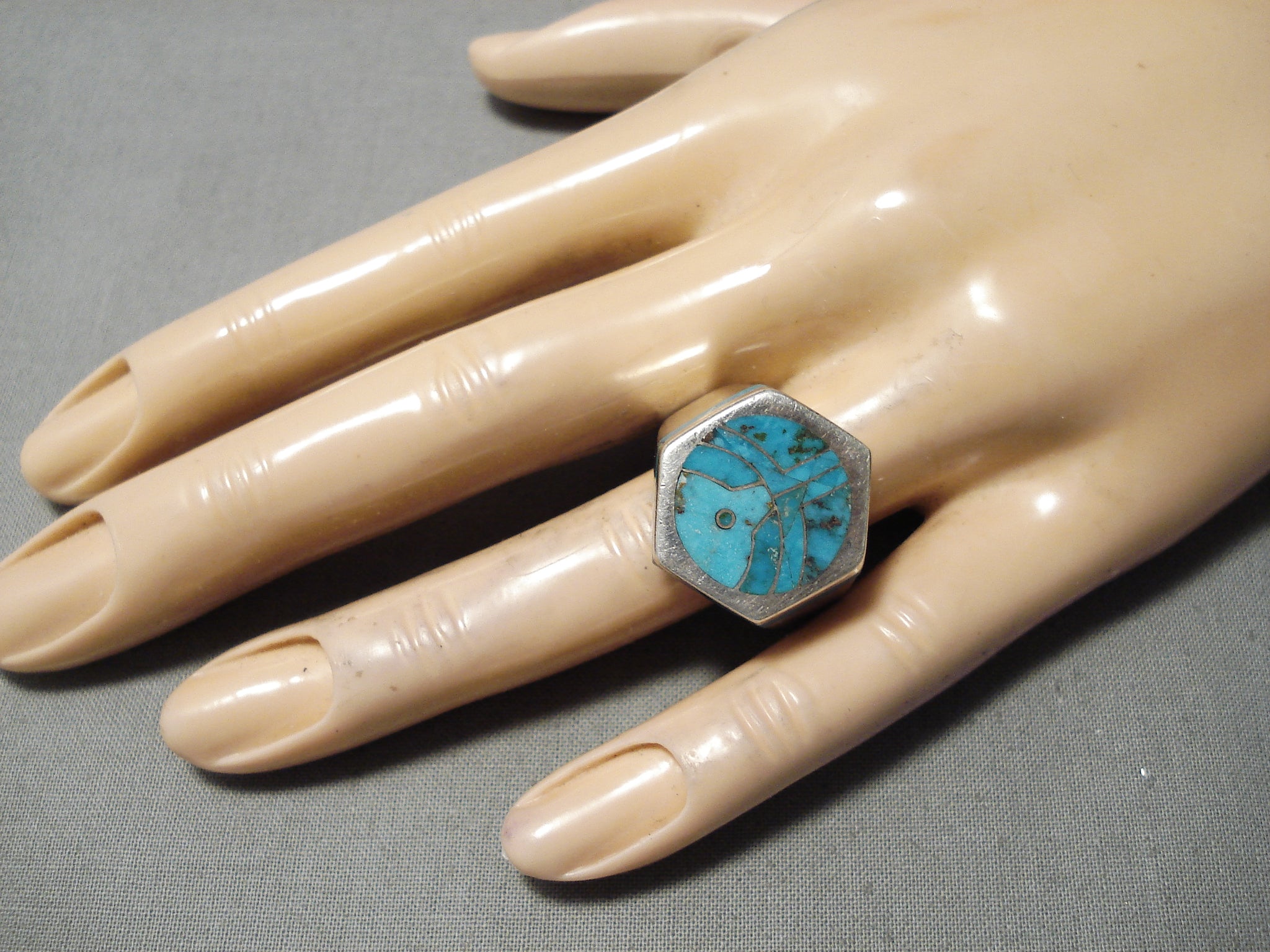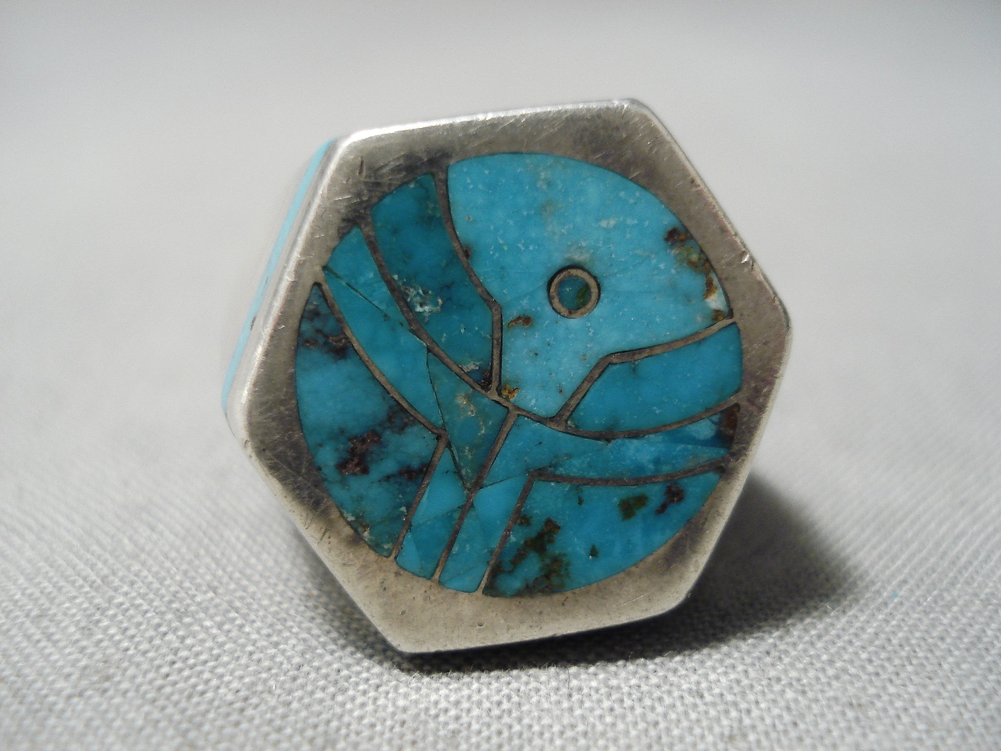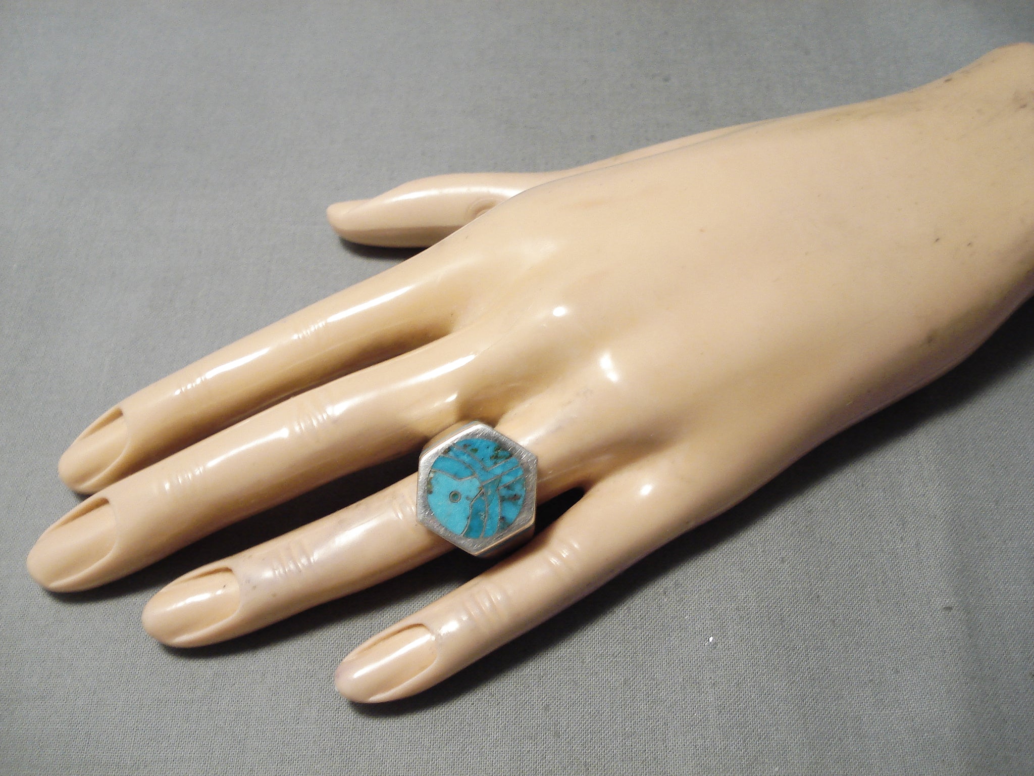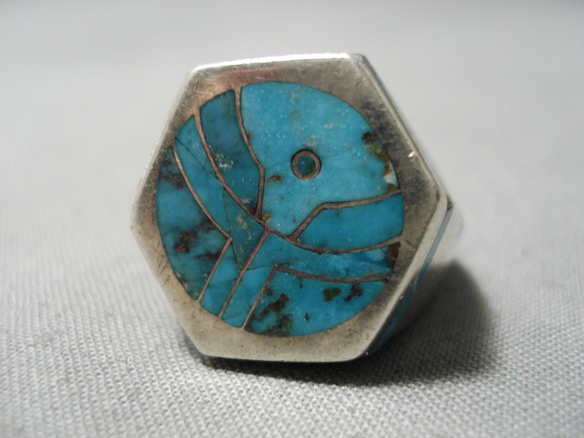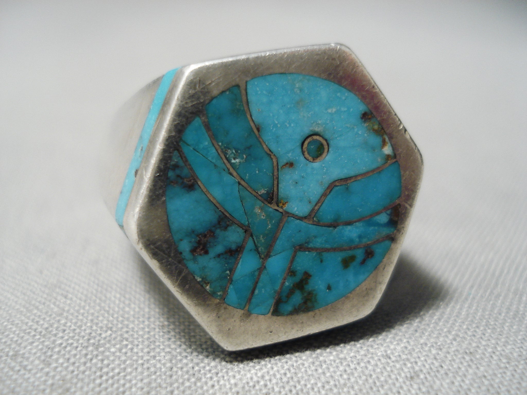 Important Zuni Native American Heavy Thick Sterling Silver Ring