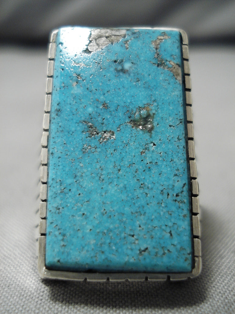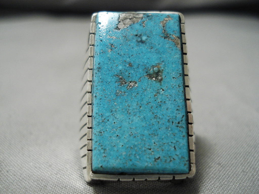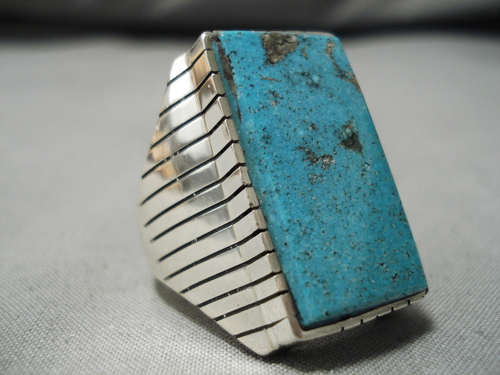Impressive Modernistic Native American Navajo Squared Turquoise Sterling Silver Ring
