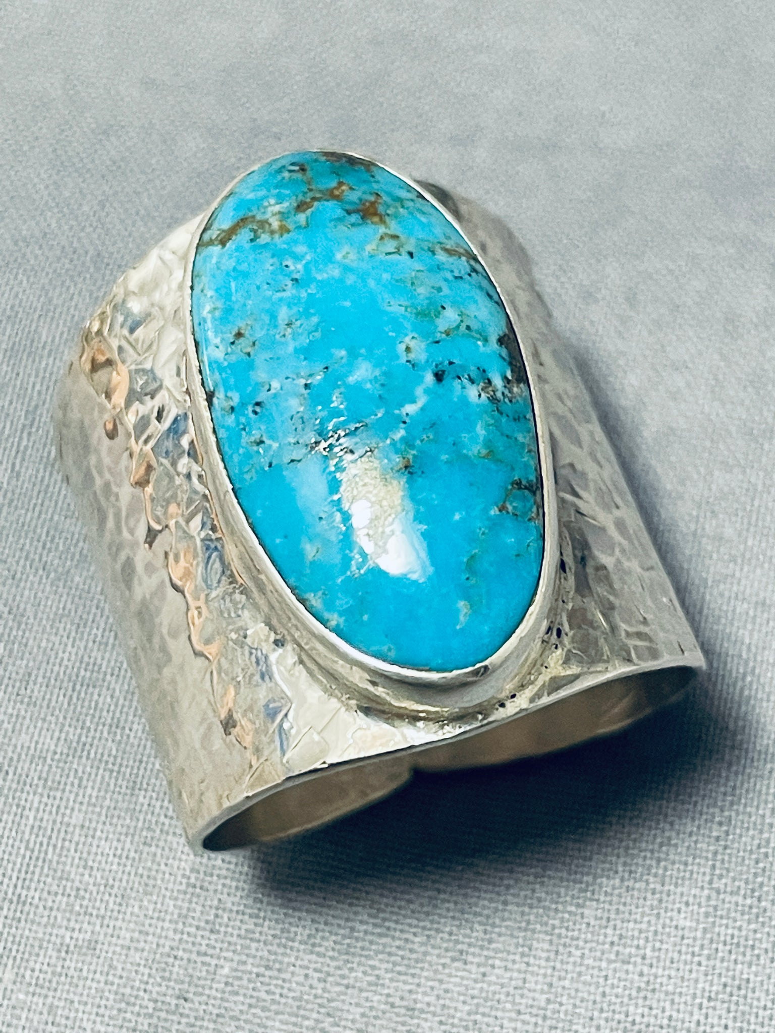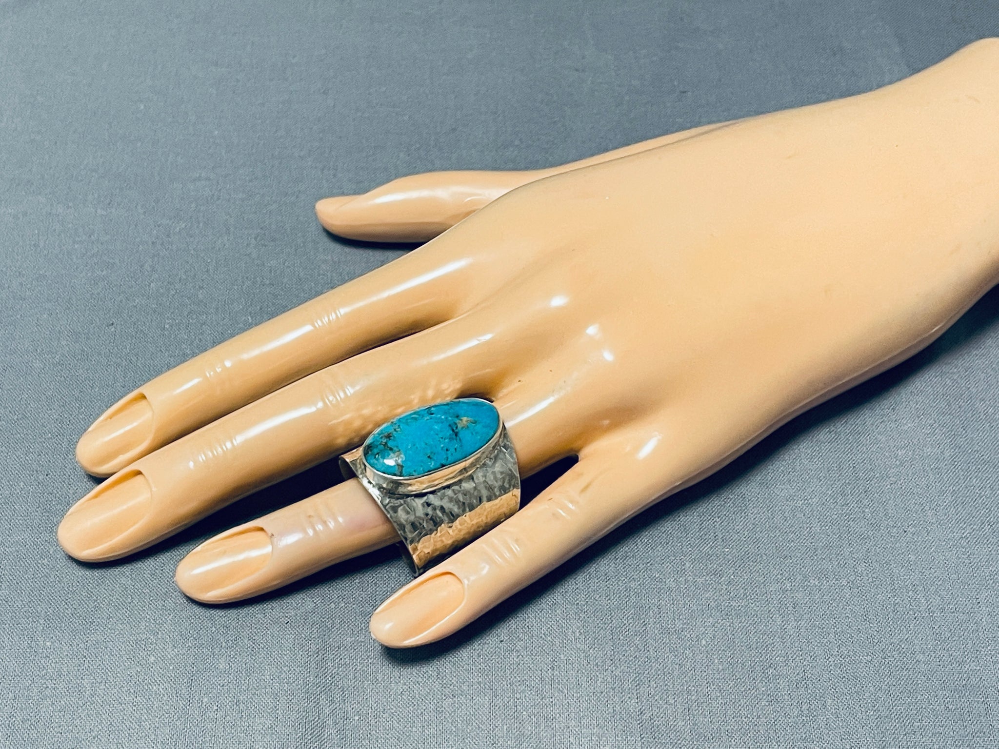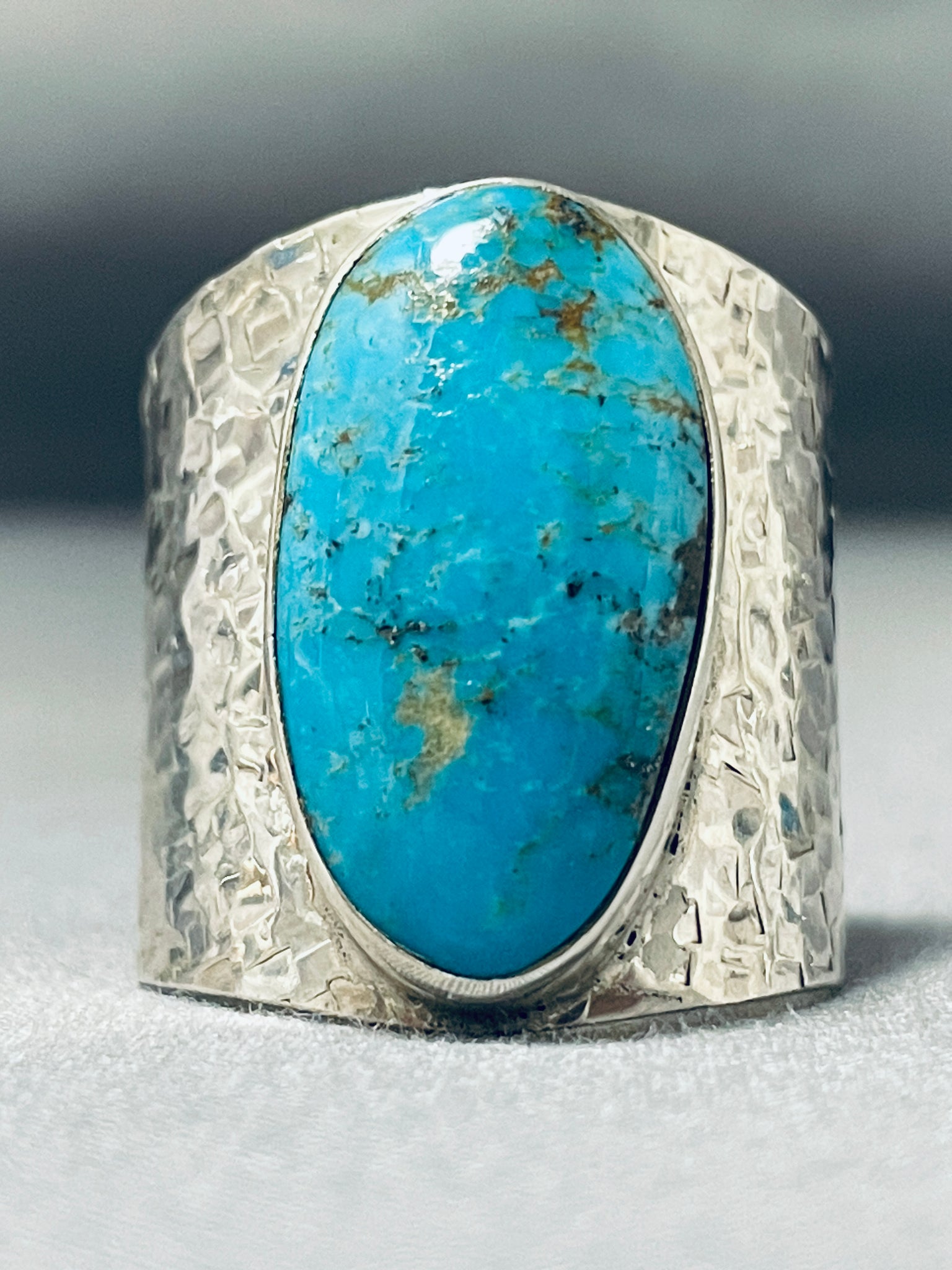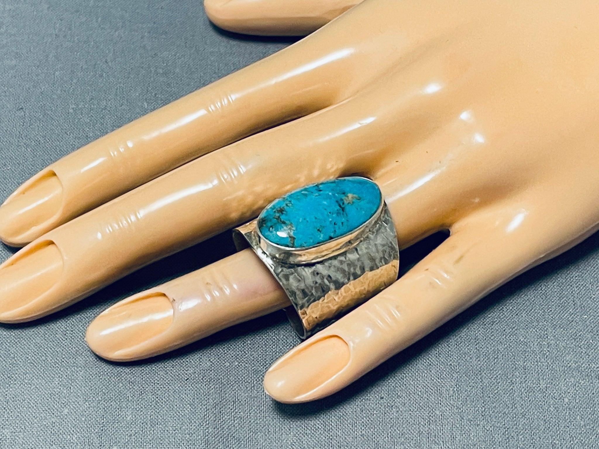 Impressive Native American Navajo Old Kingman Turquoise Sterling Silver Ring