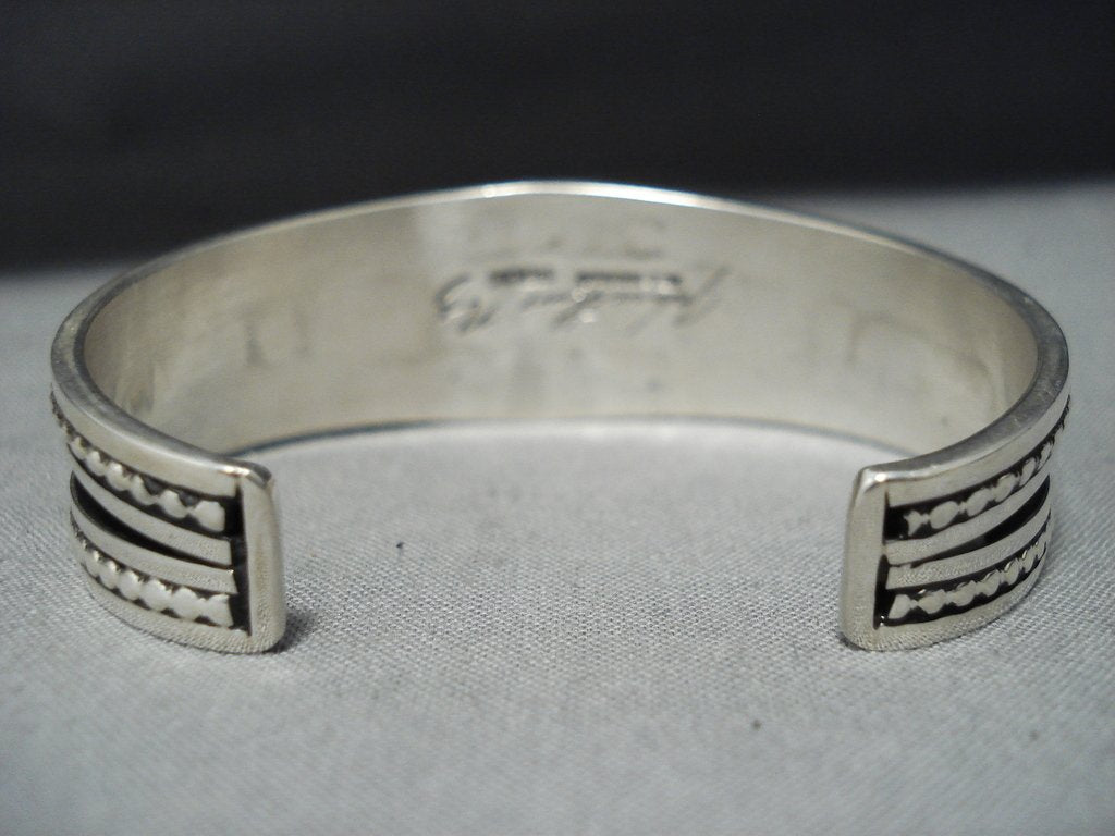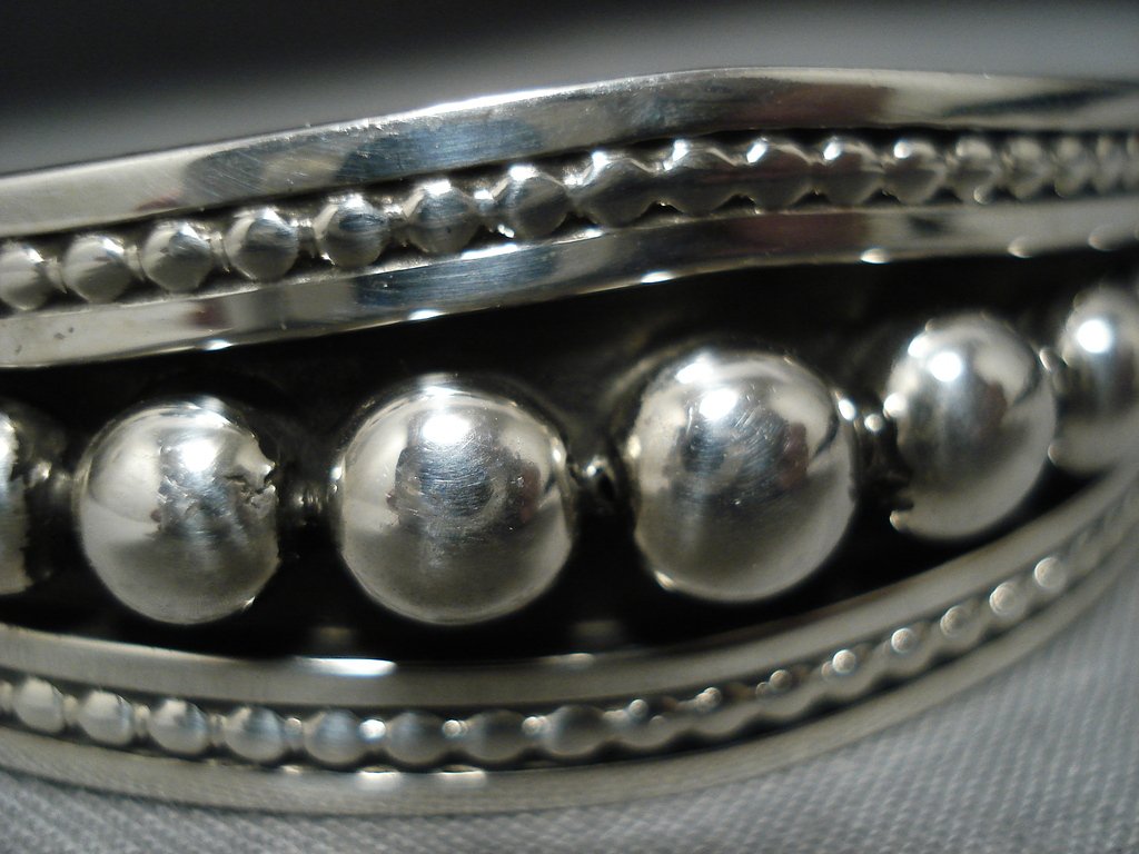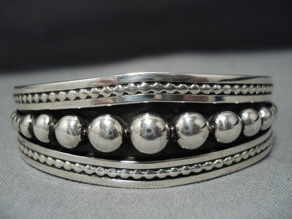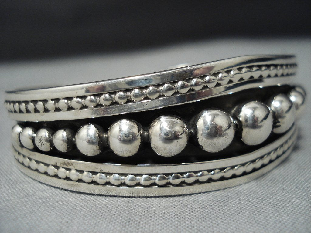 Impressive Native American Jewelry Navajo Sterling Silver Beaded Jon Nez Cuff Bracelet