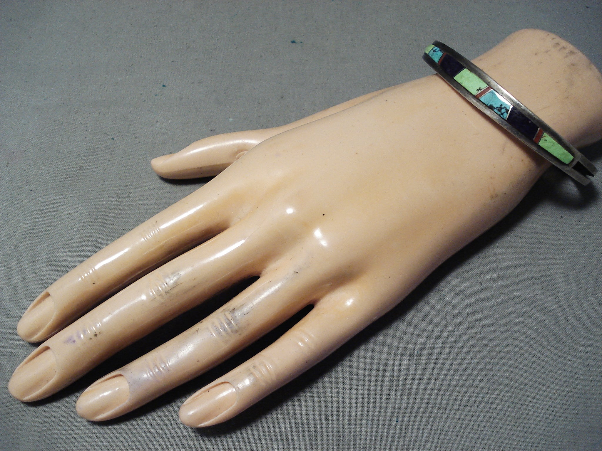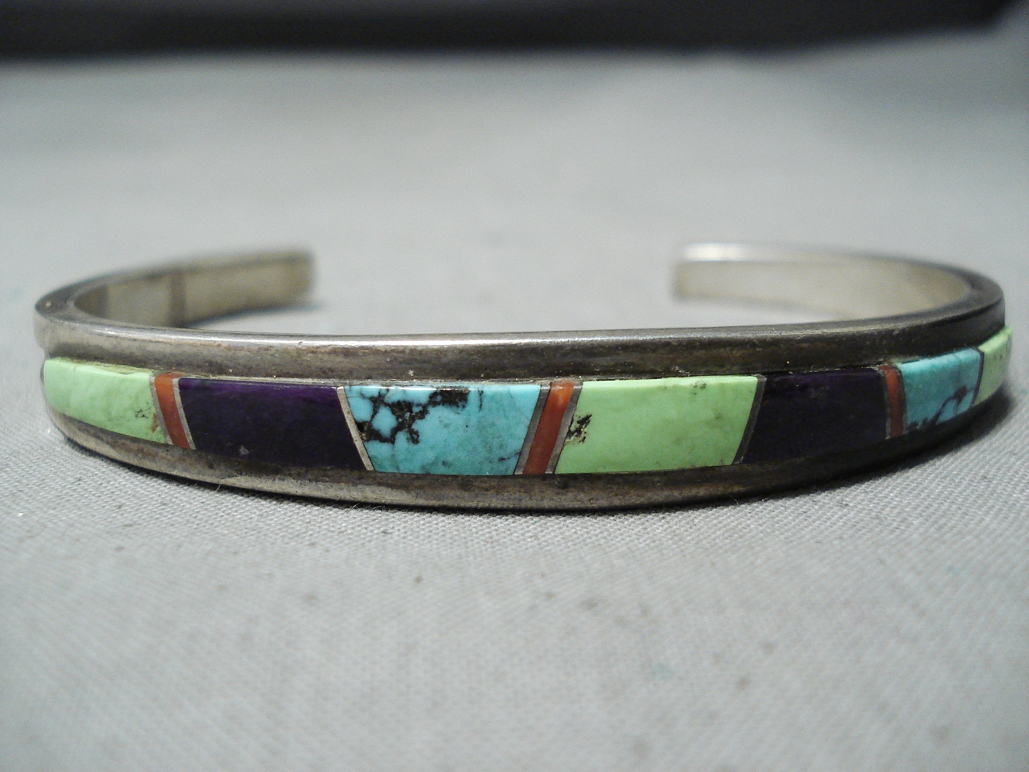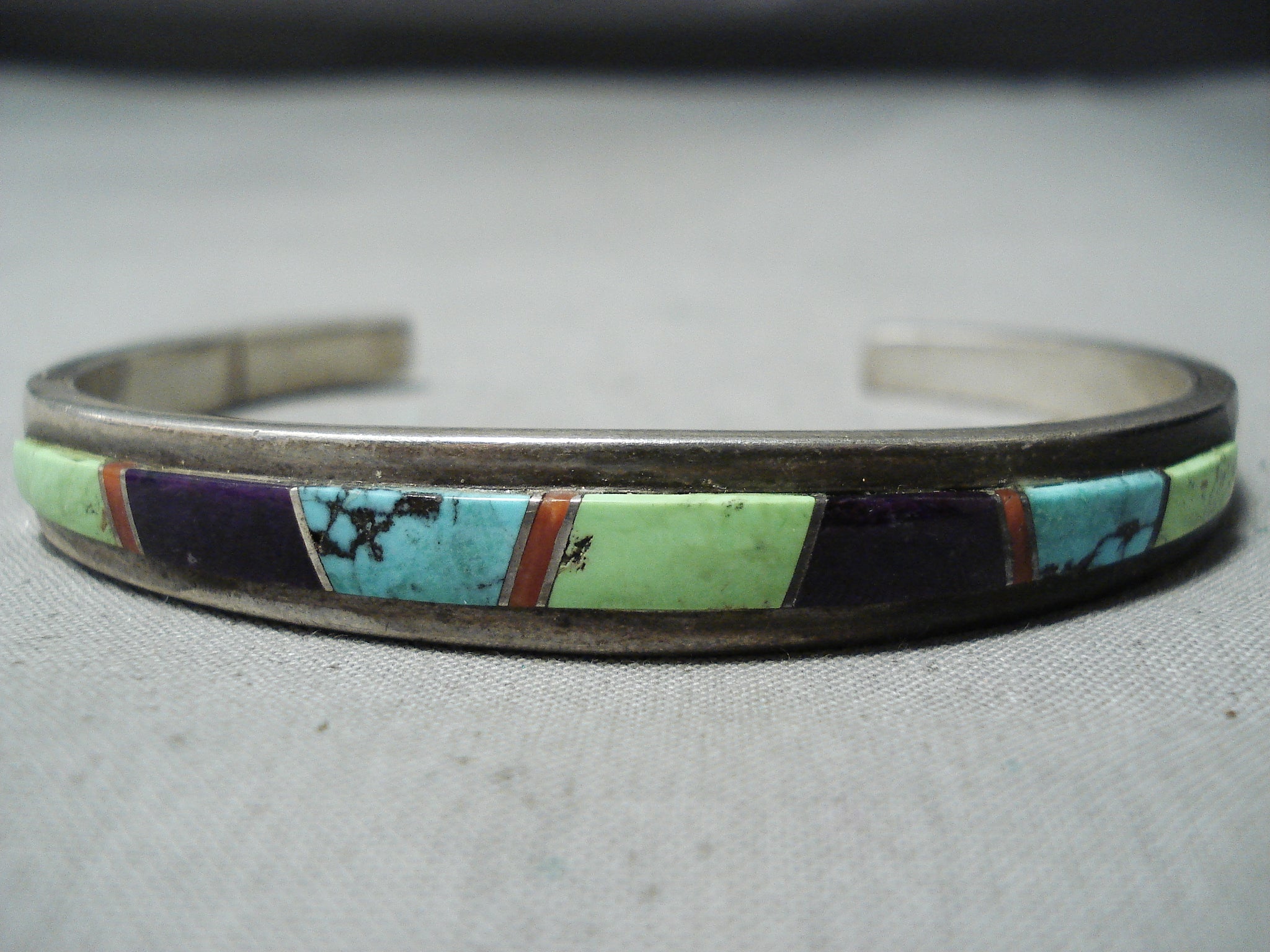 Impressive Native American Navajo Turquoise Sugulite Gaspeite Sterling Silver Bracelet