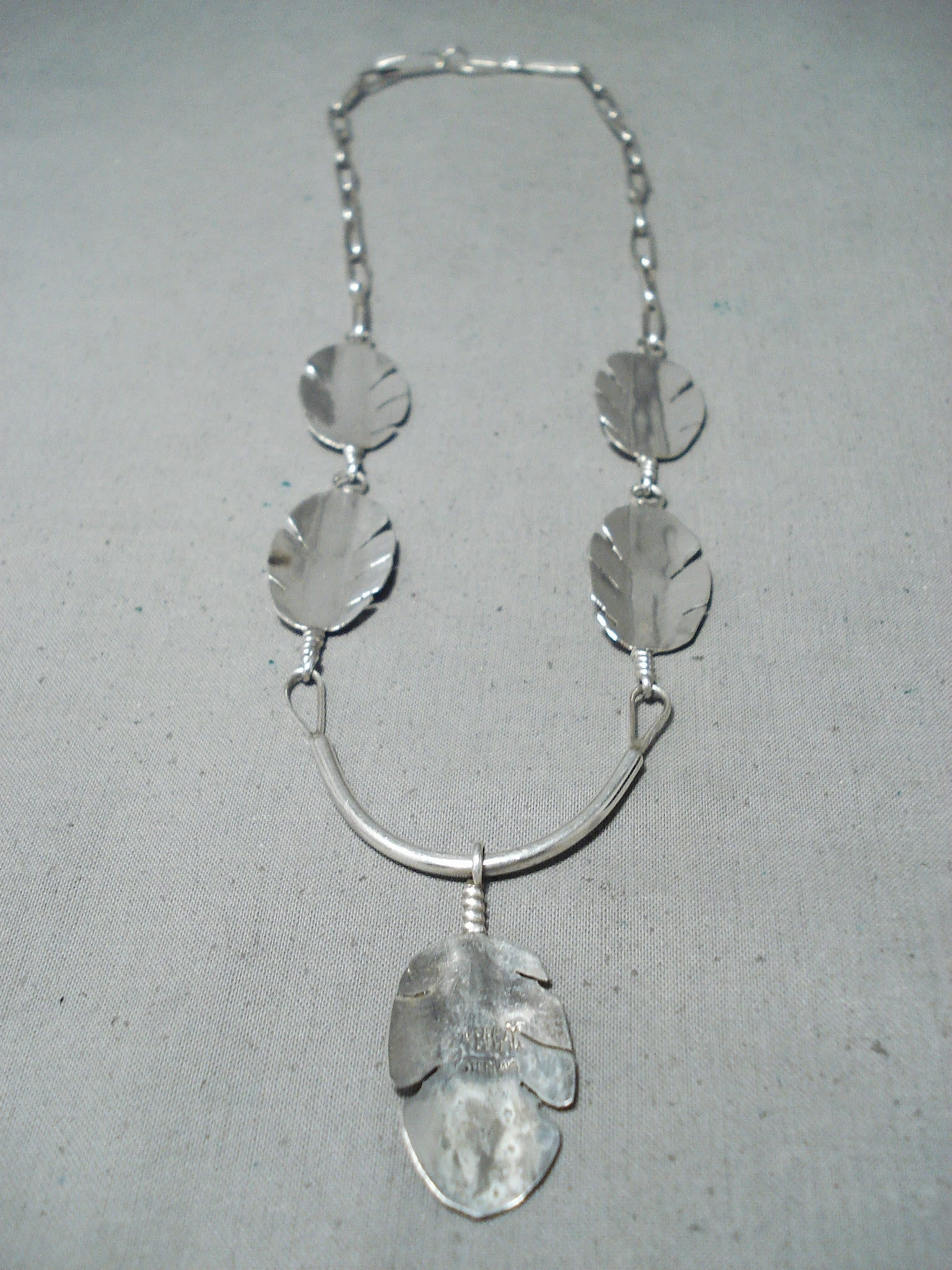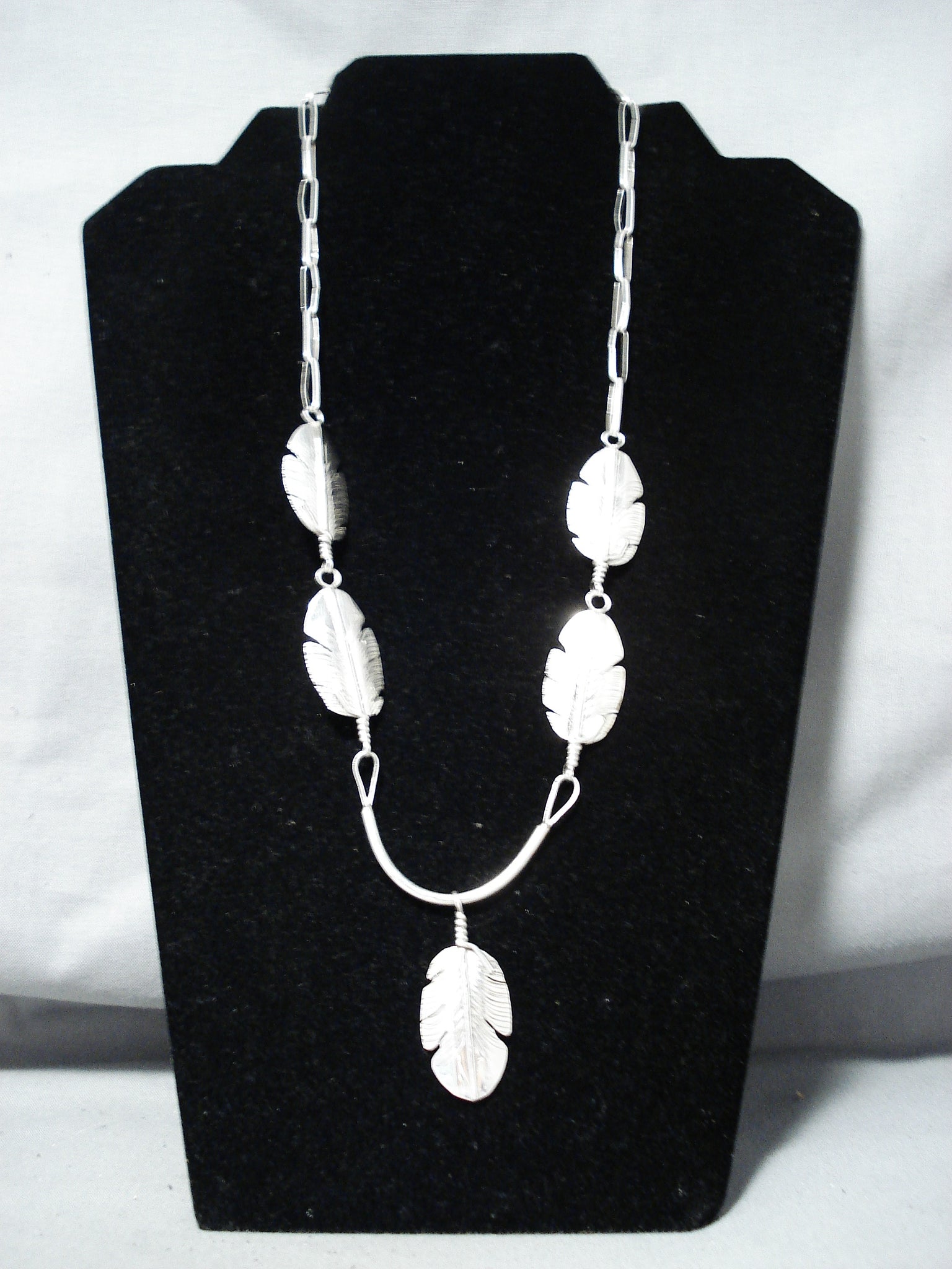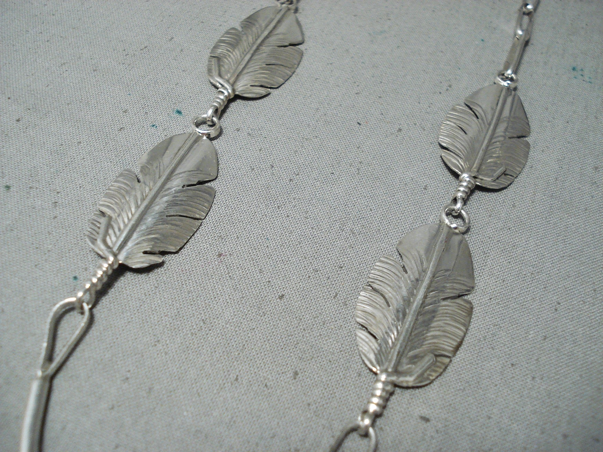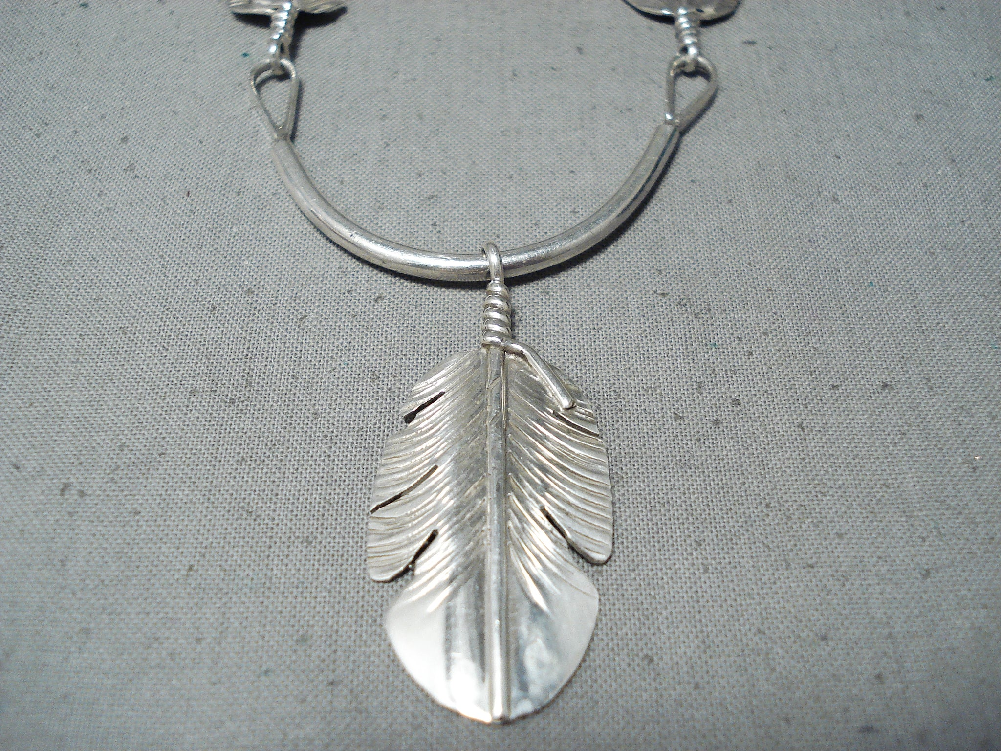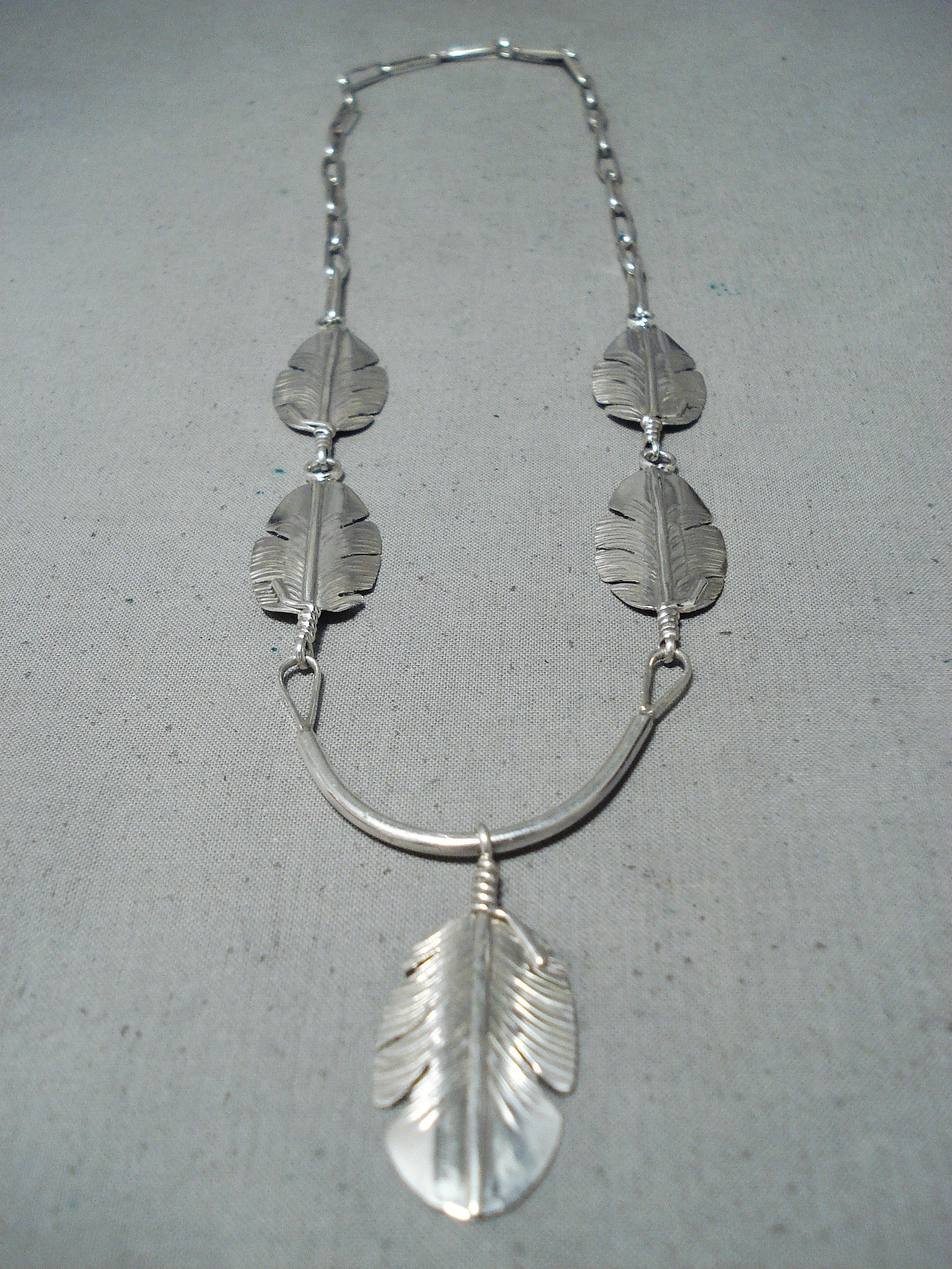 Impressive Navajo Sterling Silver Feather Necklace Native American