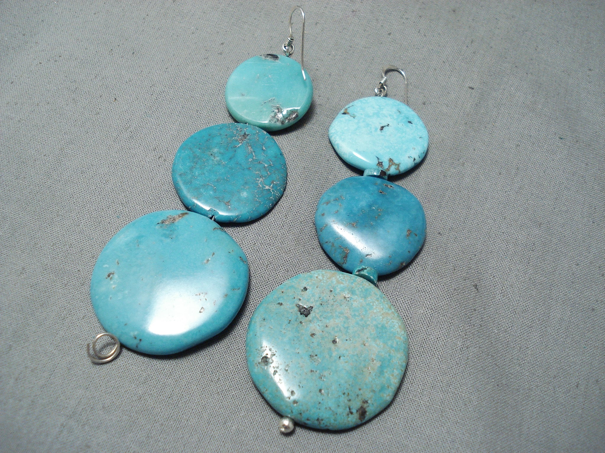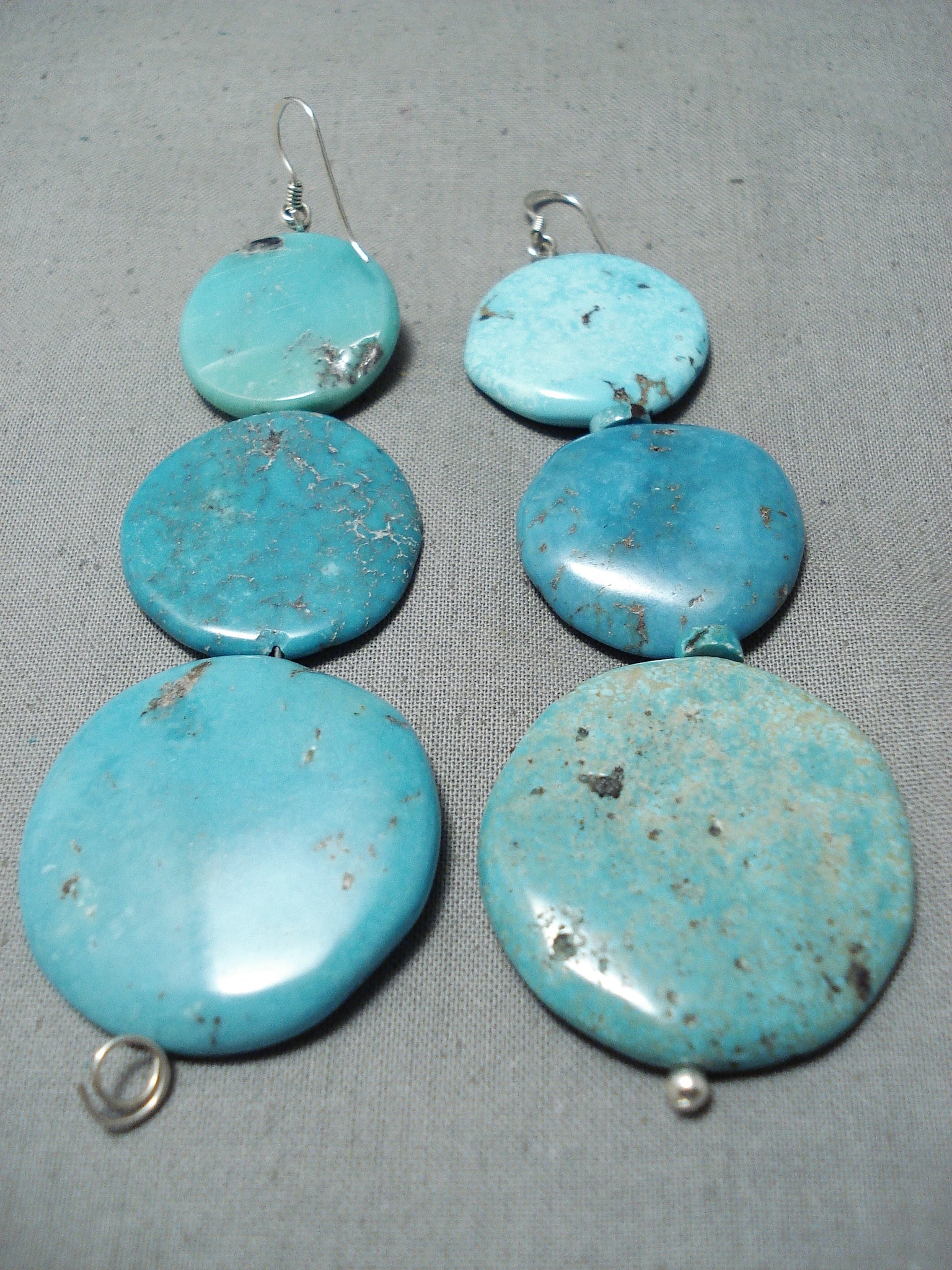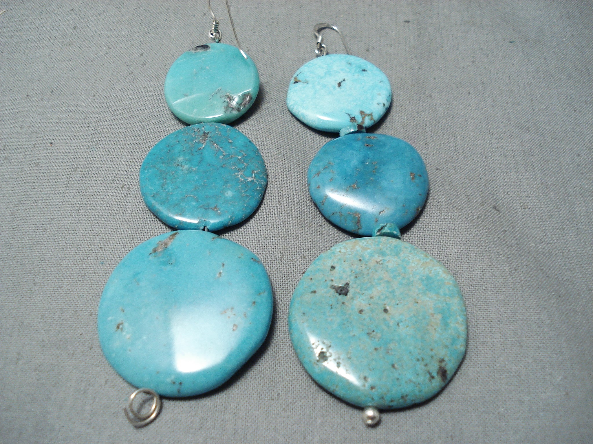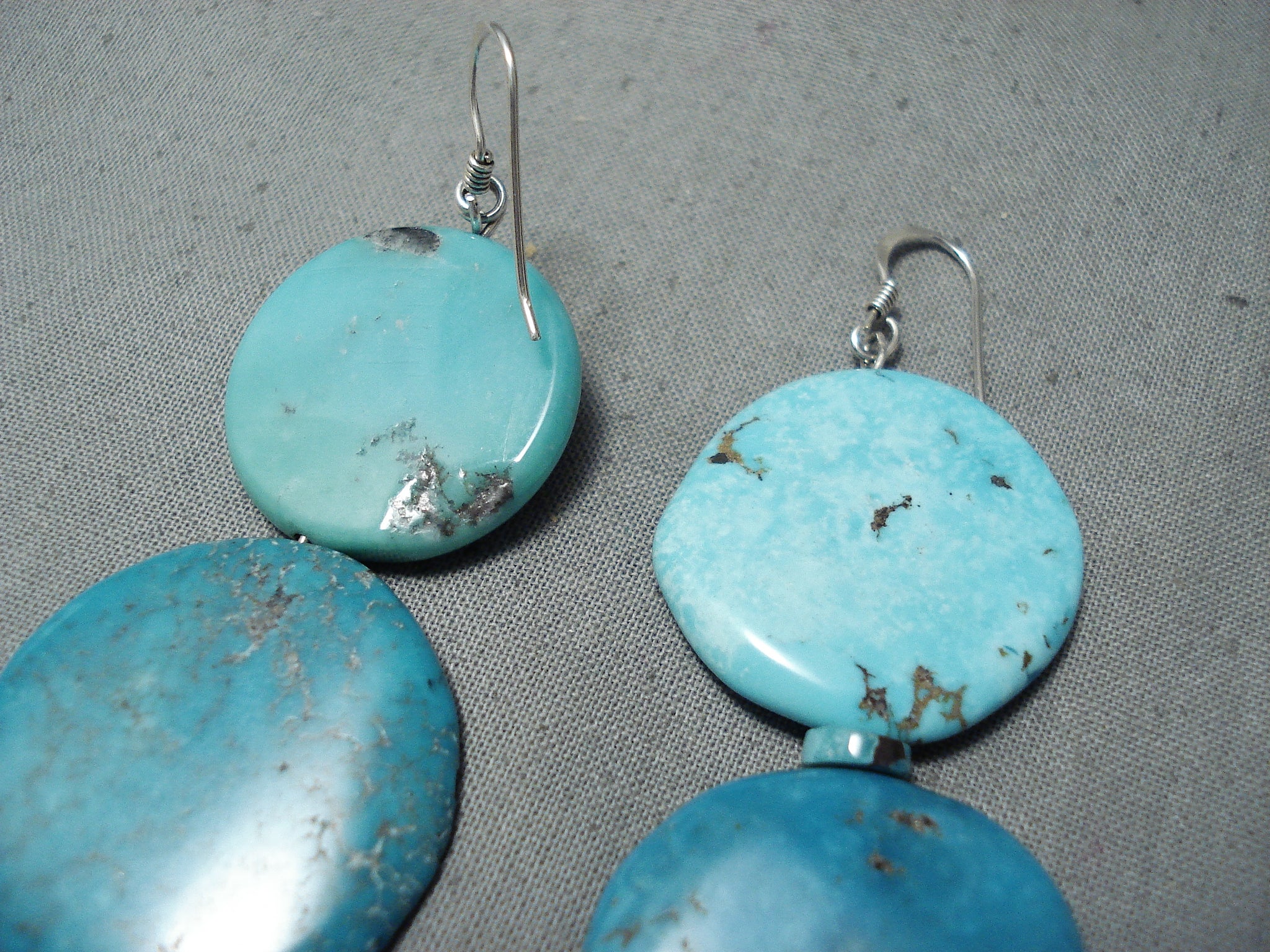 Impressive Navajo Turquoise Sterling Silver Earrings Native American