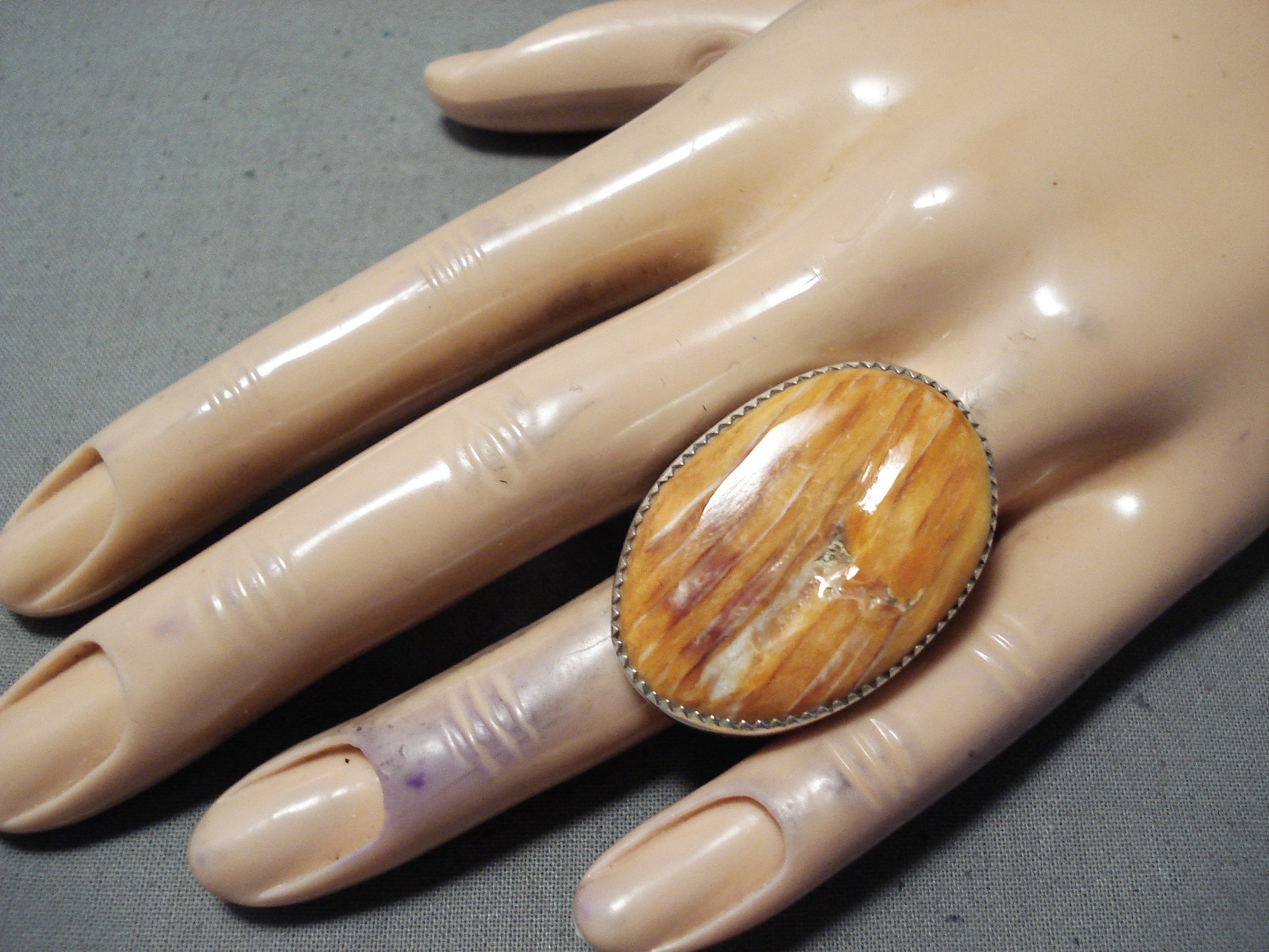 Impressive San Felipe Orange Spiny Sterling Silver Ring Native American