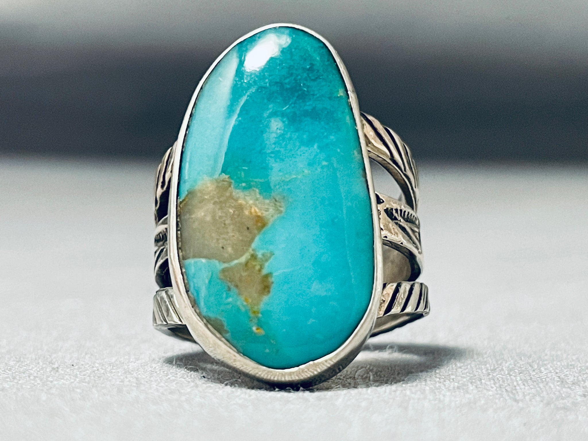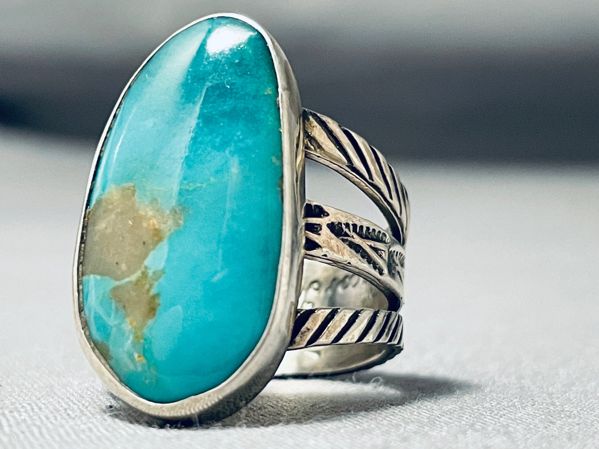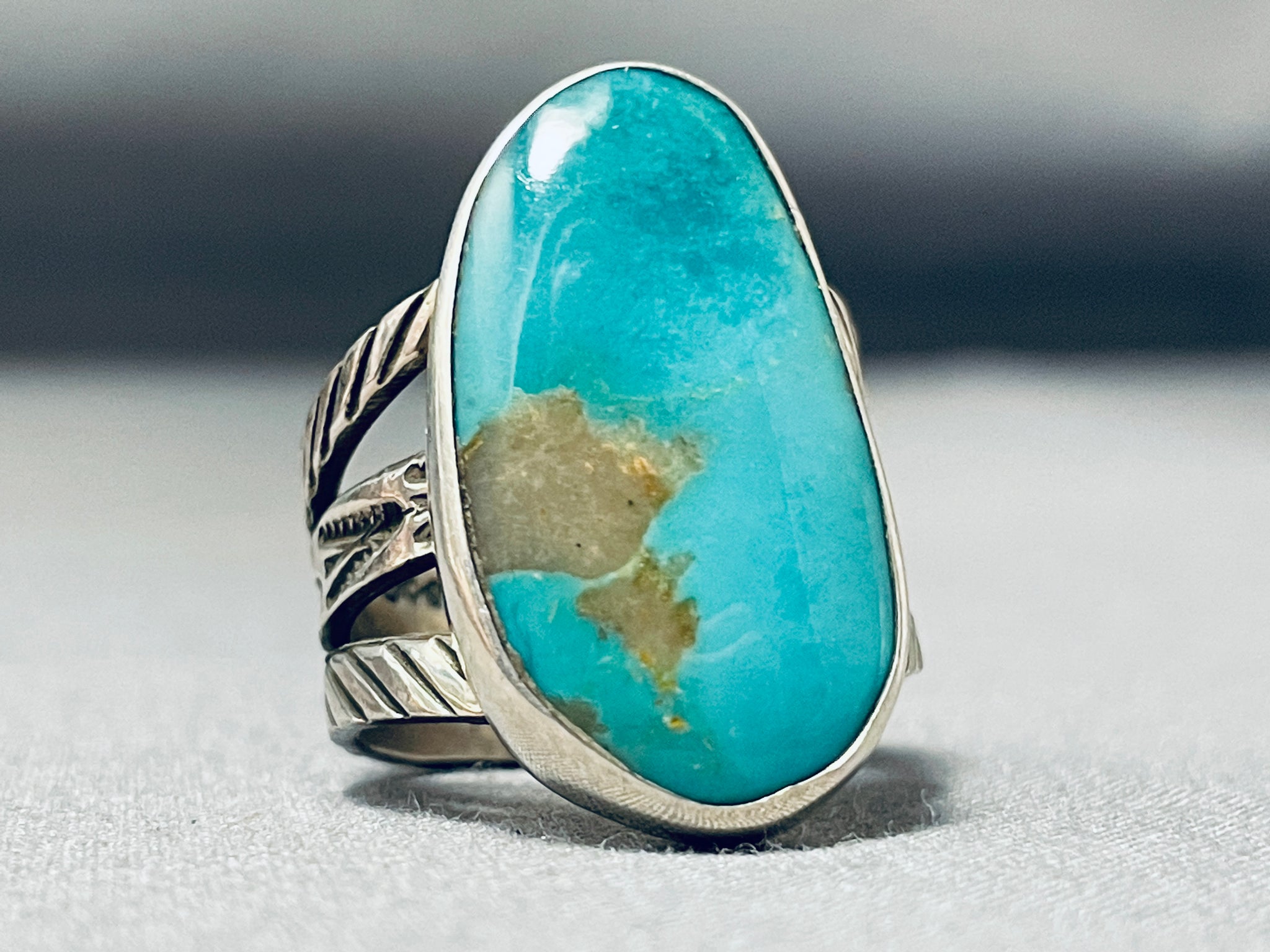 Impressive San Felipe Pilot Mountain Turquoise Sterling Silver Ring Signed