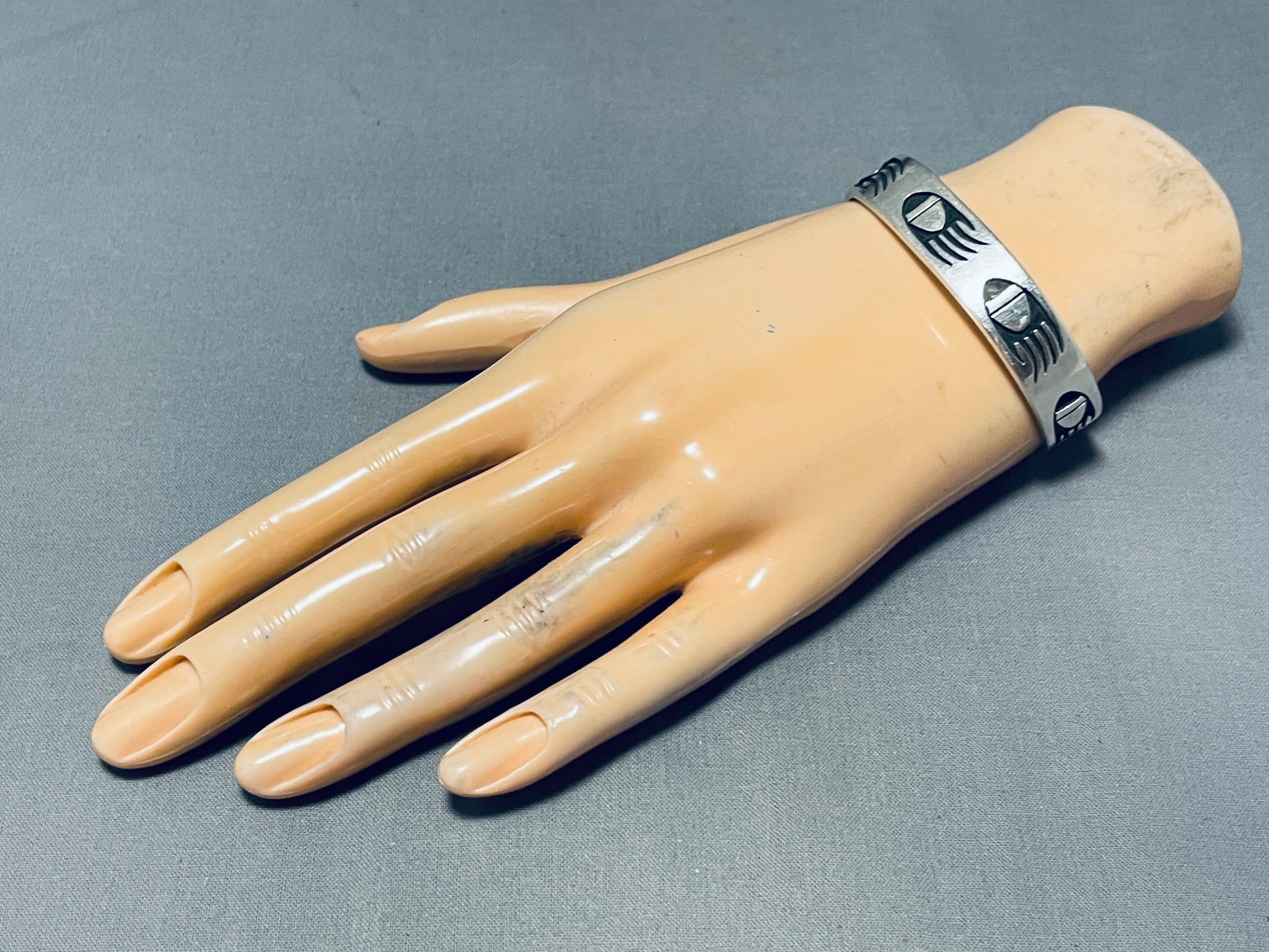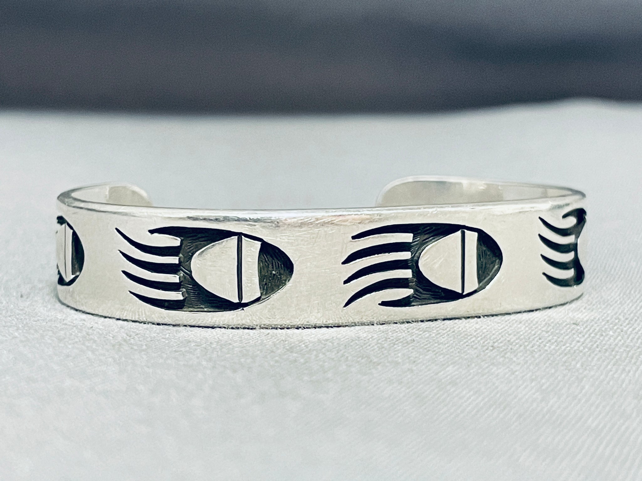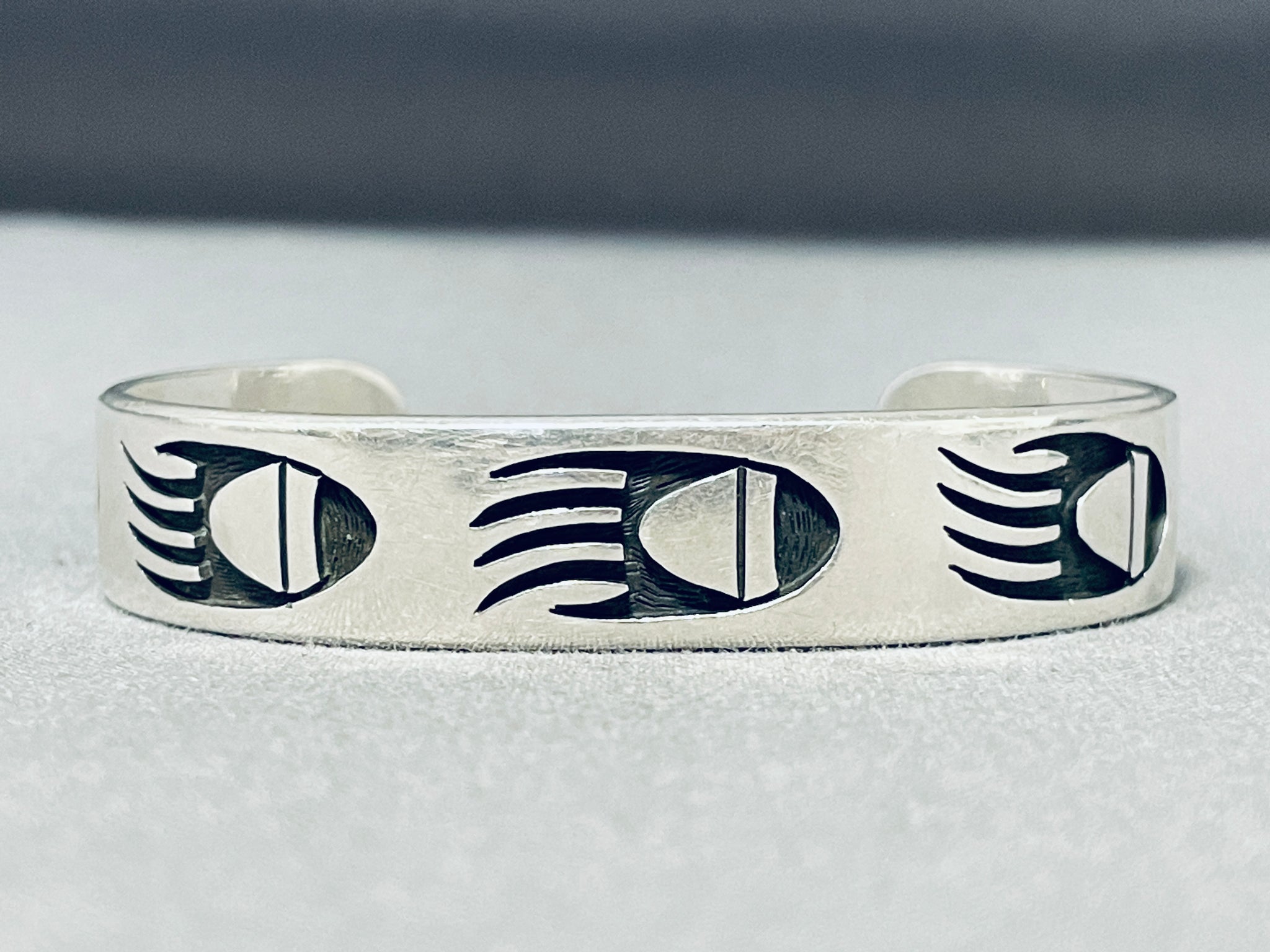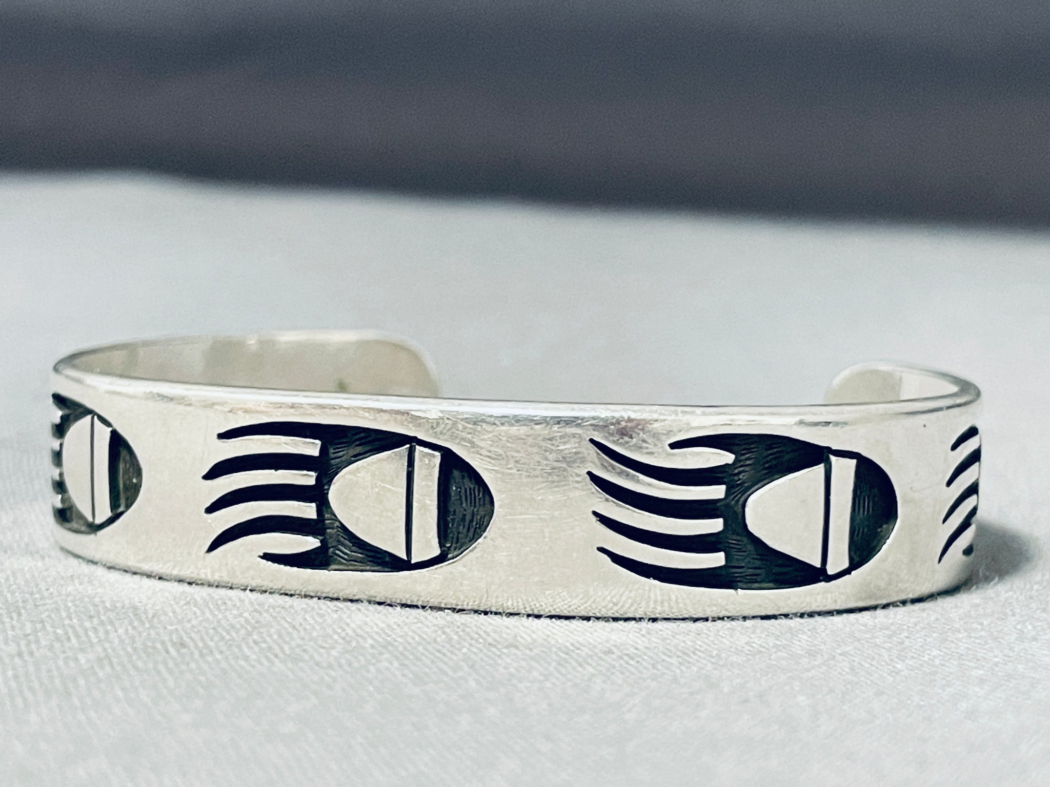 Impressive Vintage Native American Hopi Sterling Silver Prints Bracelet