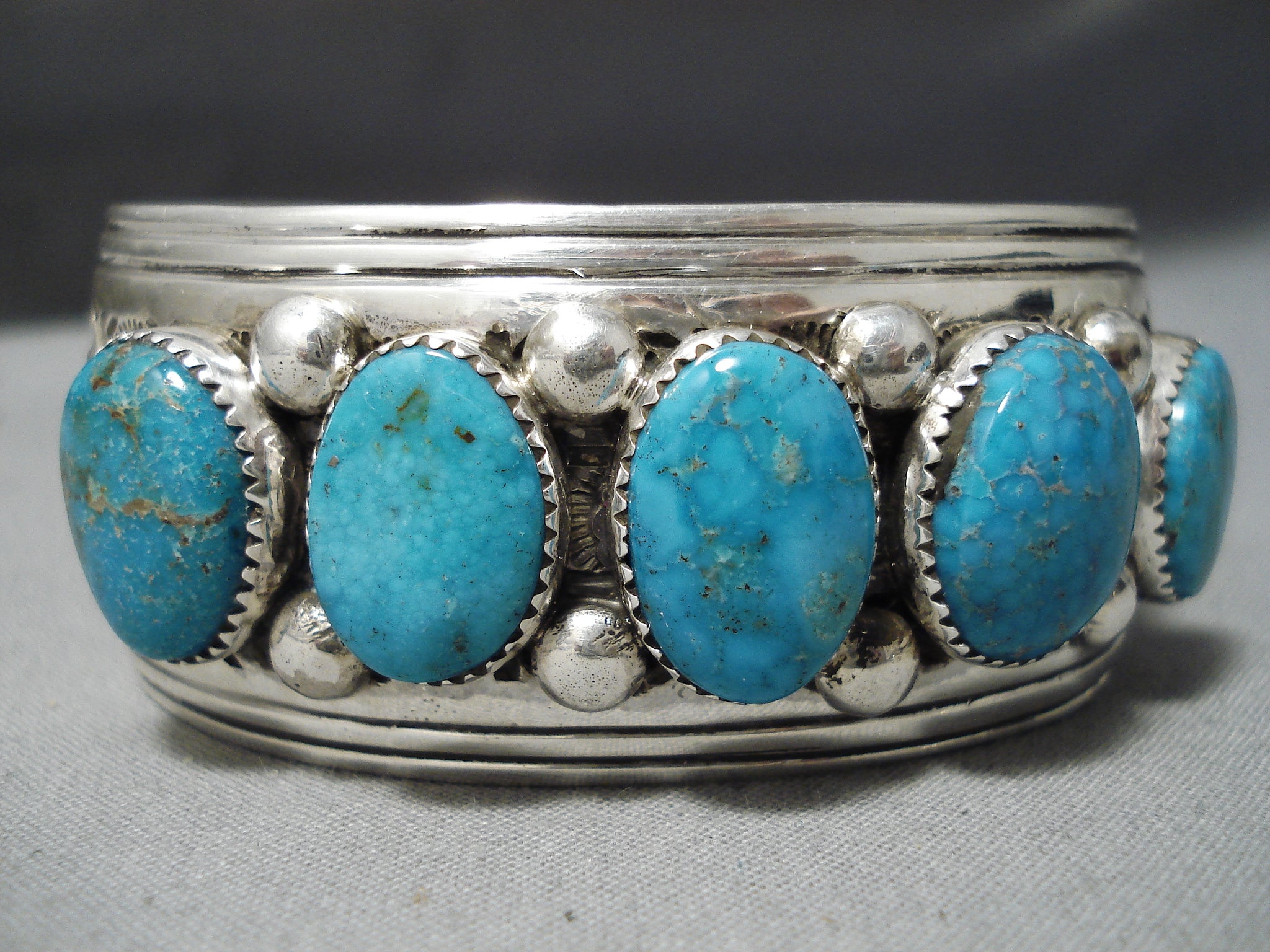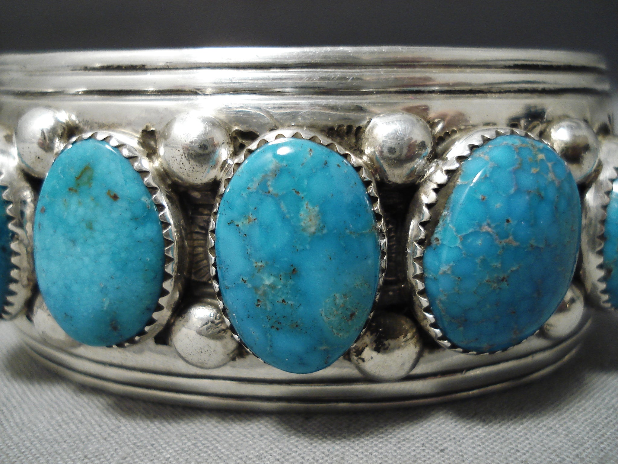 Impressive Vintage Native American Navajo 5 Carico Lake Turquoise Sterling Silver Bracelet