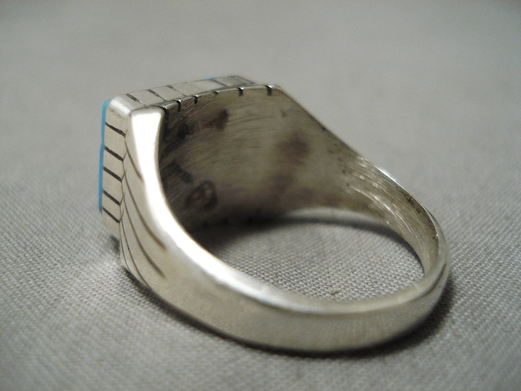 Impressive Vintage Native American Navajo Blue Diamond Turquoise Sterling Silver Ring