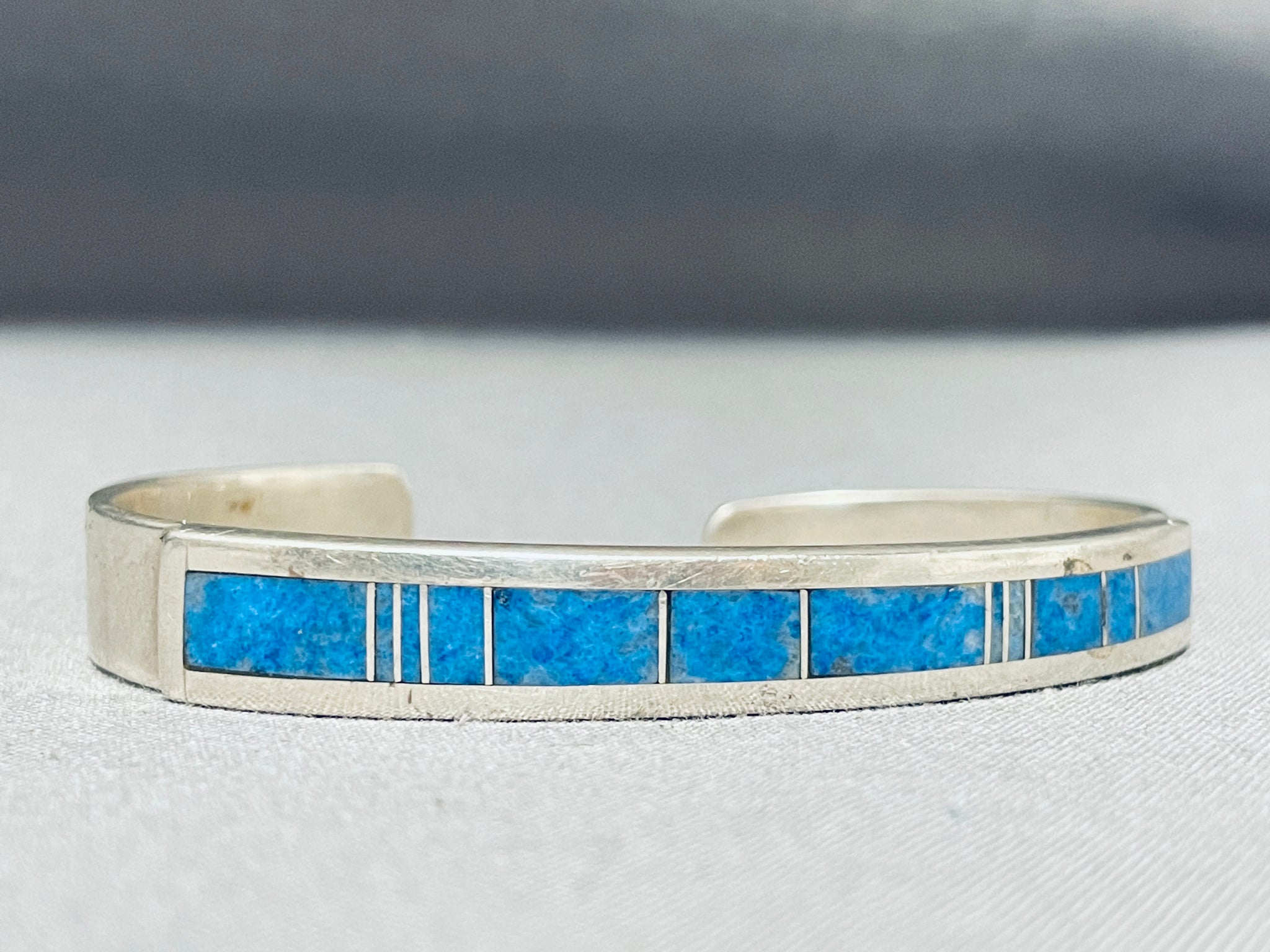 Impressive Vintage Native American Navajo Denim Lapis Inlay Sterling Silver Bracelet