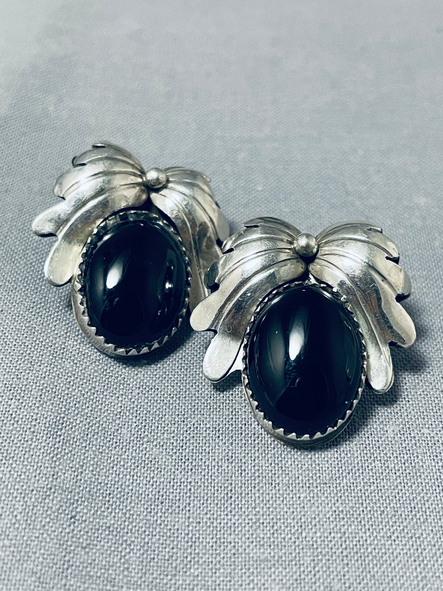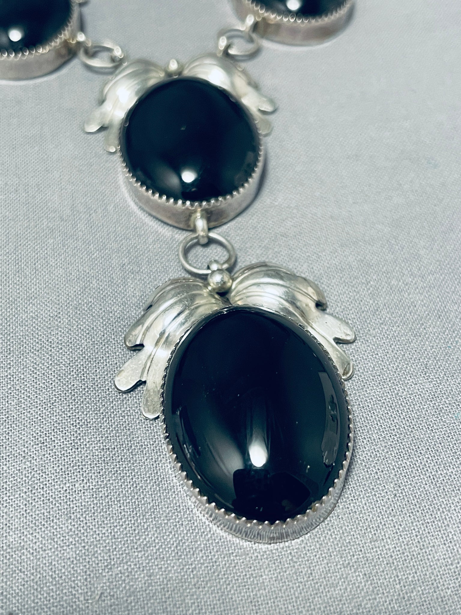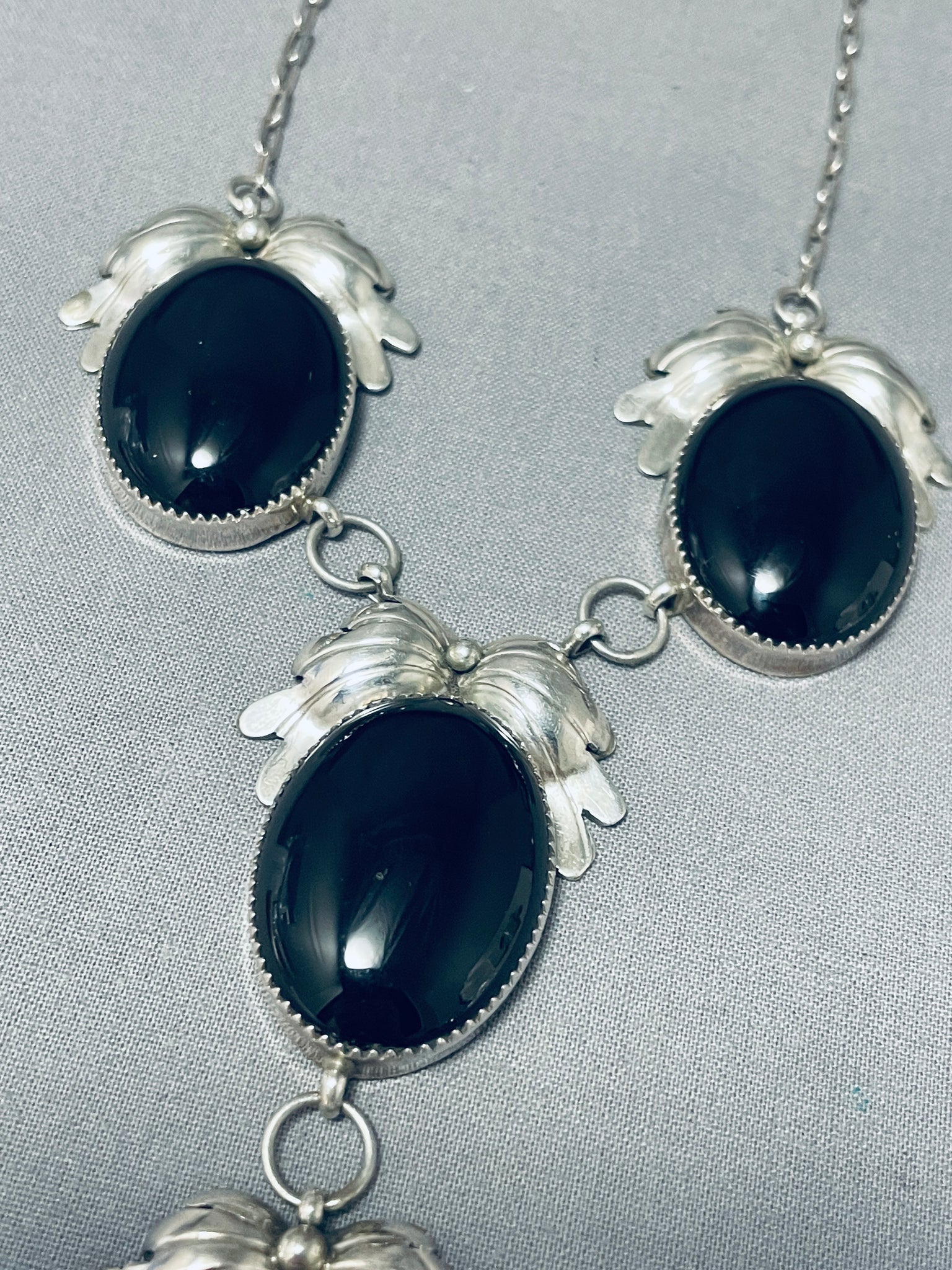 Impressive Vintage Native American Navajo Jet Sterling Silver Necklace And Earring Set