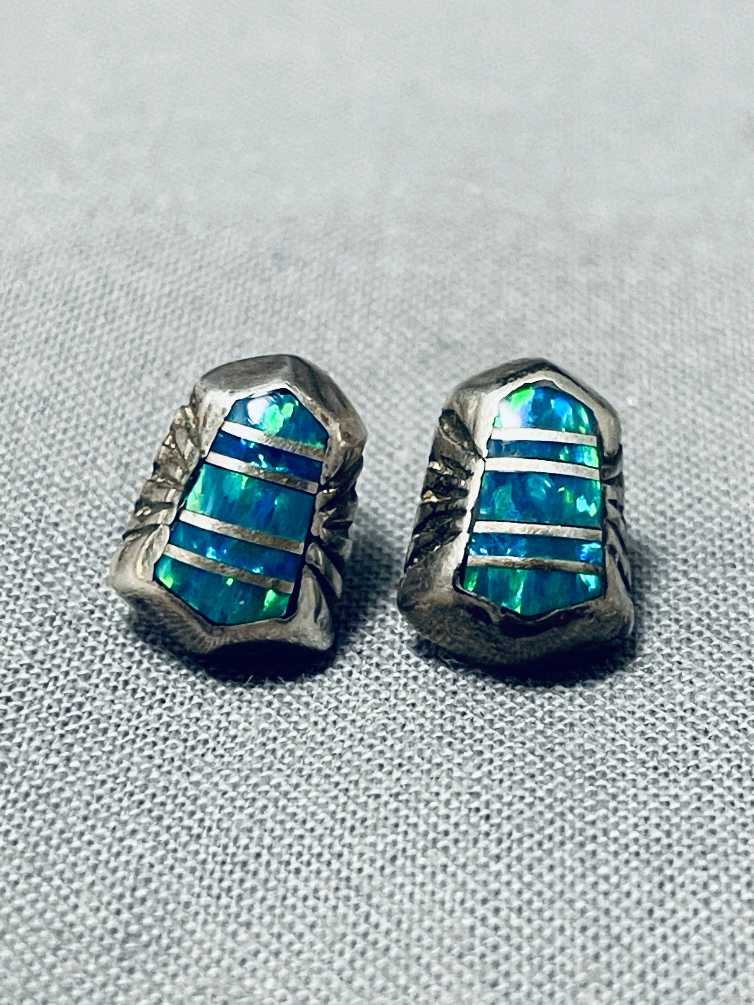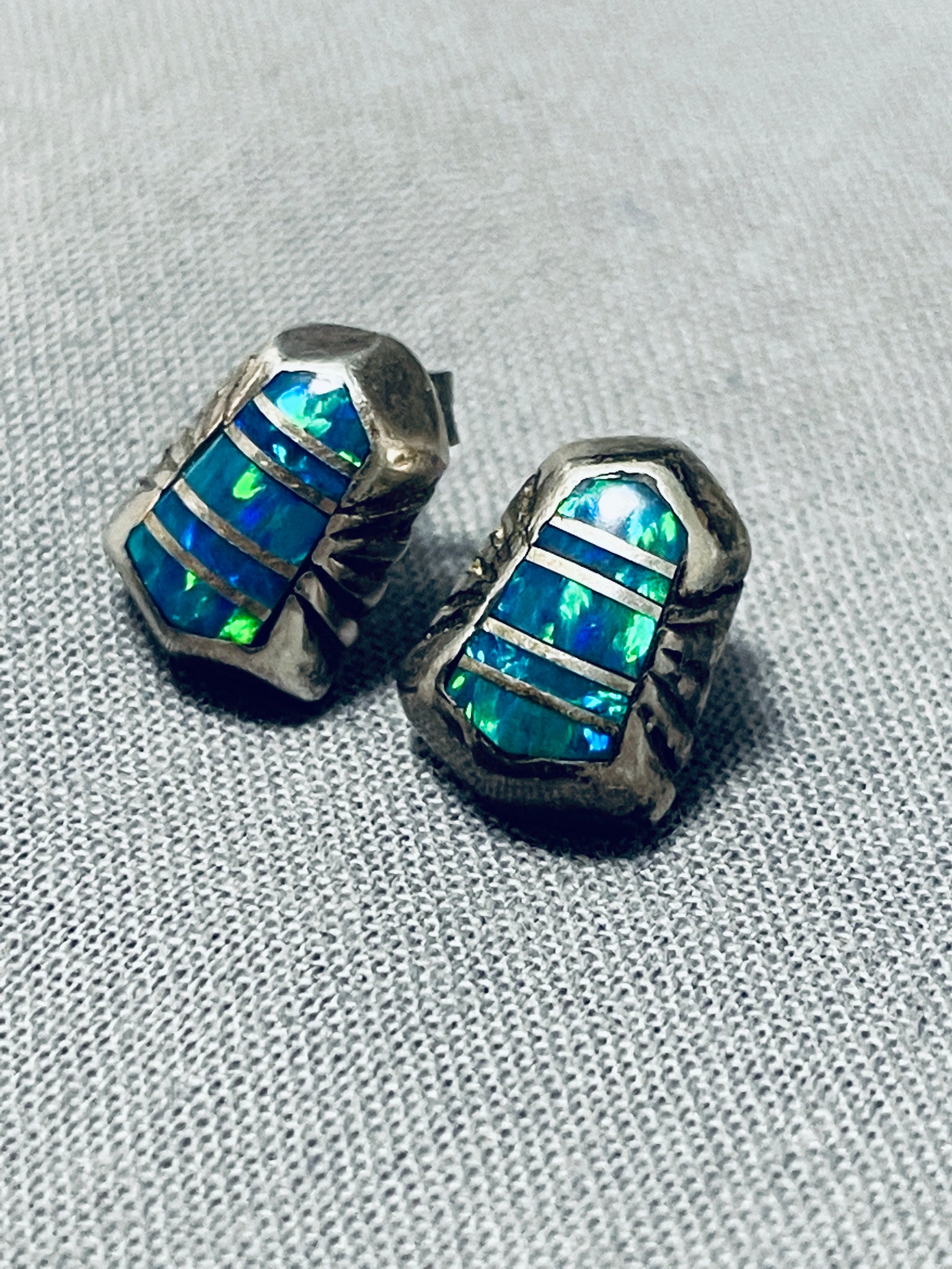 Impressive Vintage Native American Navajo Opal Sterling Silver Earrings