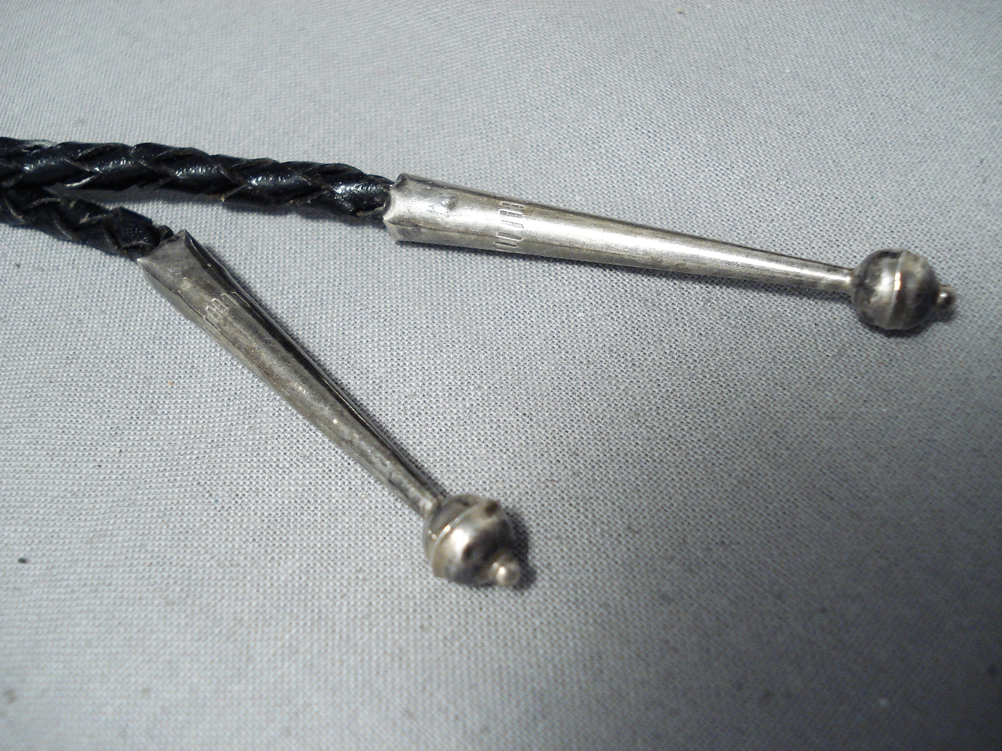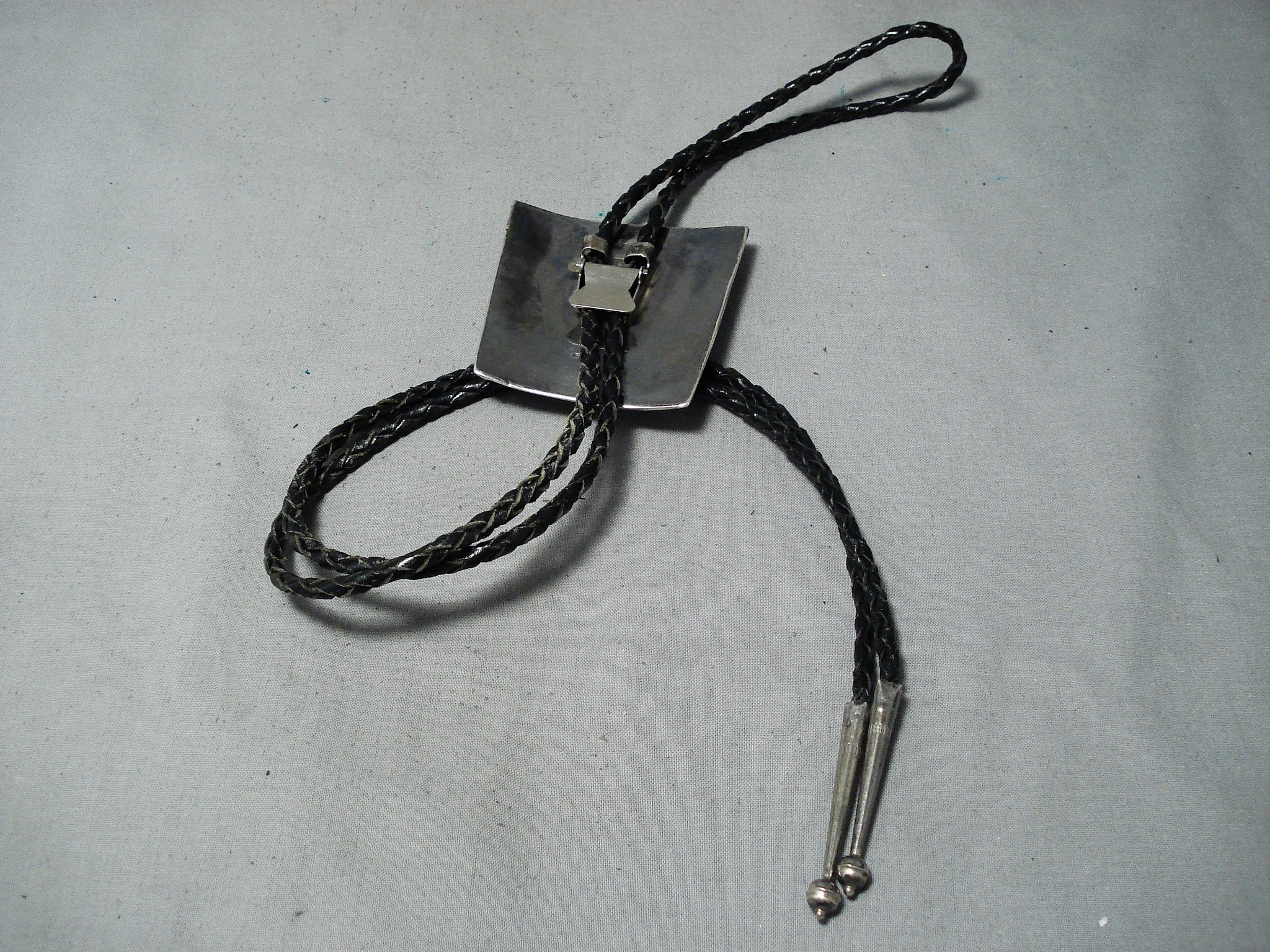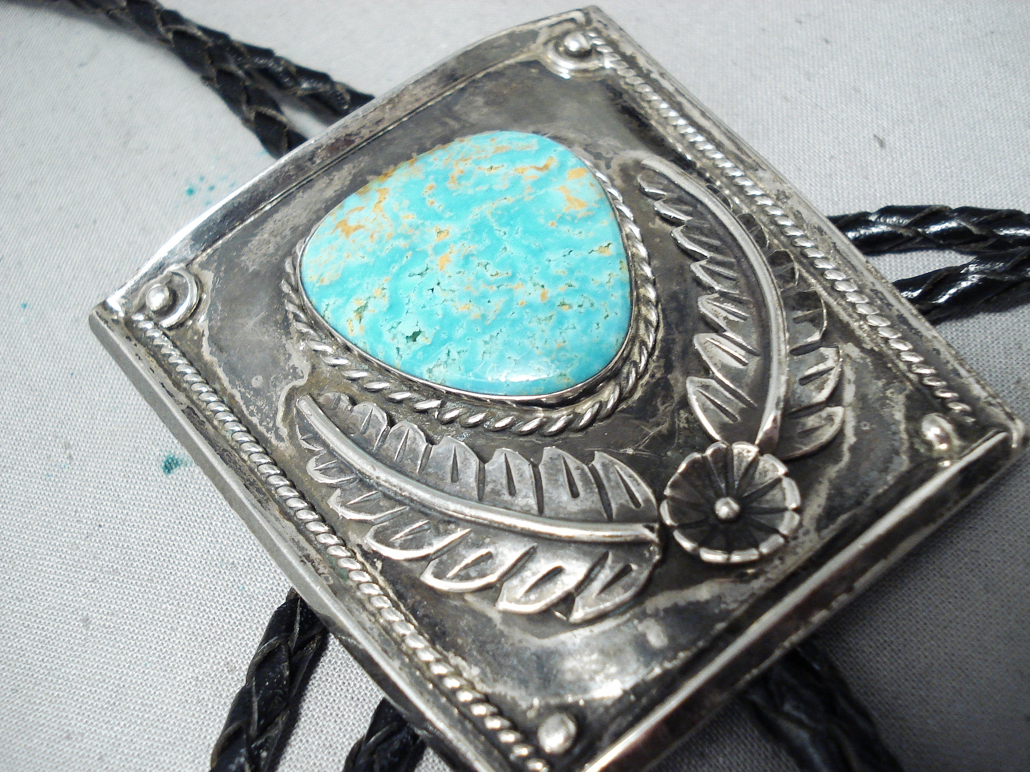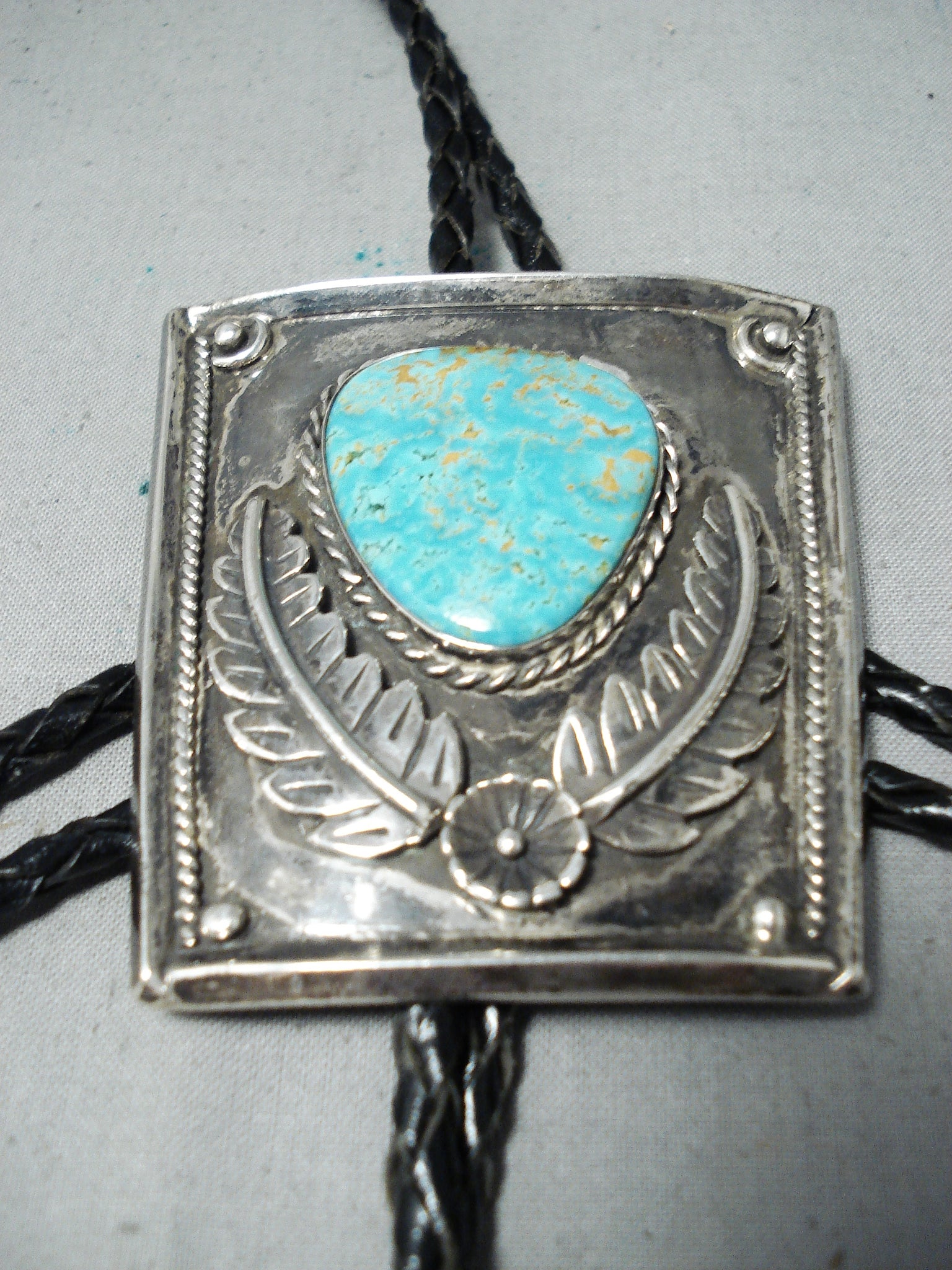 Impressive Vintage Native American Navajo Pilot Mountain Turquoise Sterling Silver Bolo Tie Old