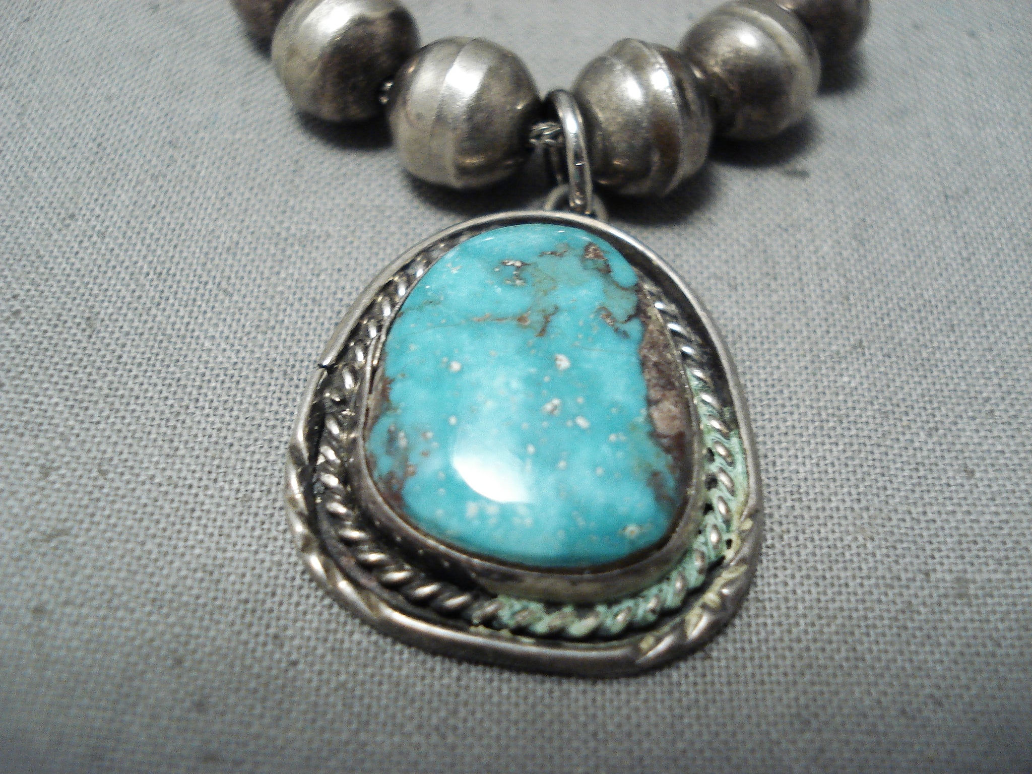 Impressive Vintage Native American Navajo Royston Turquoise Sterling Silver Necklace Old