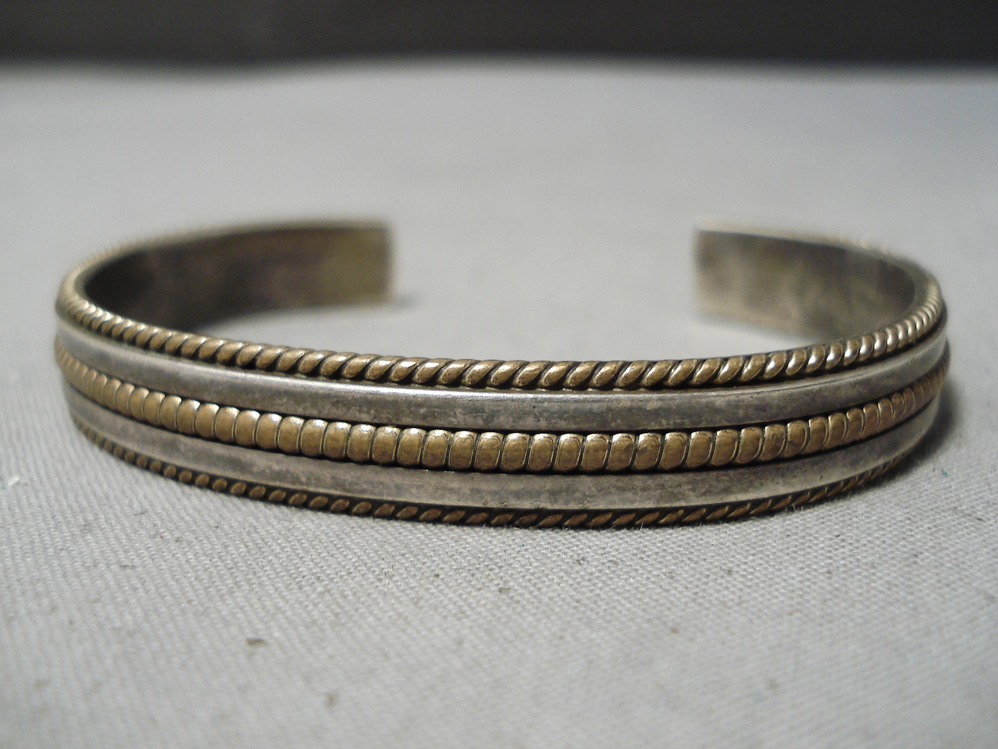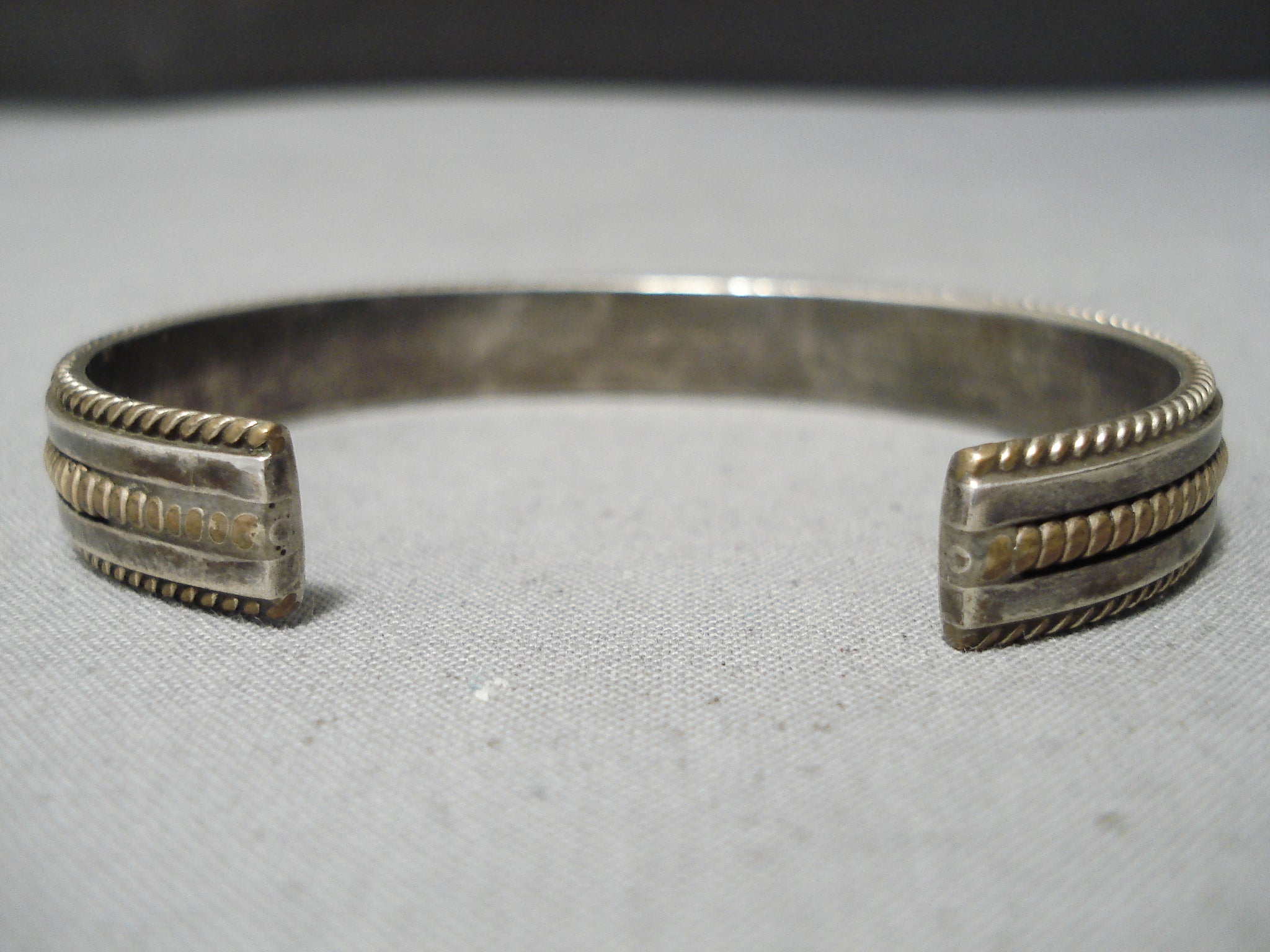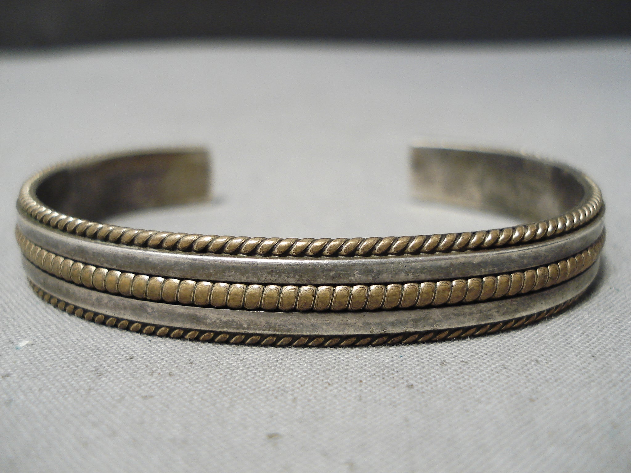 Impressive Vintage Native American Navajo Sterling Silver & 12k Gold Fill Bracelet Old