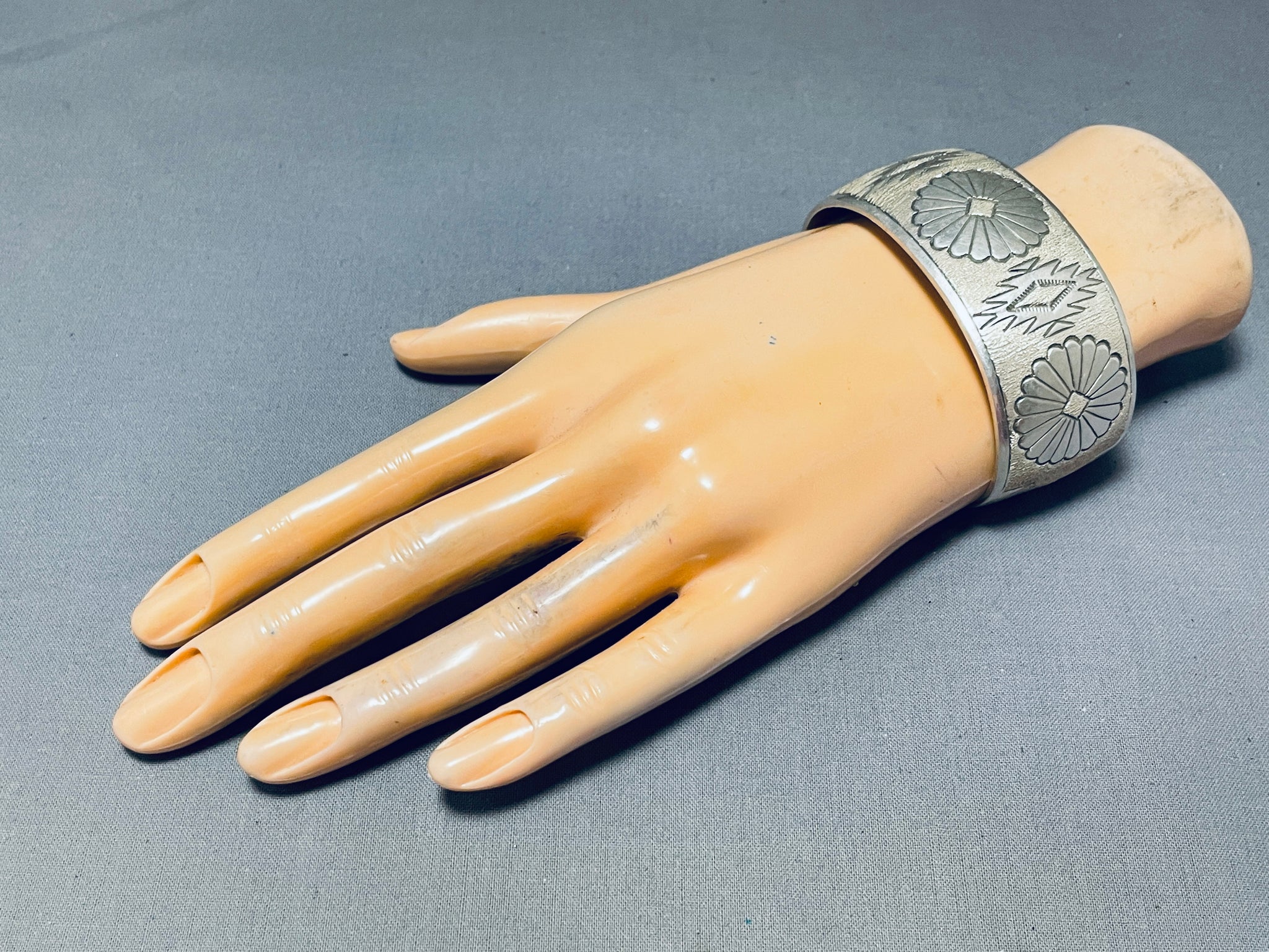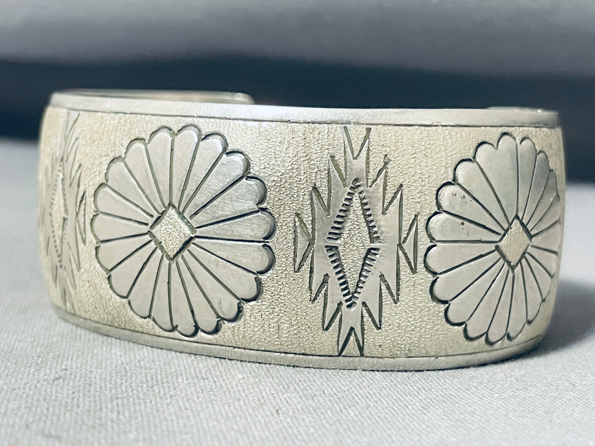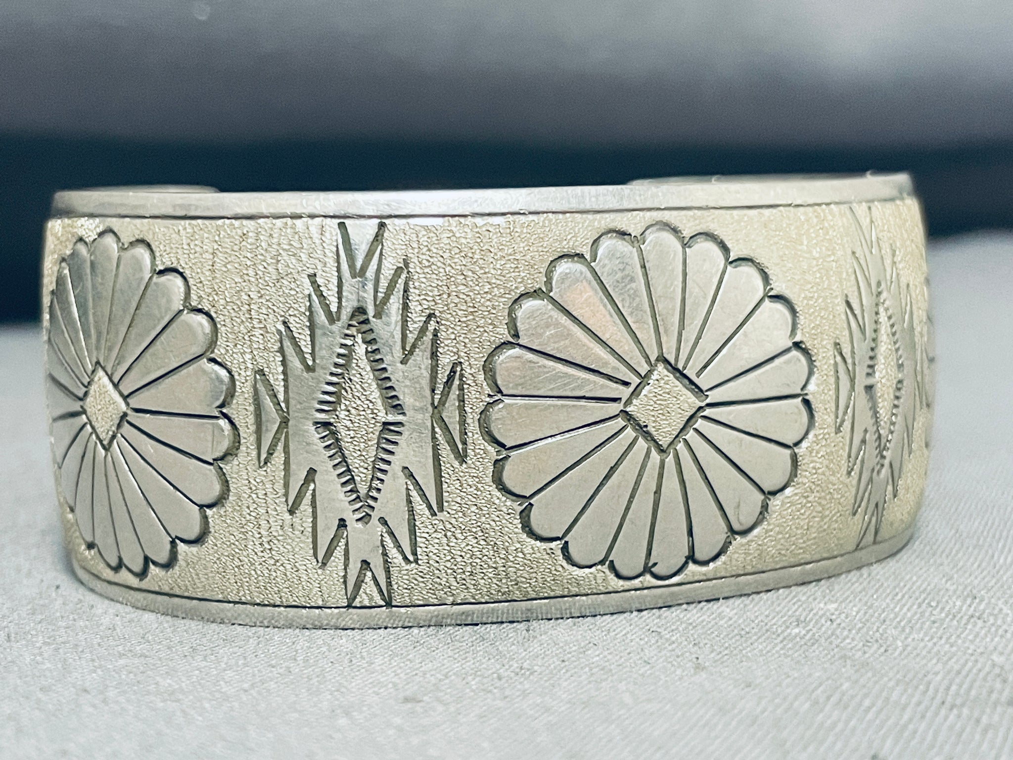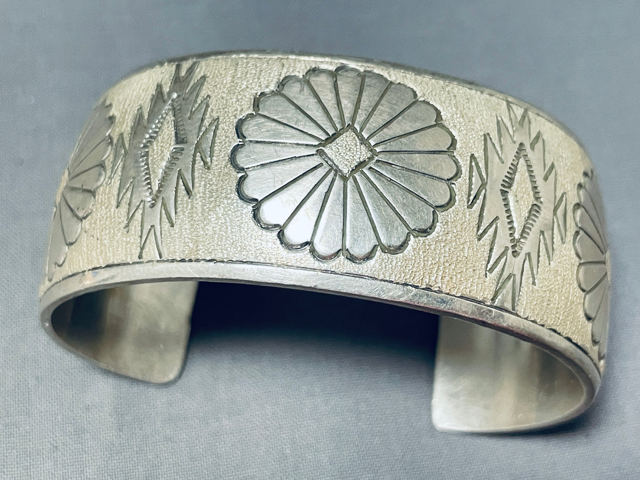 Impressive Vintage Native American Navajo Sterling Silver Bracelet Signed Tahe