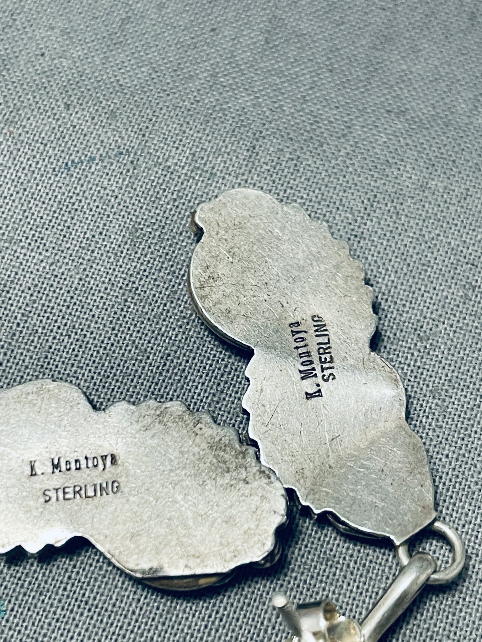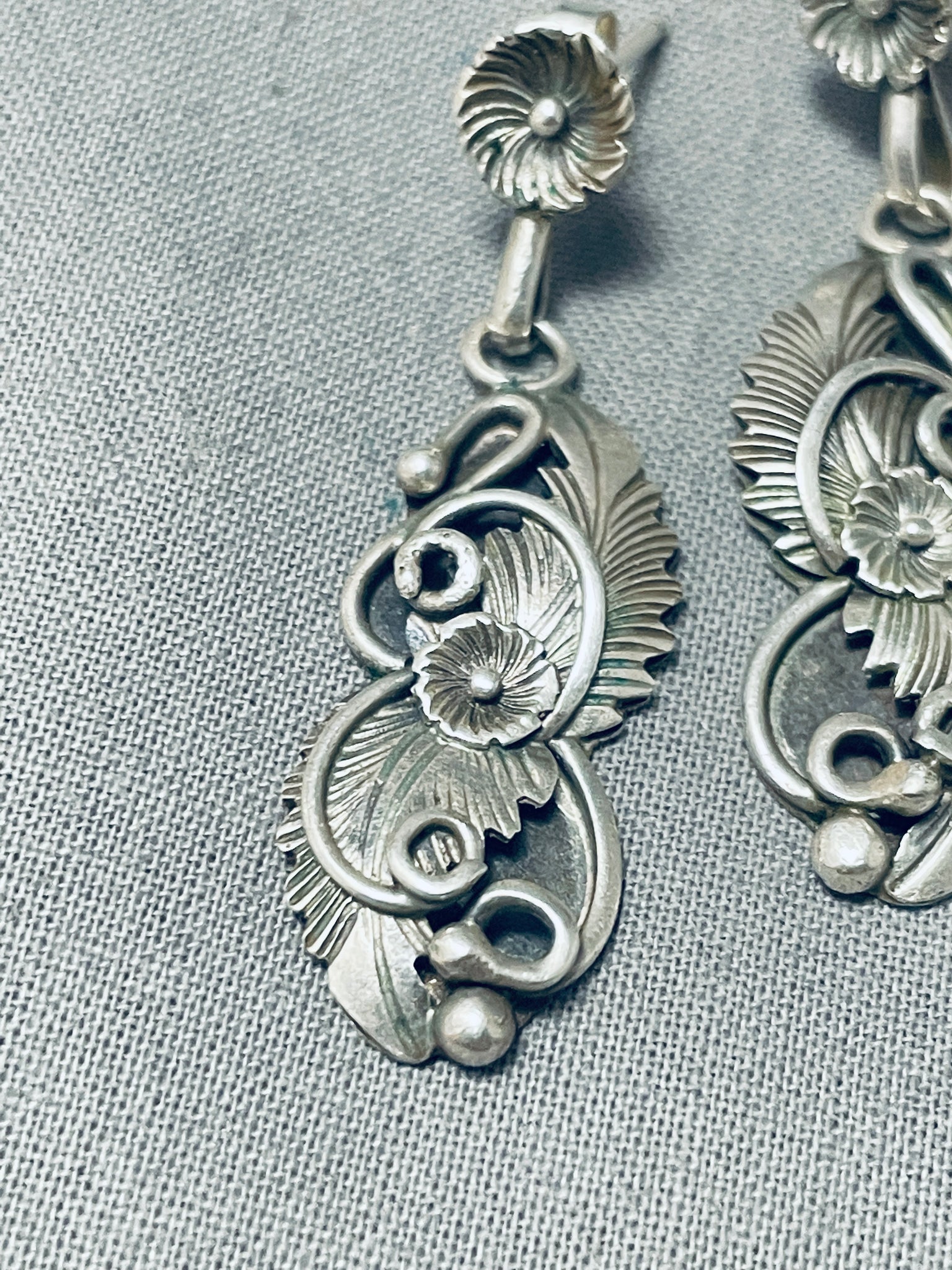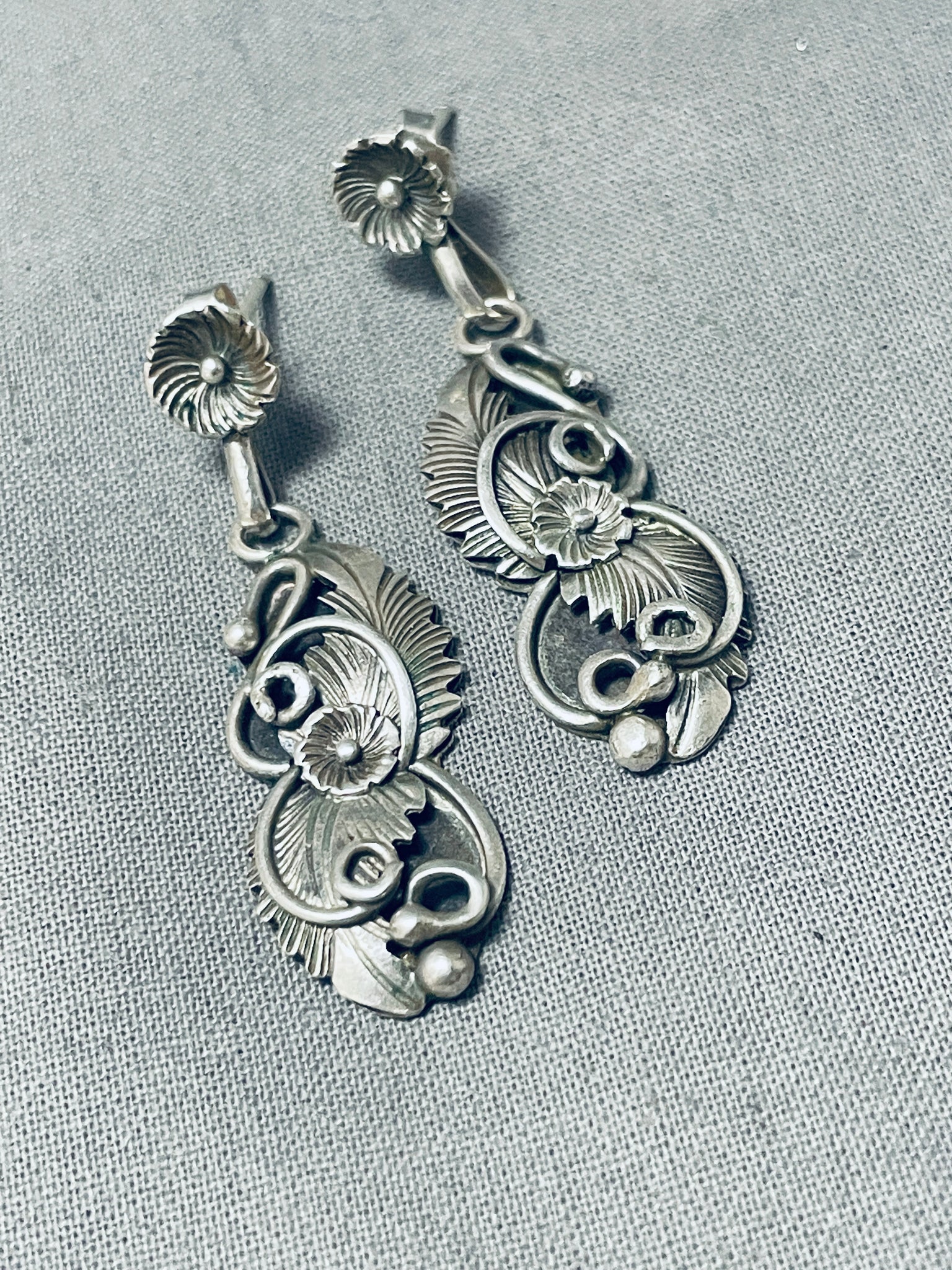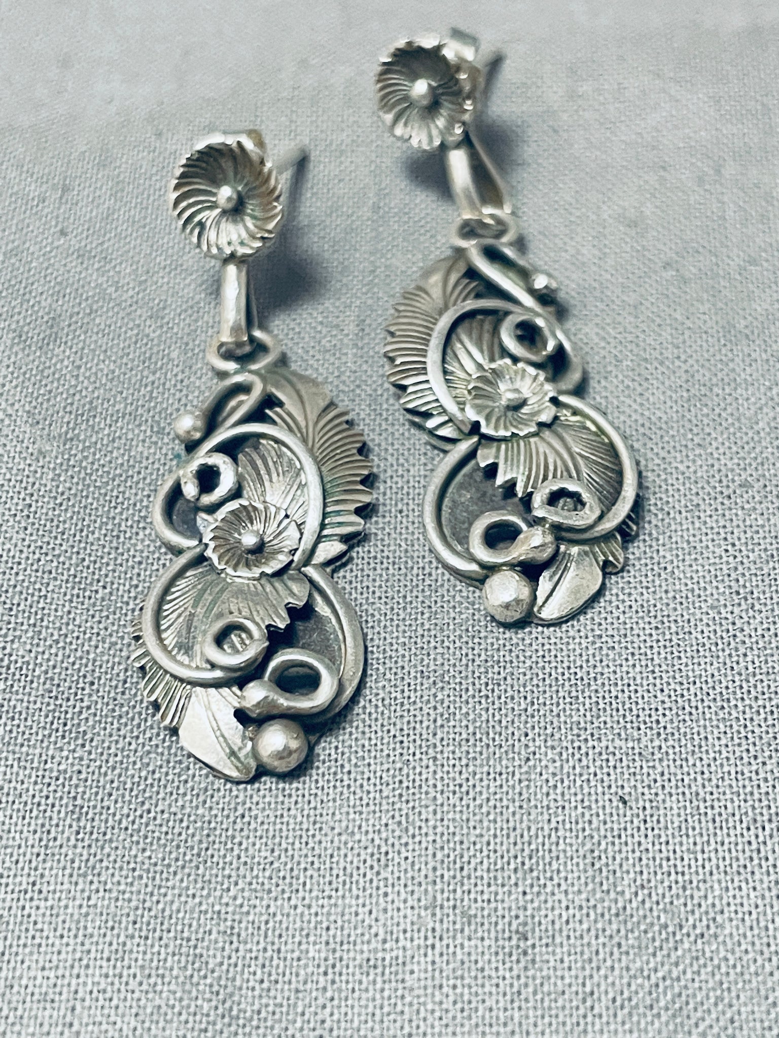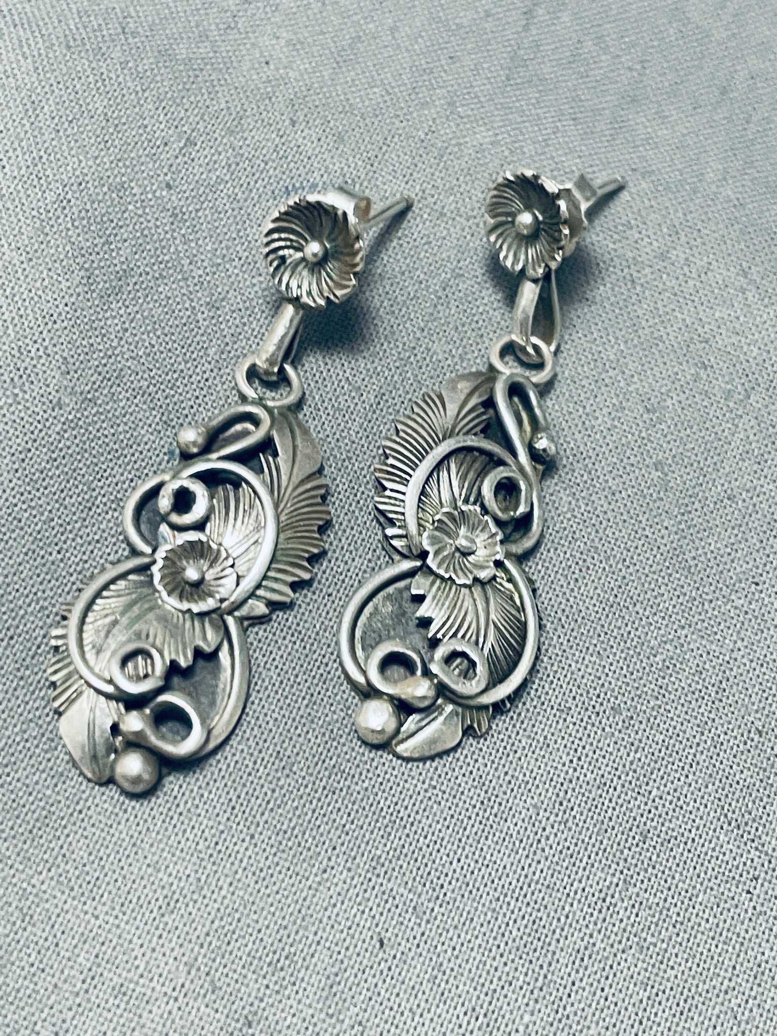Impressive Vintage Native American Navajo Sterling Silver Earrings Signed K. Montoya