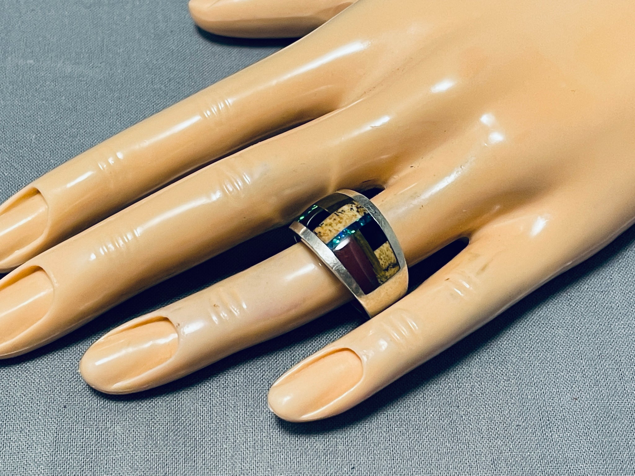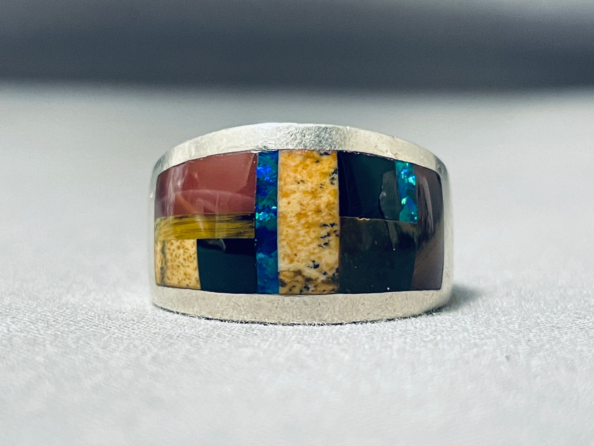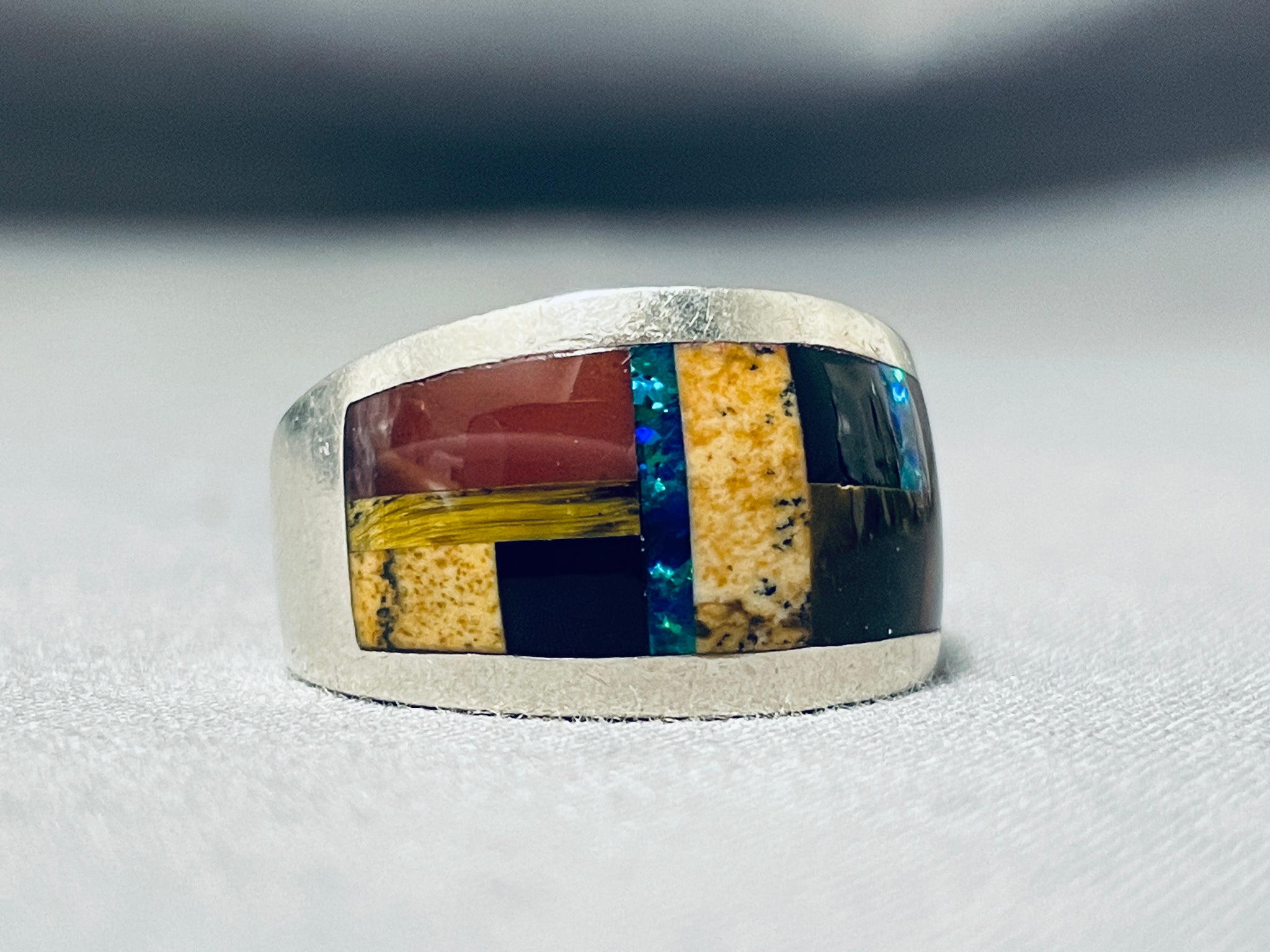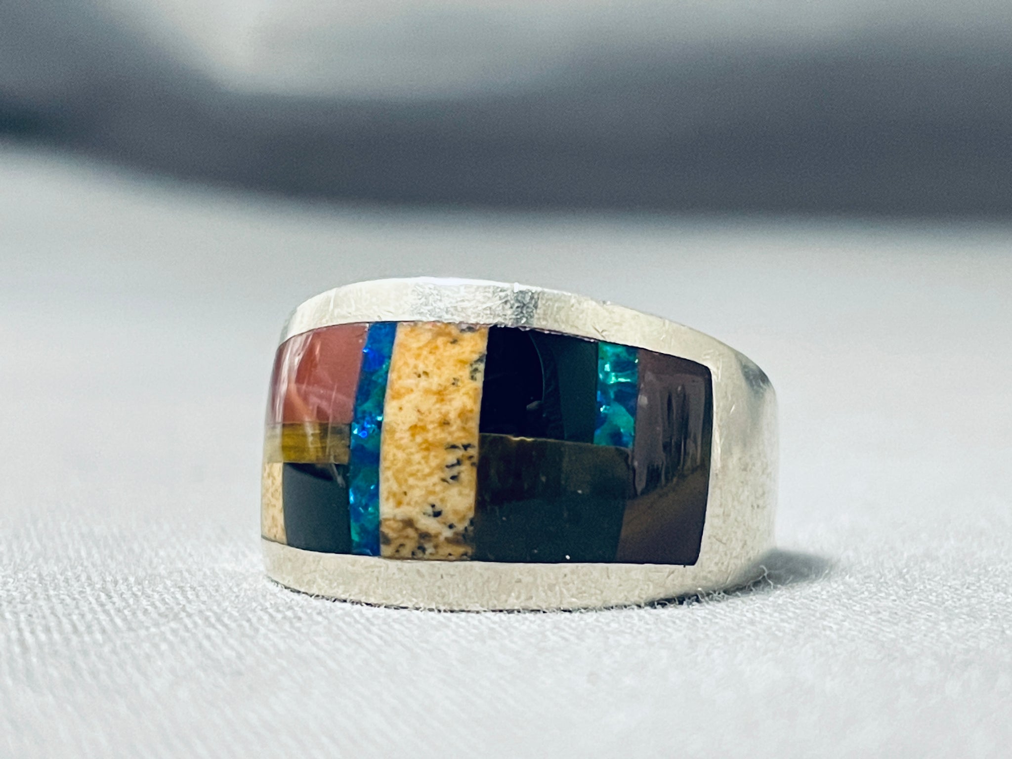 Impressive Vintage Native American Navajo Tigers Eye Jet Inlay Sterling Silver Ring