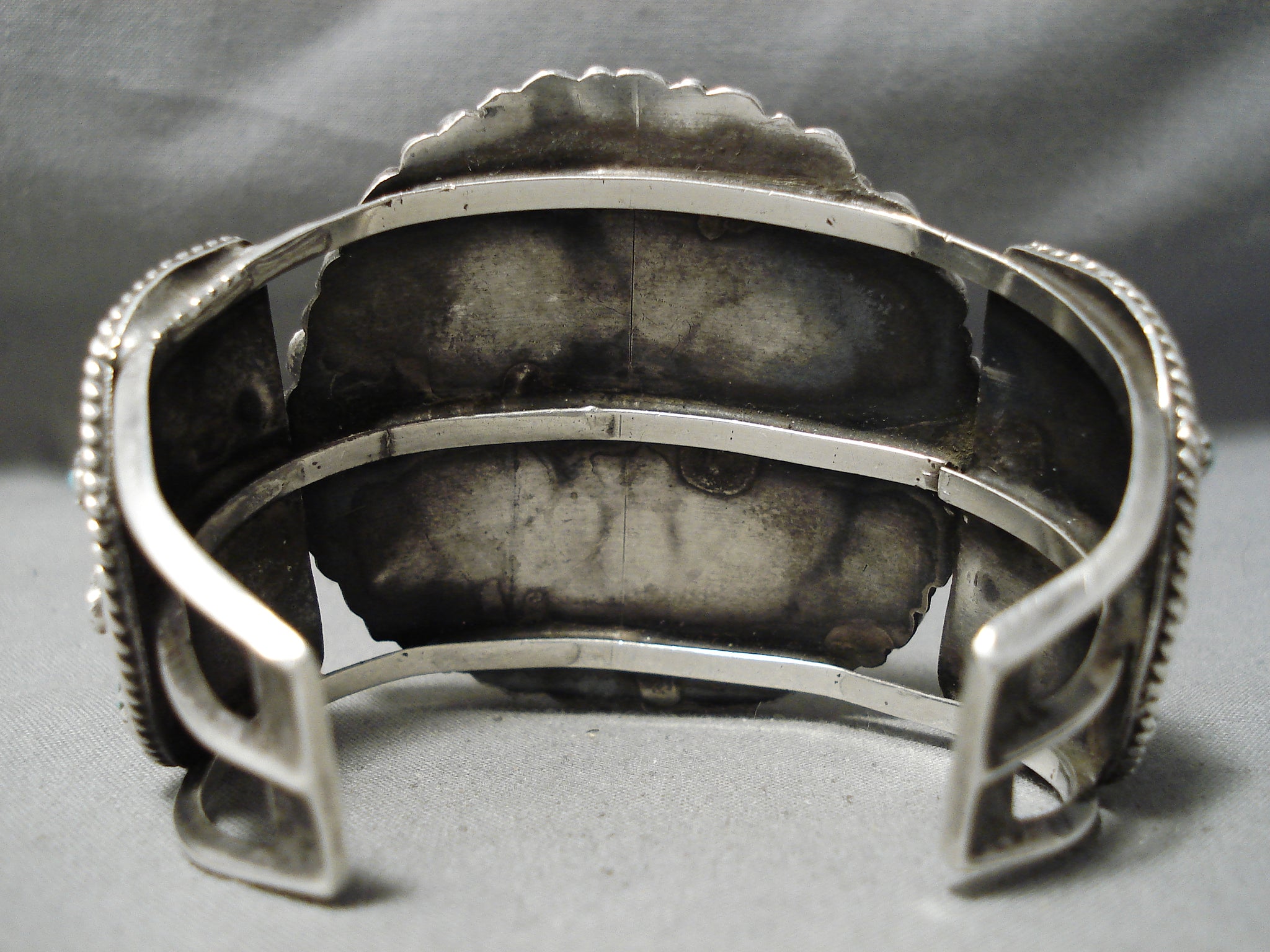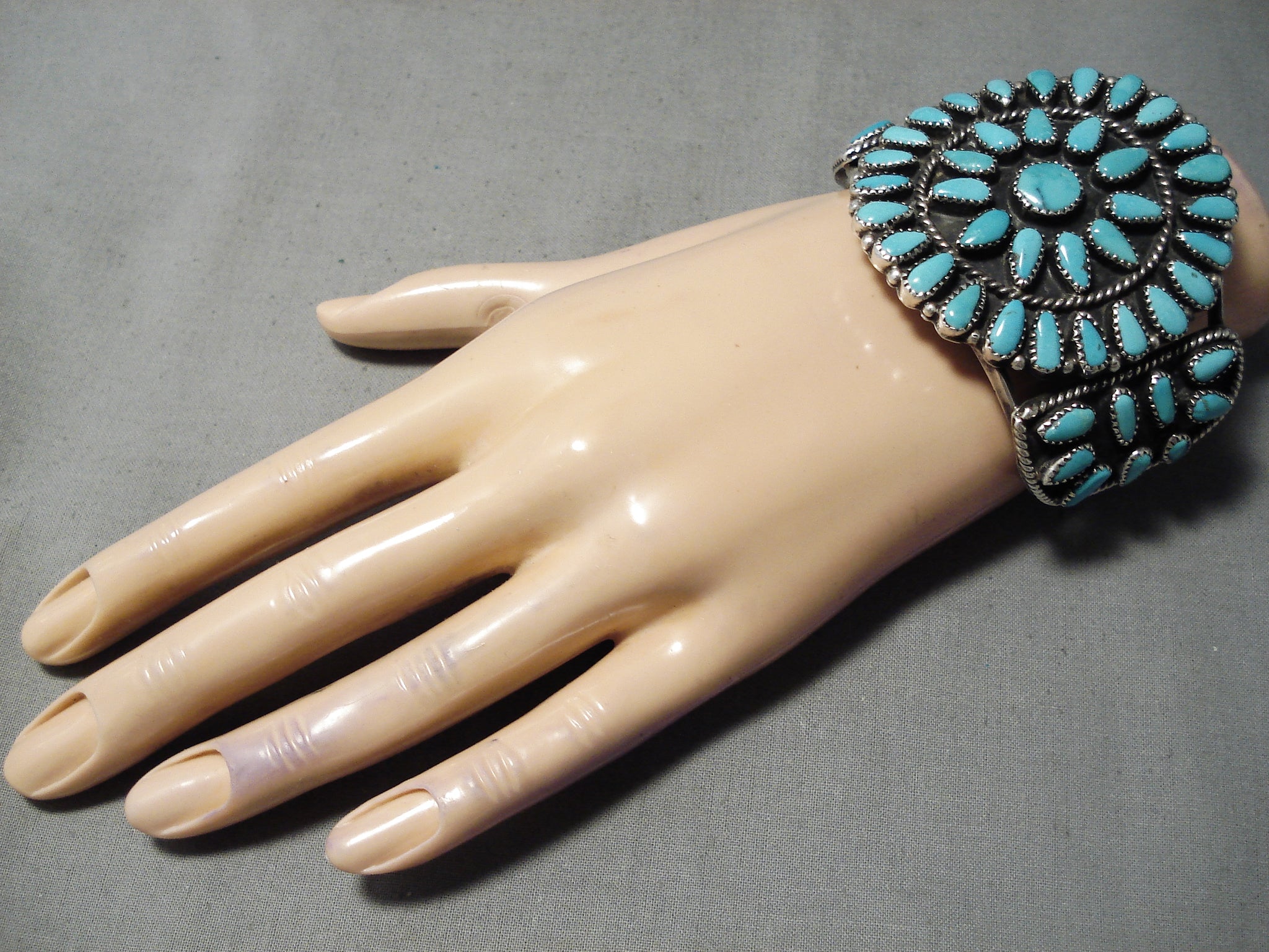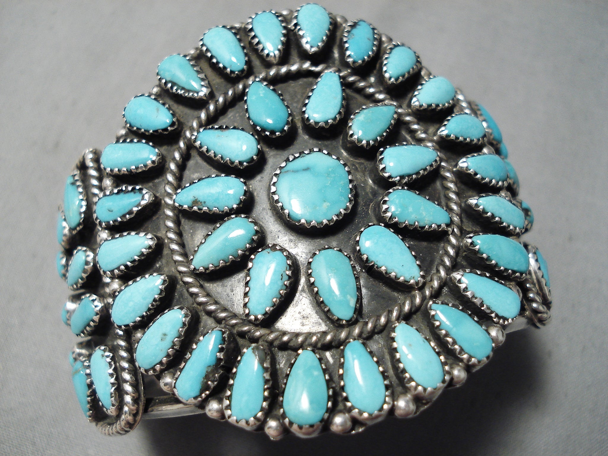 Impressive Vintage Native American Navajo Turquoise Cluster Sterling Silver Bracelet Old