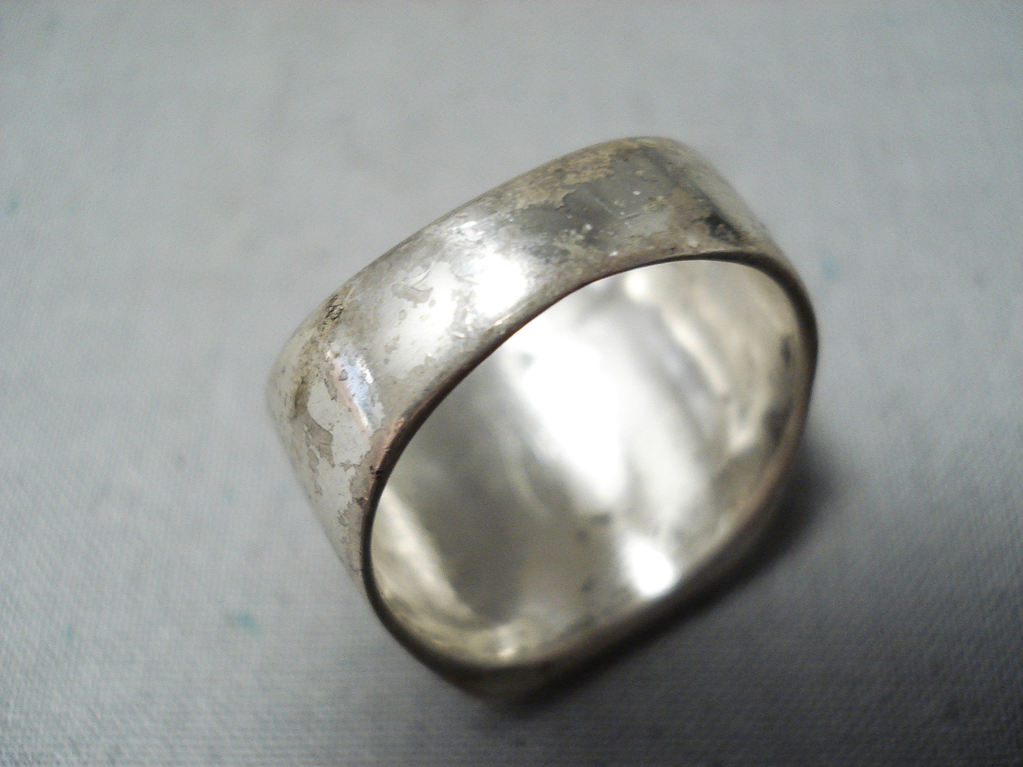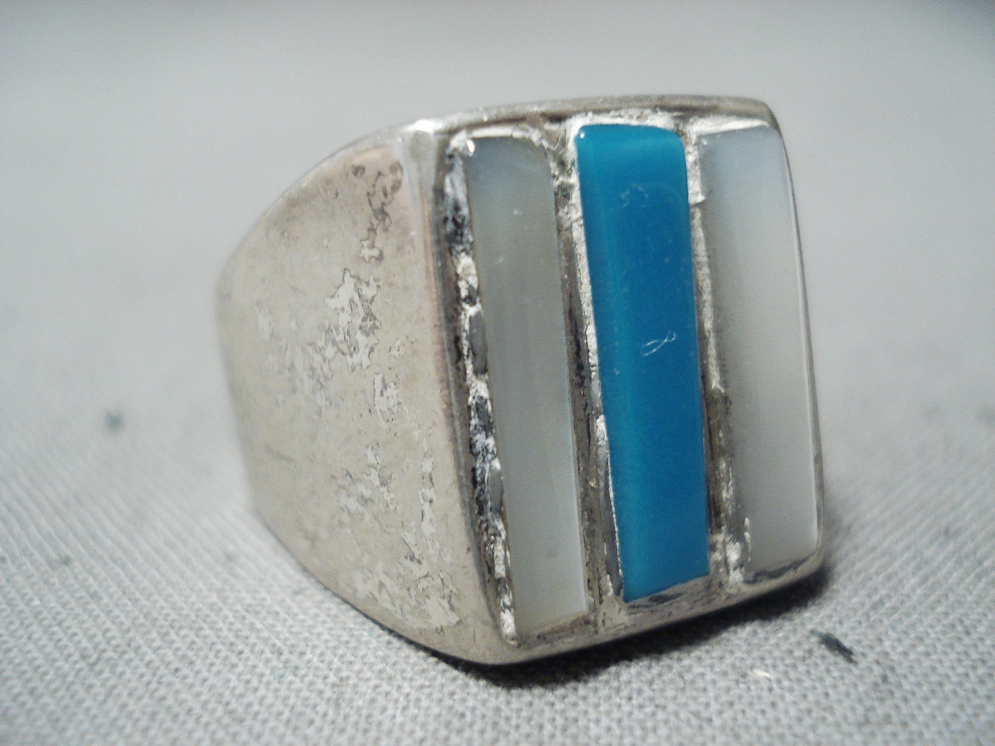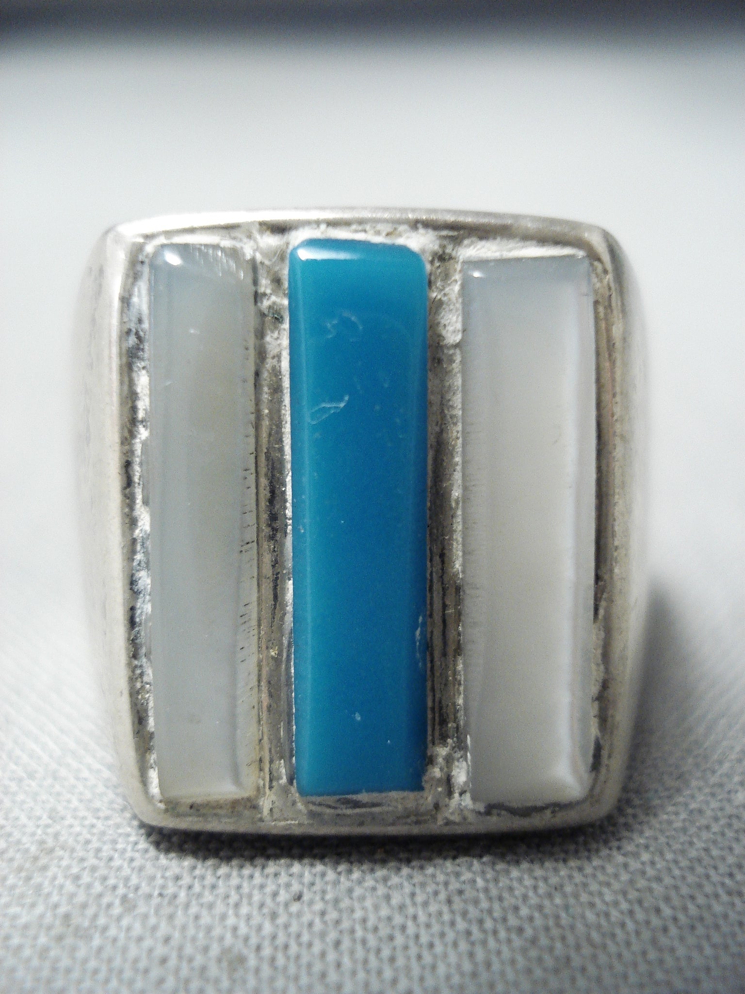 Impressive Vintage Native American Navajo Turquoise Mother Of Pearl Sterling Silver Ring Old