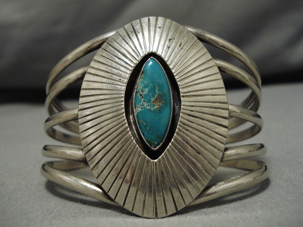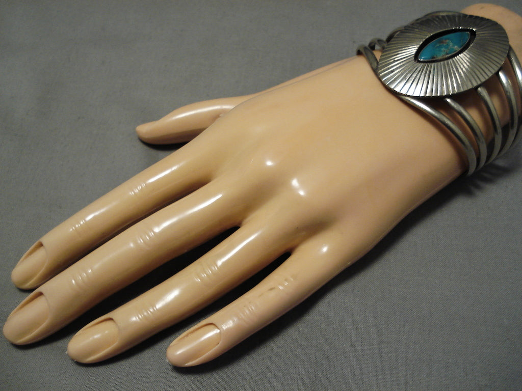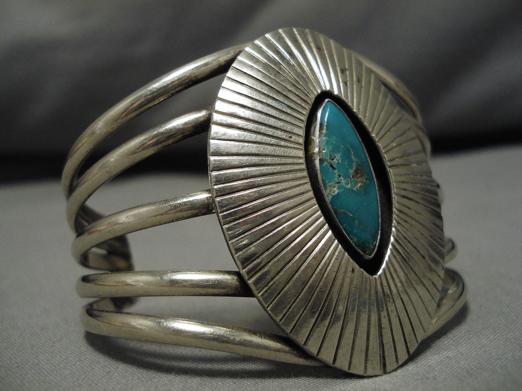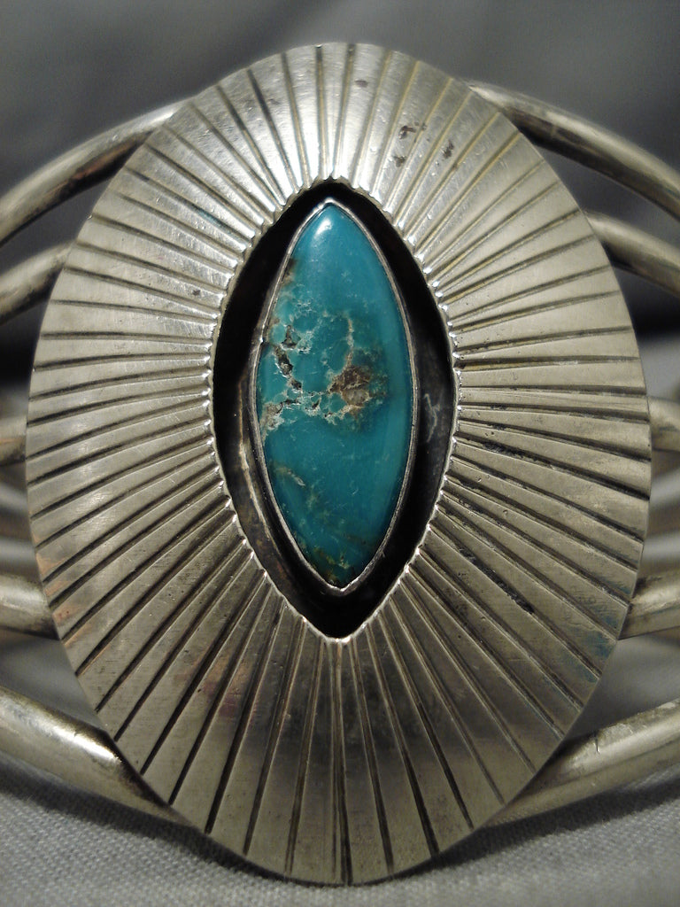 Impressive Vintage Navajo Turquoise Sterling Silver Native American Bracelet