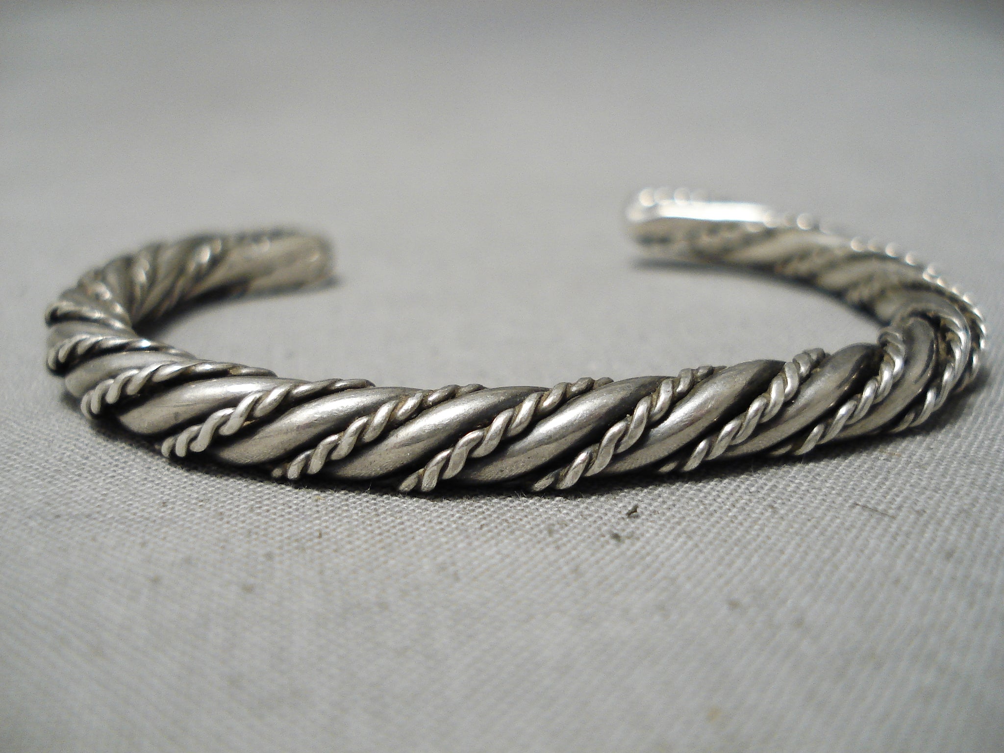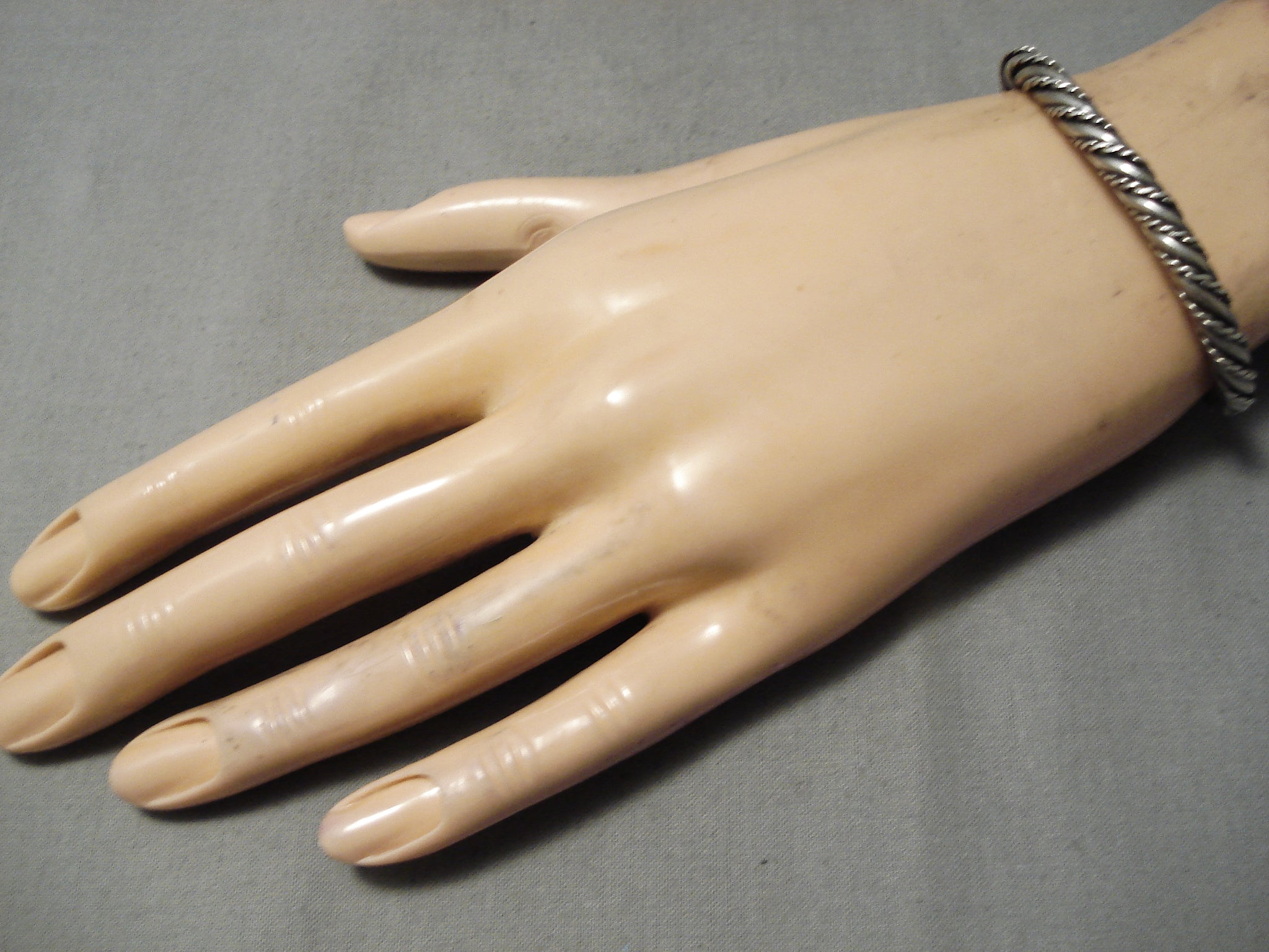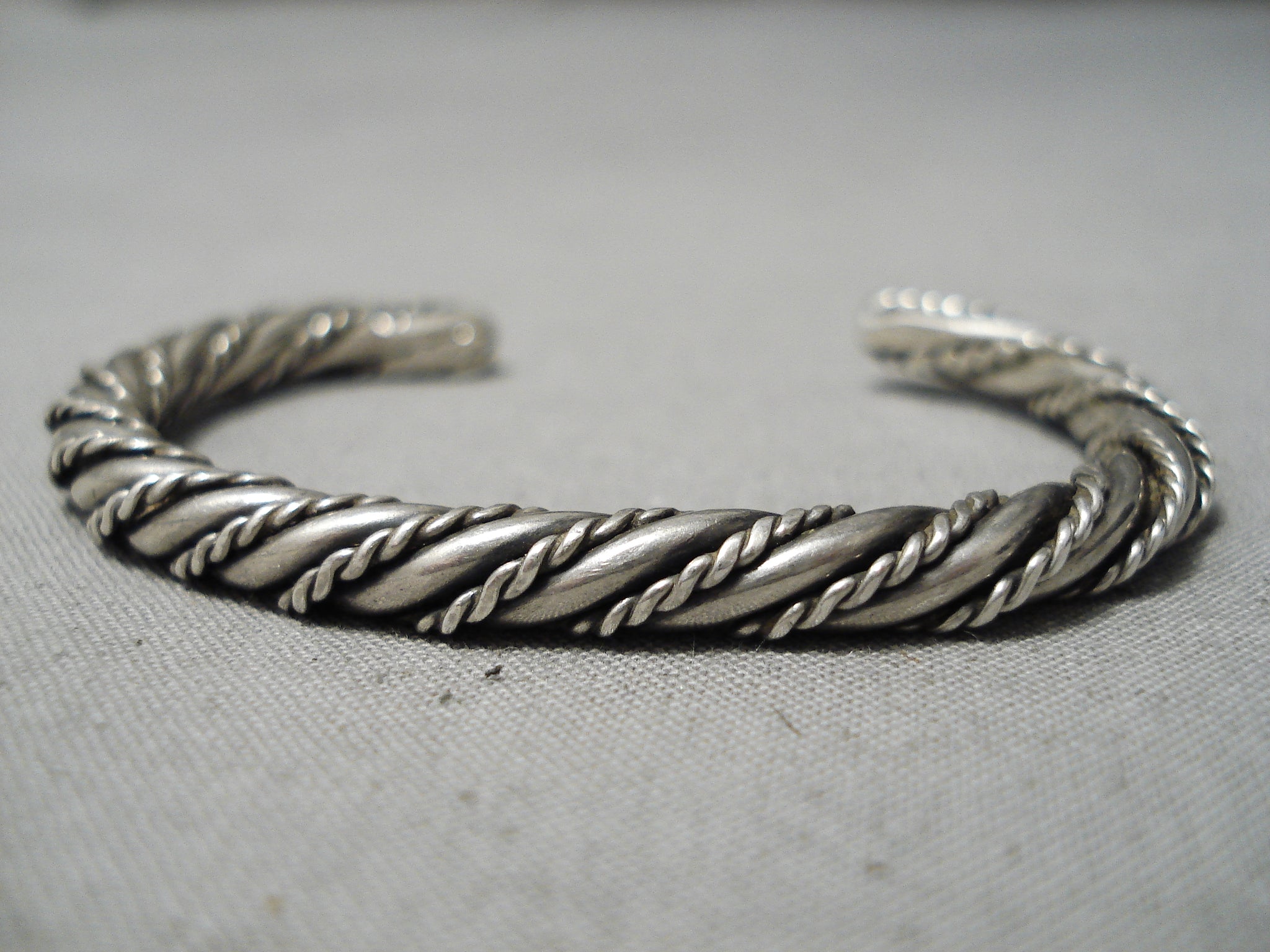 Impressive Vintage Navajo Twist Sterling Silver Native American Bracelet Old
