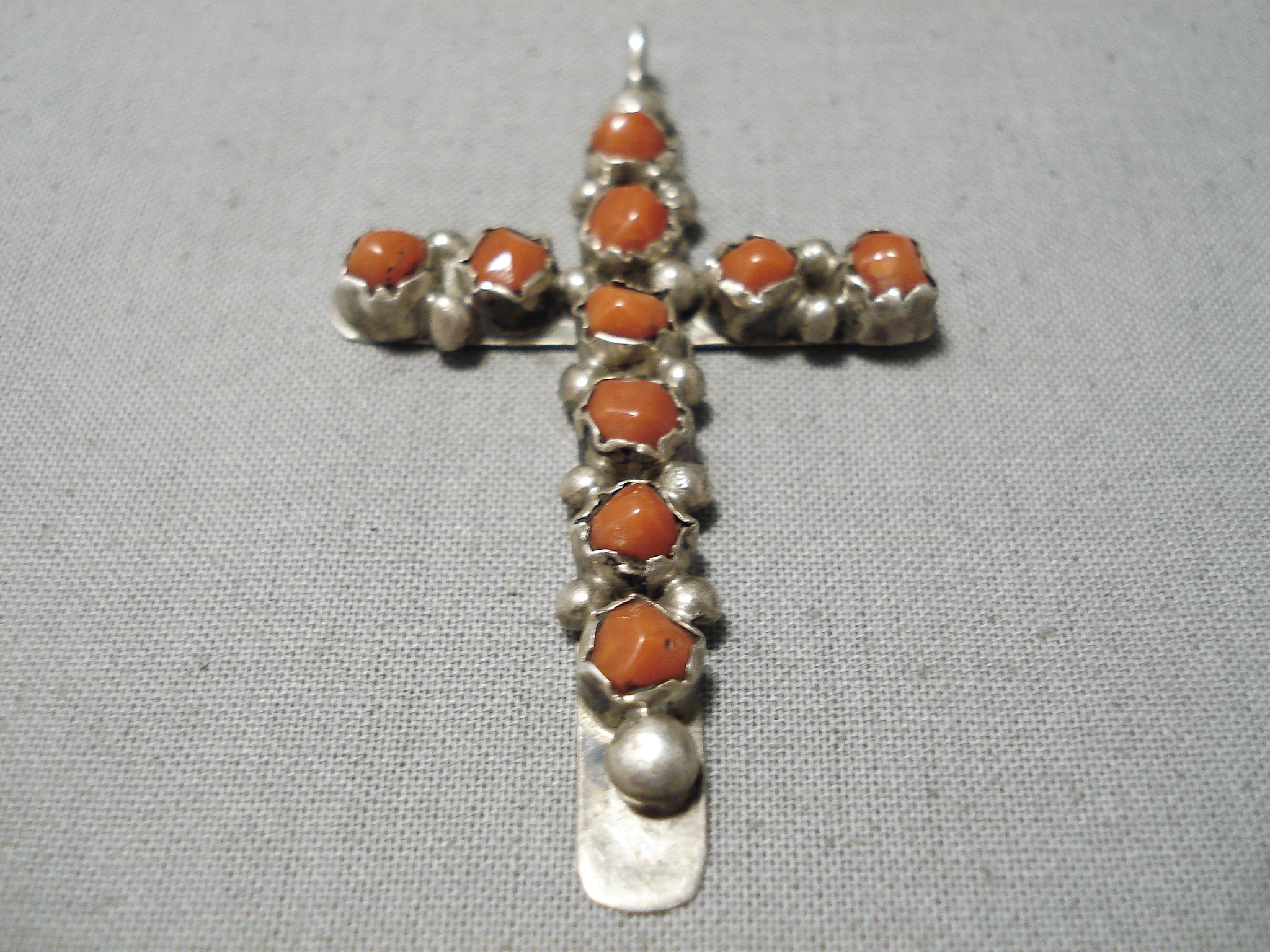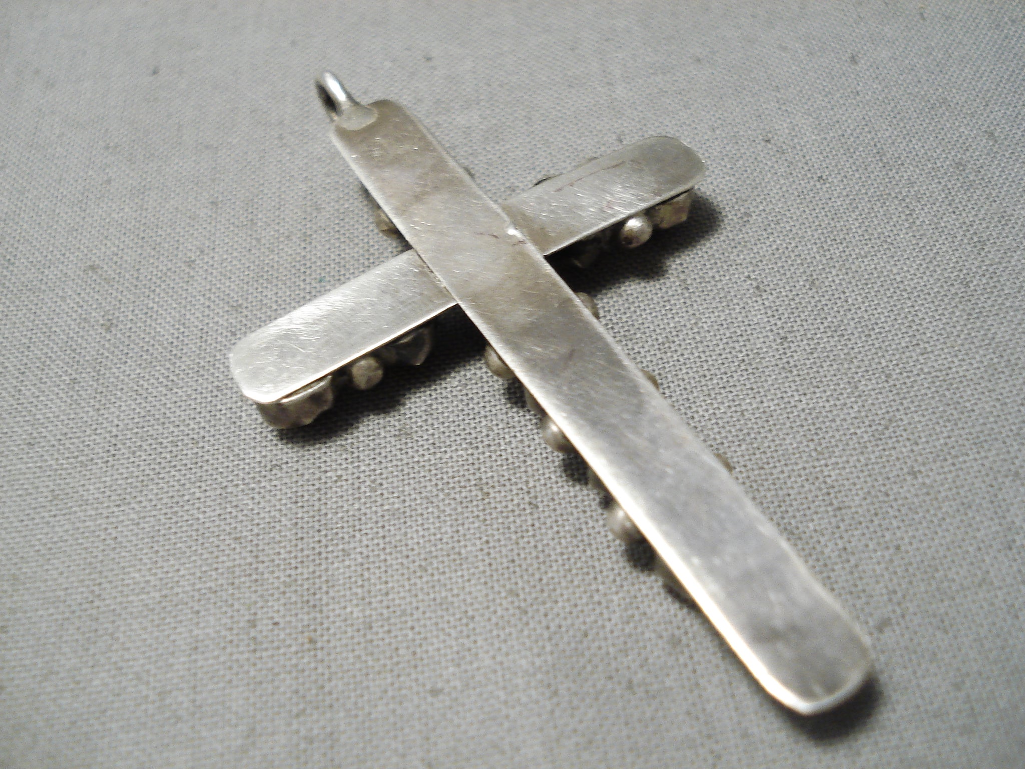 Impressive Vintage Zuni Native American Sterling Silver Cross Pendant Old