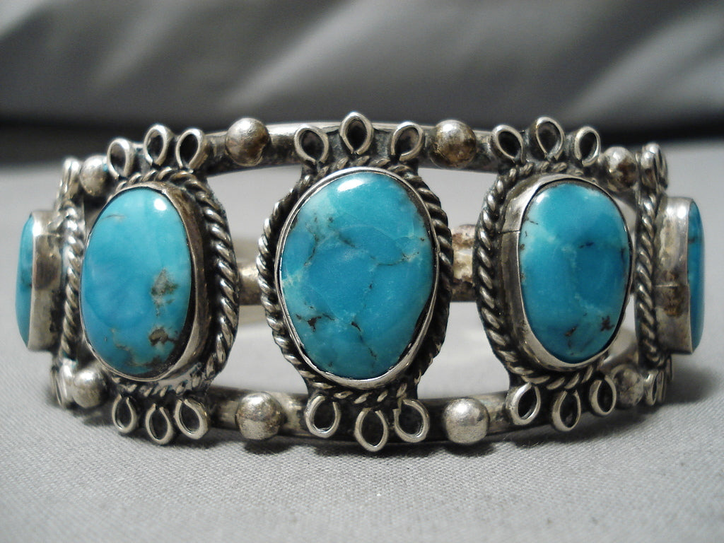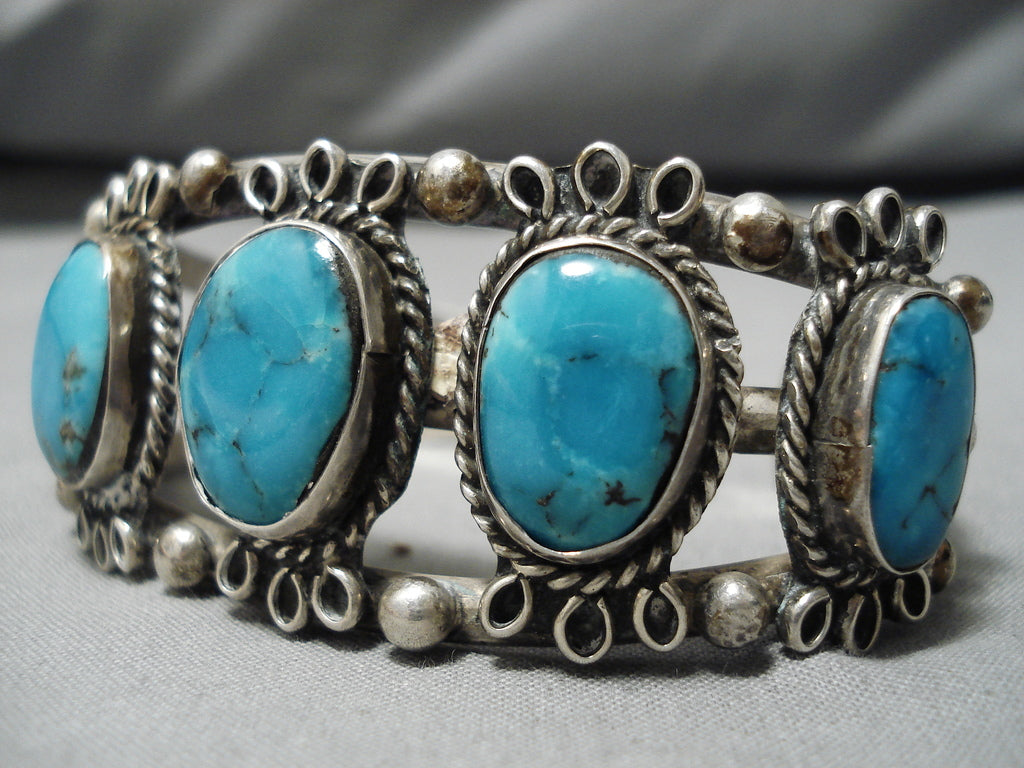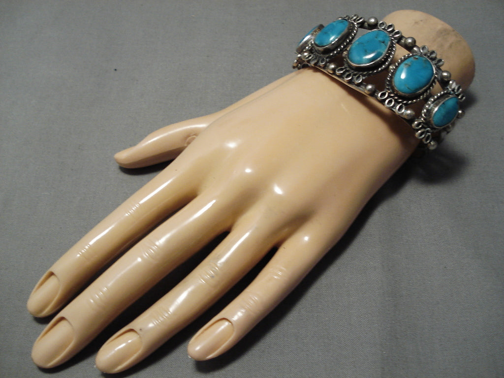 Impressive Vintage Zuni Native American Turquoise Sterling Silver Bracelet
