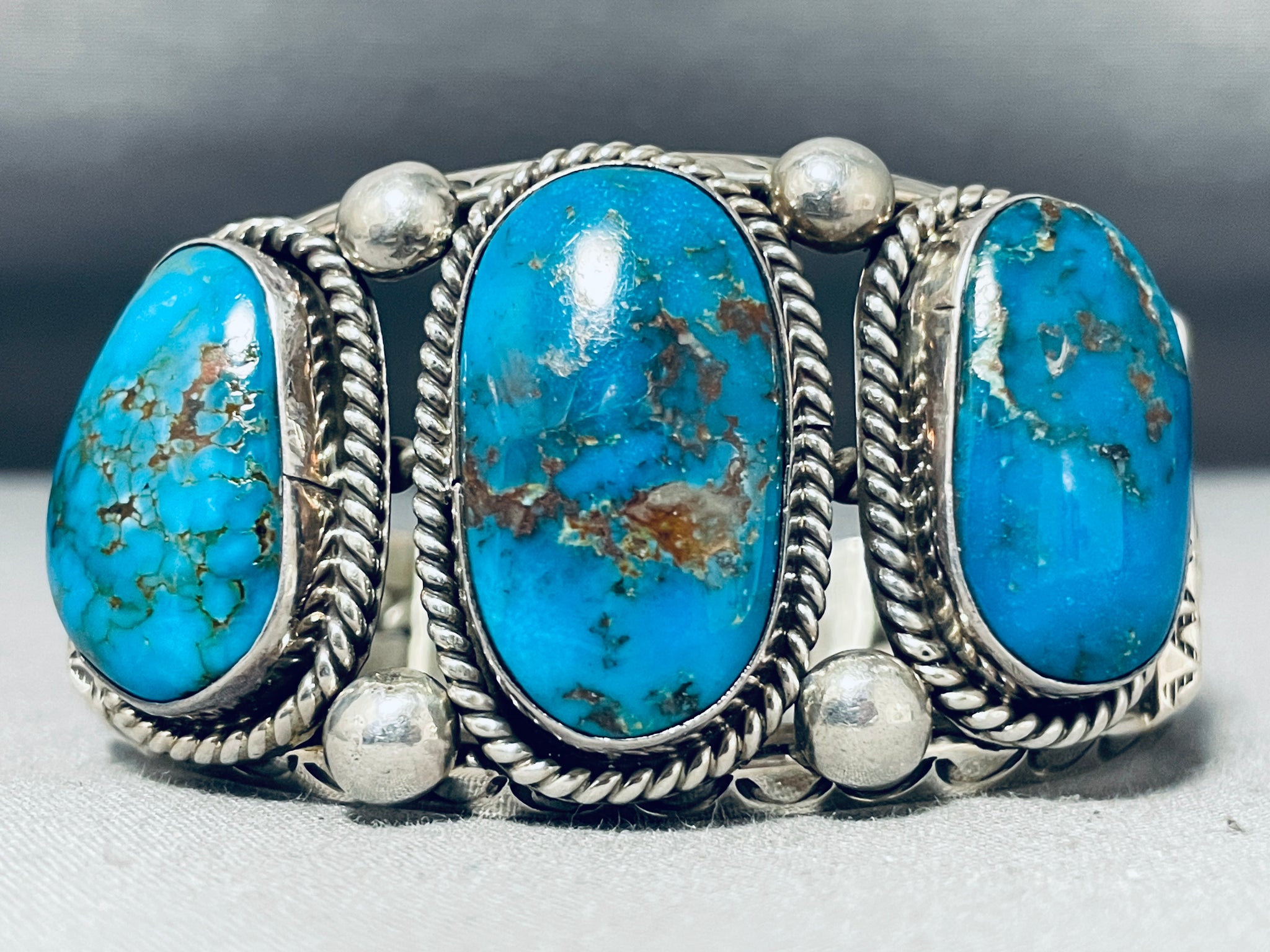 Incomparable Vintage Native American Navajo Turquoise Mountain Sterling Silver Bracelet