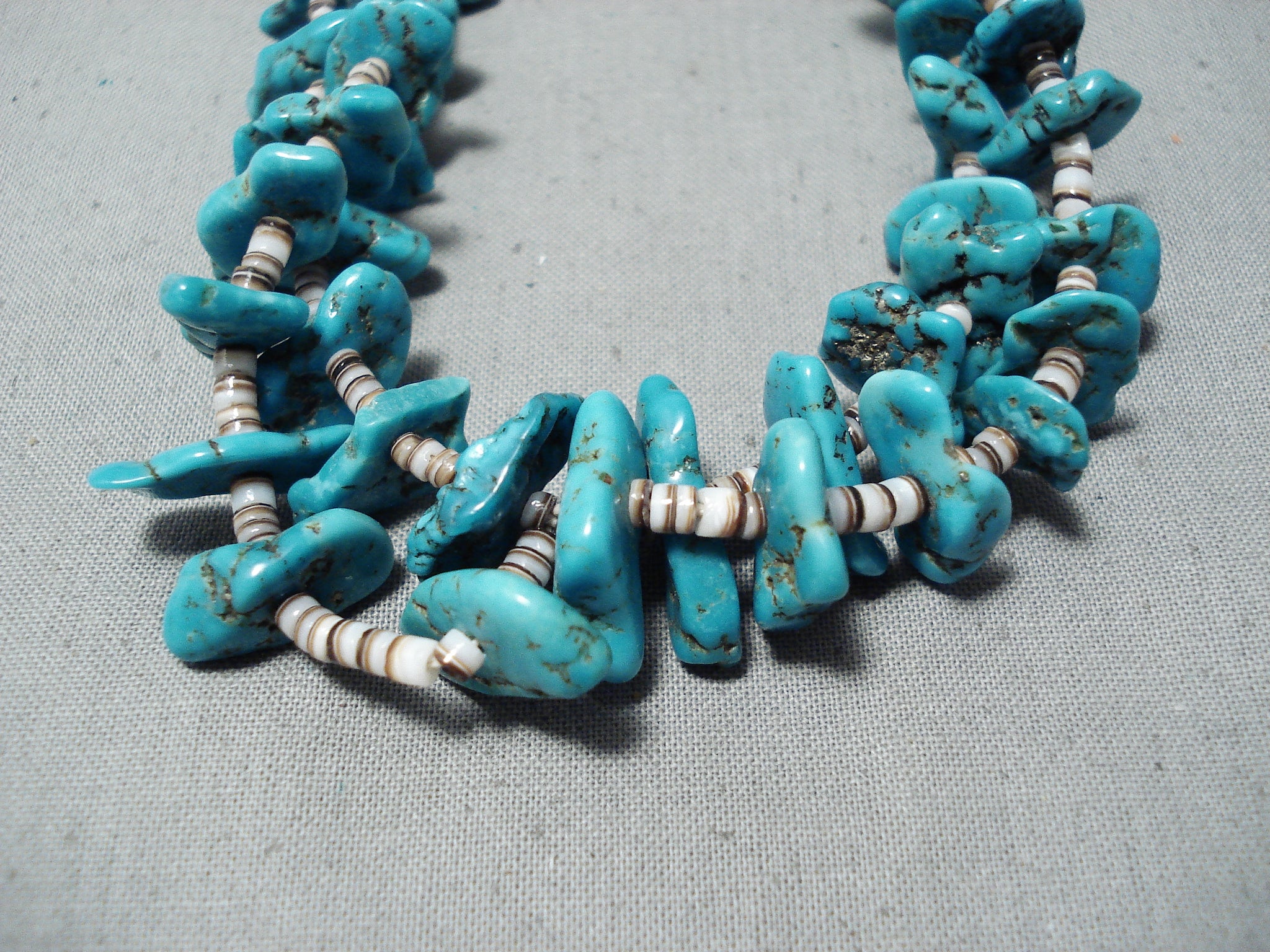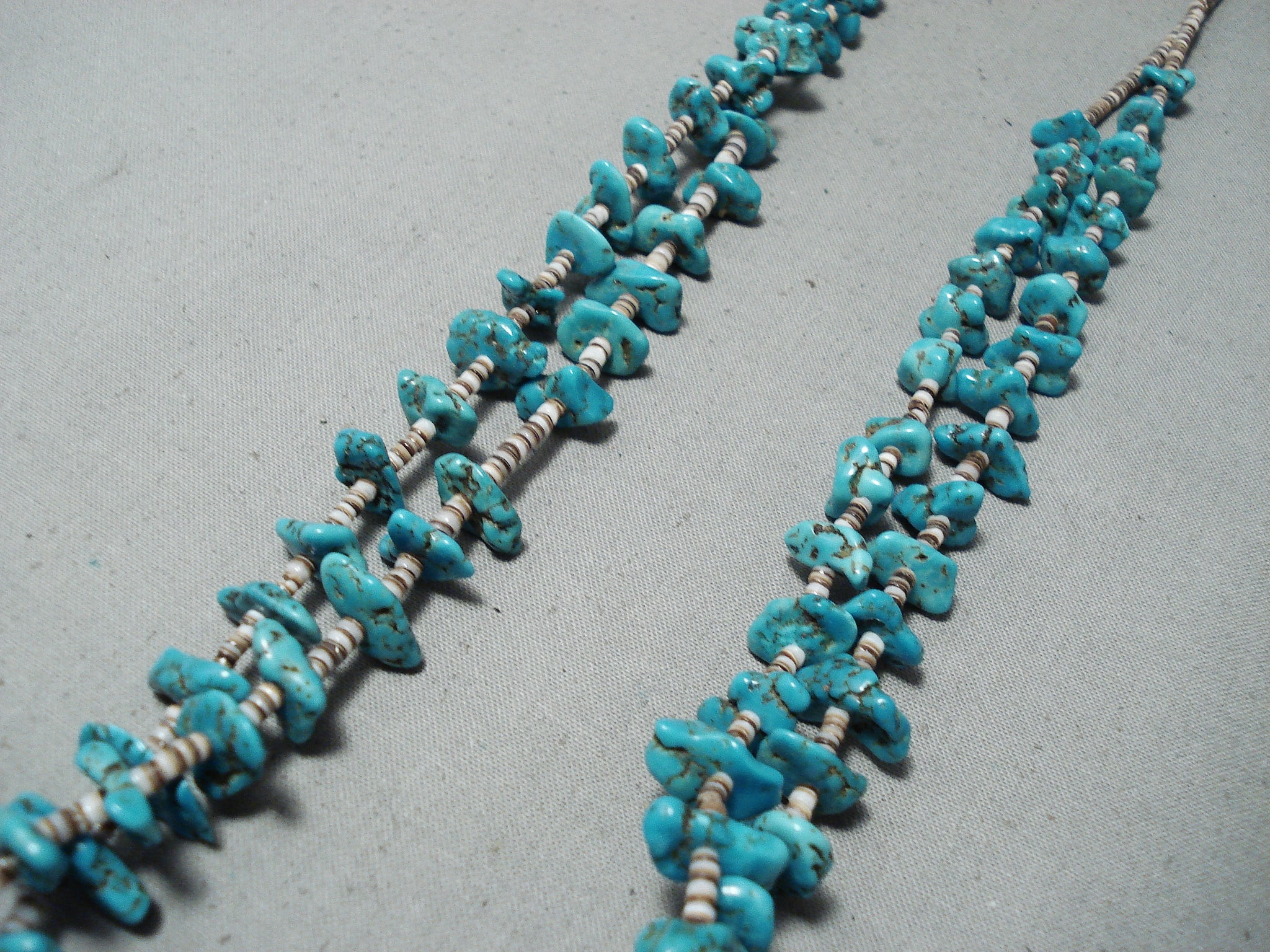 Incredible Authentic Vintage Native American Navajo Sleeping Beauty Turquoise Necklace Old
