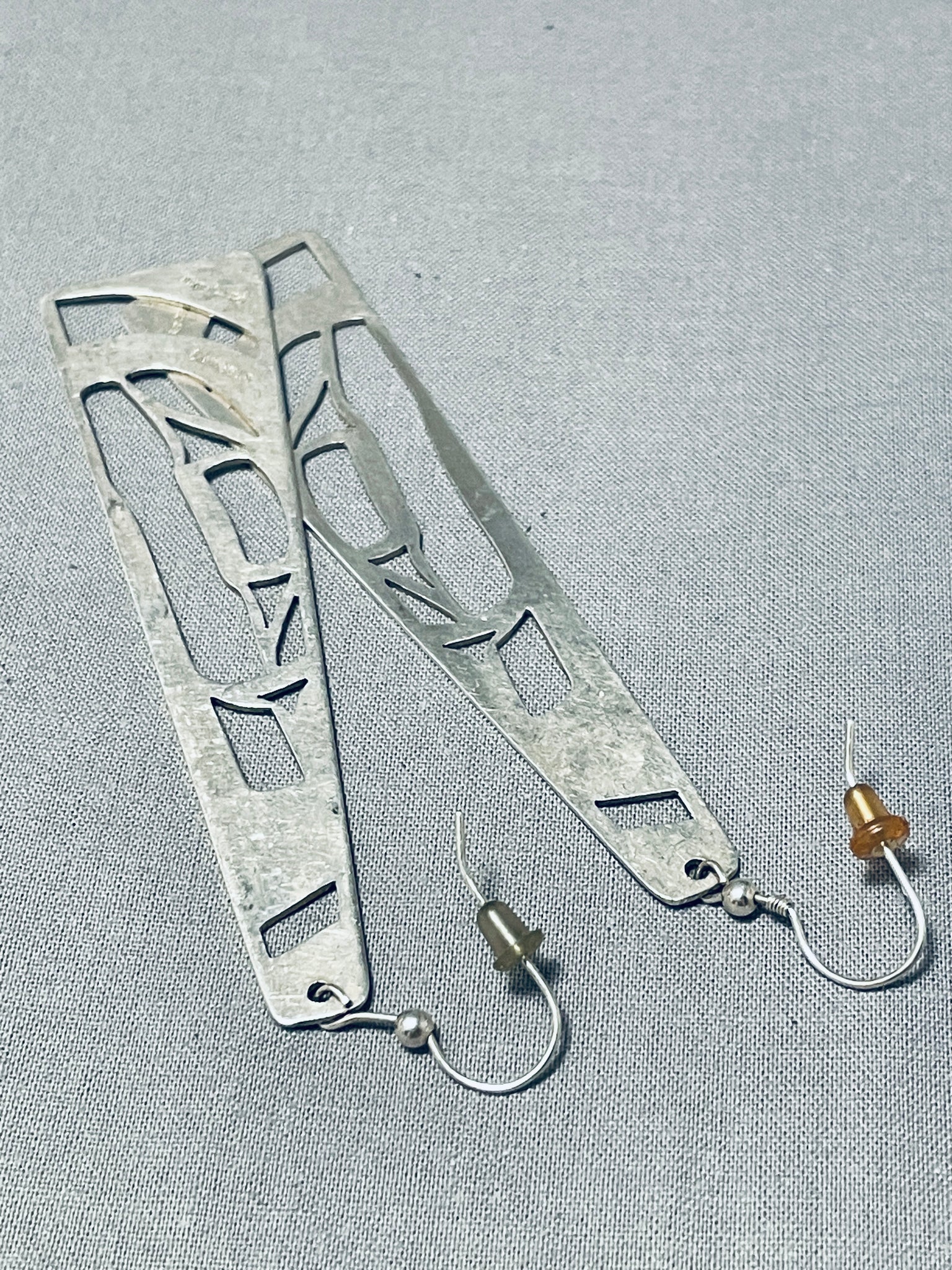 Incredible Harry Williams Native American Navajo Sterling Silver Dangle Earrings Signed