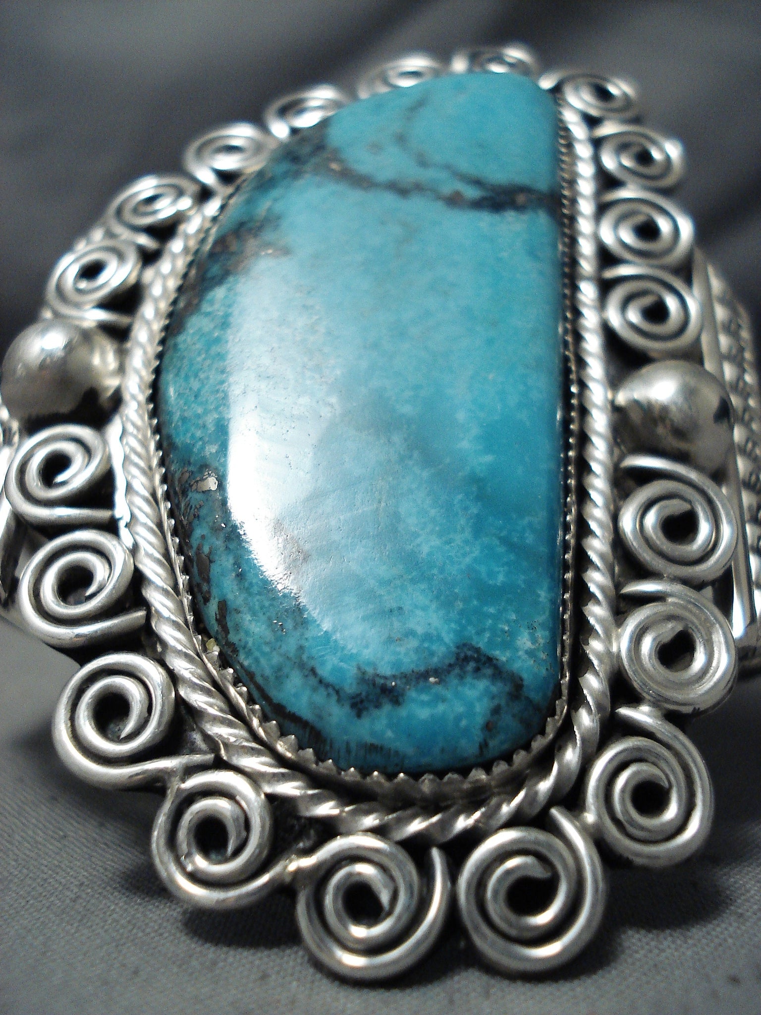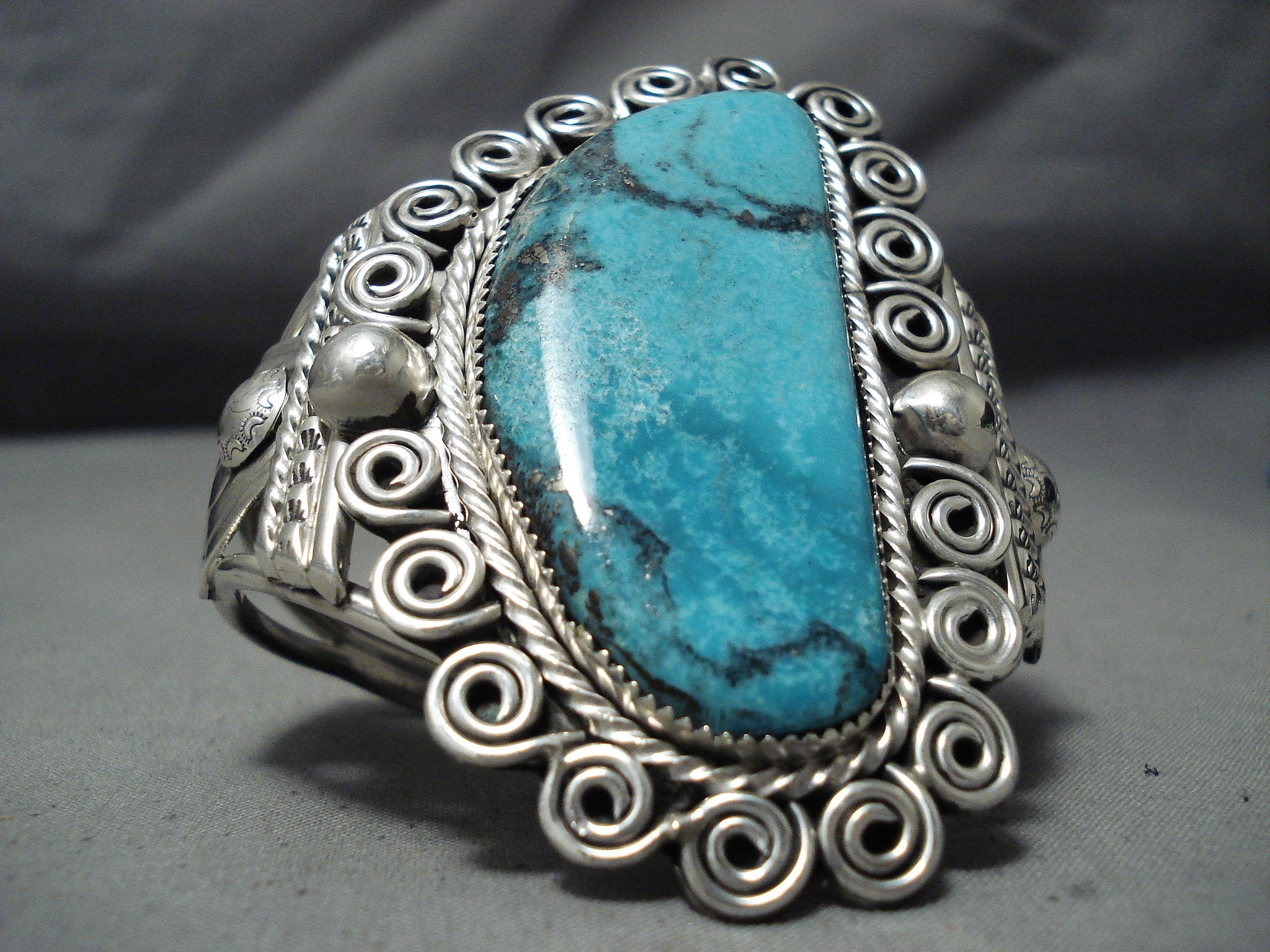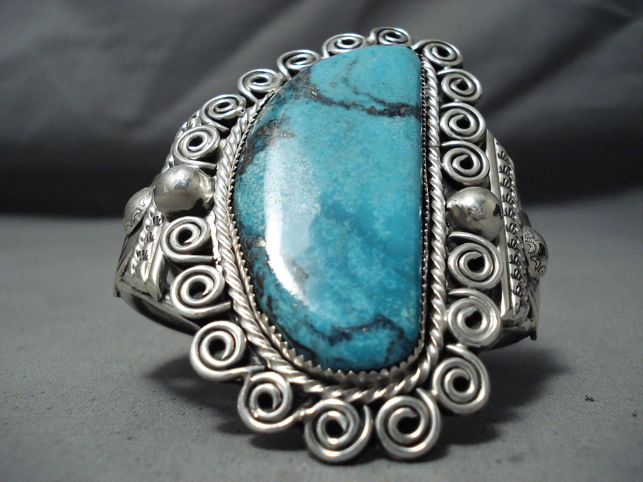 Incredible Native American Navajo Huge Blue Diamond Turquoise Sterling Silver Bracelet
