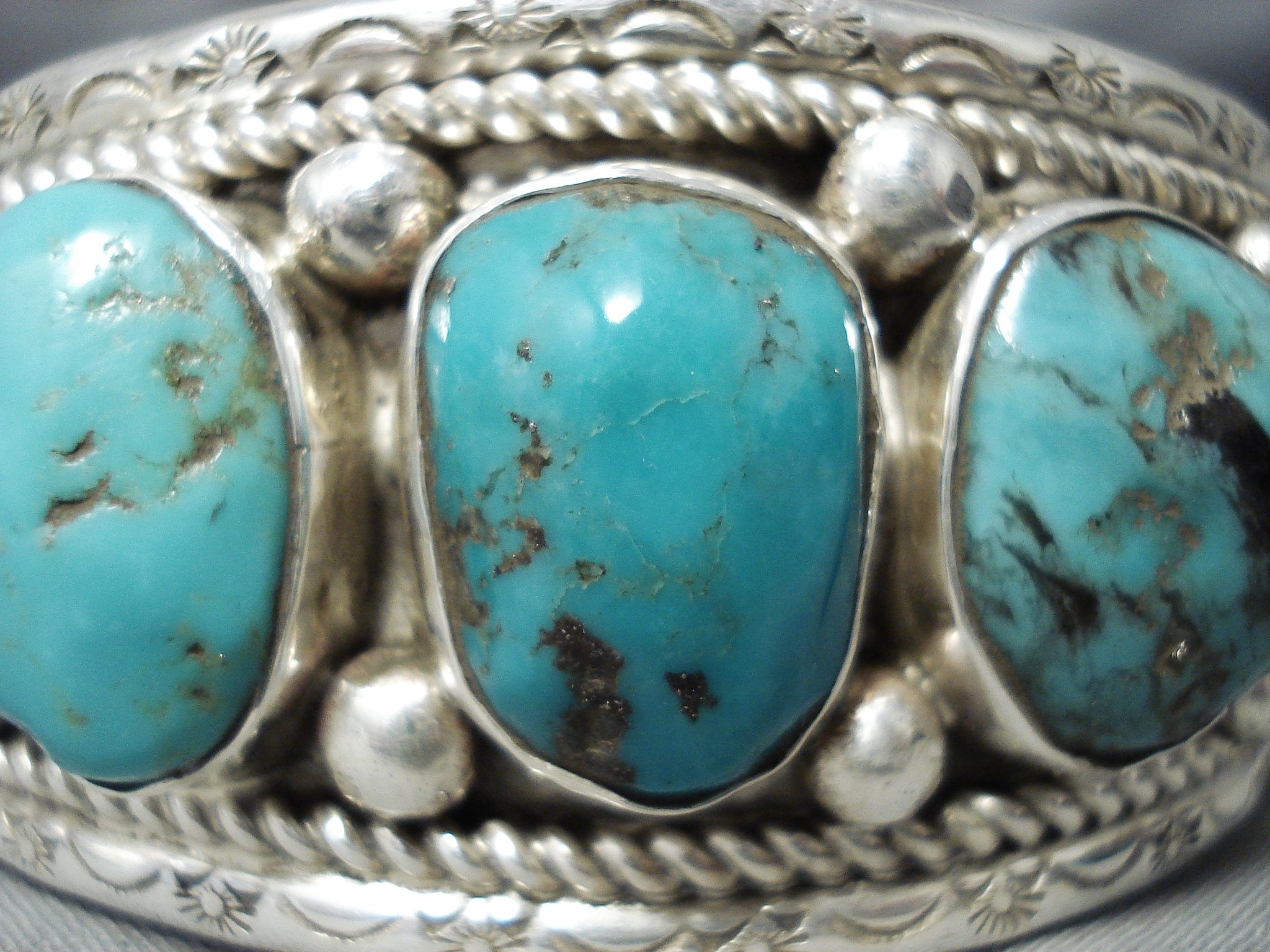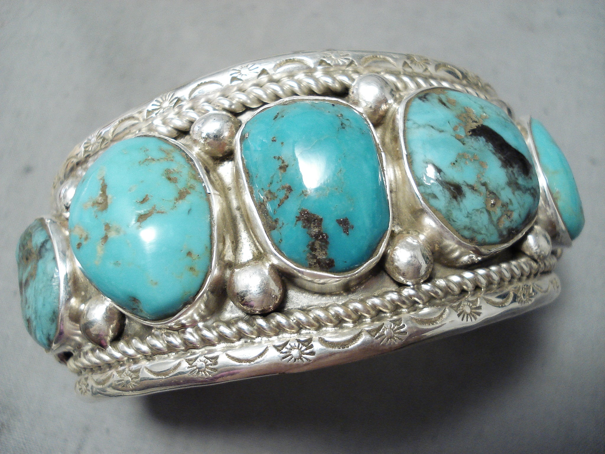 Incredible Native American Navajo Kingman Turquoise Sterling Silver Bracelet Rex Tso