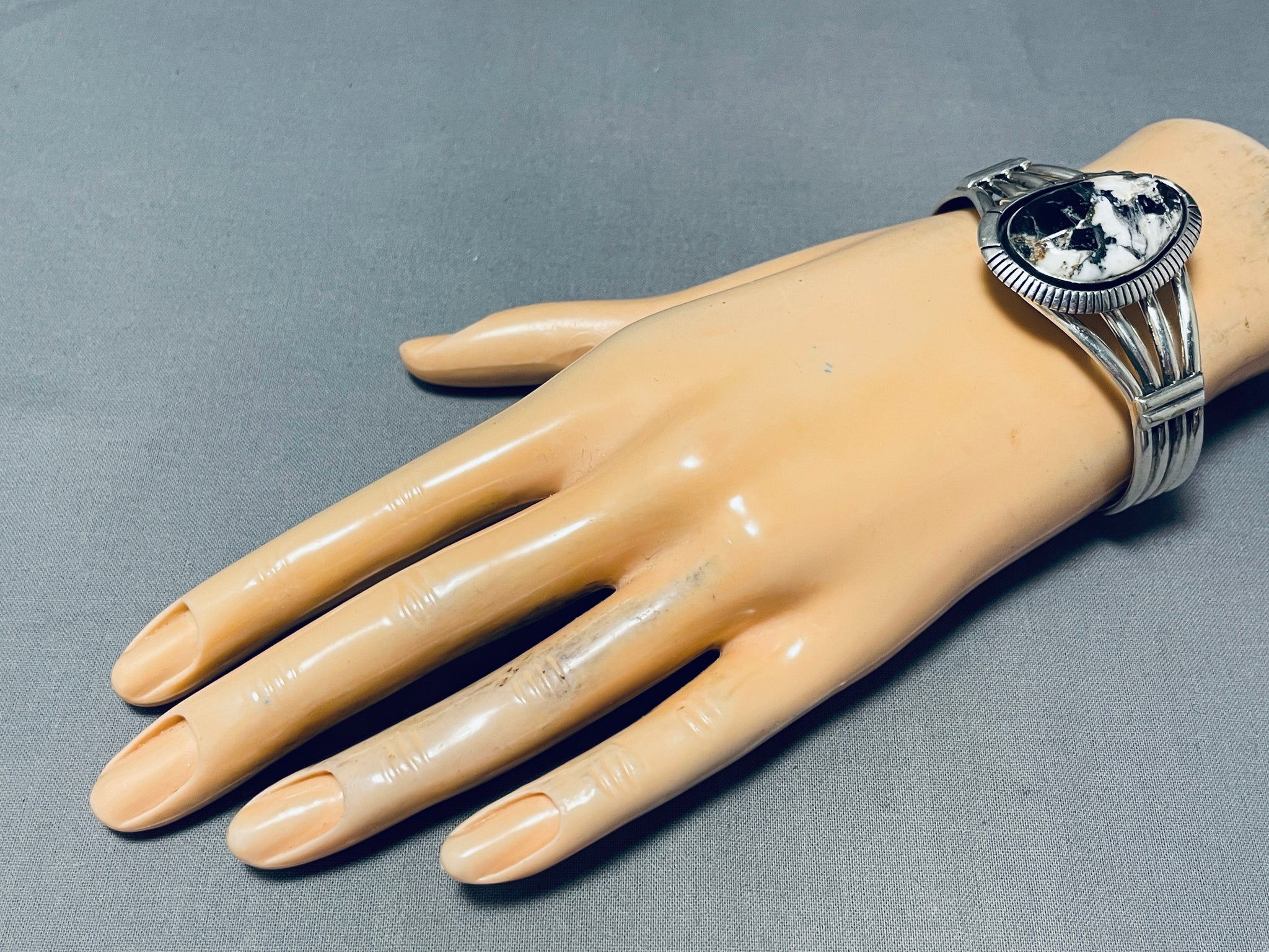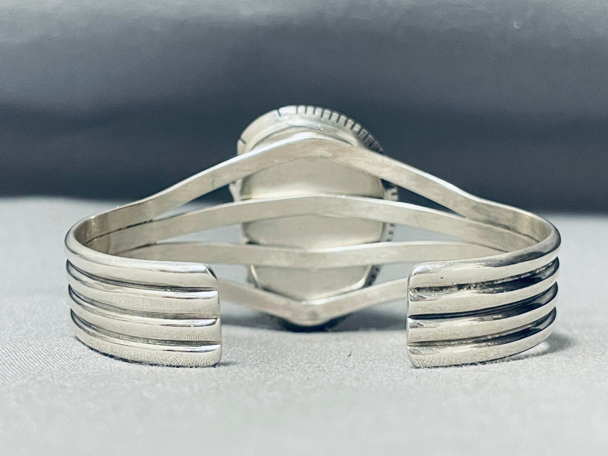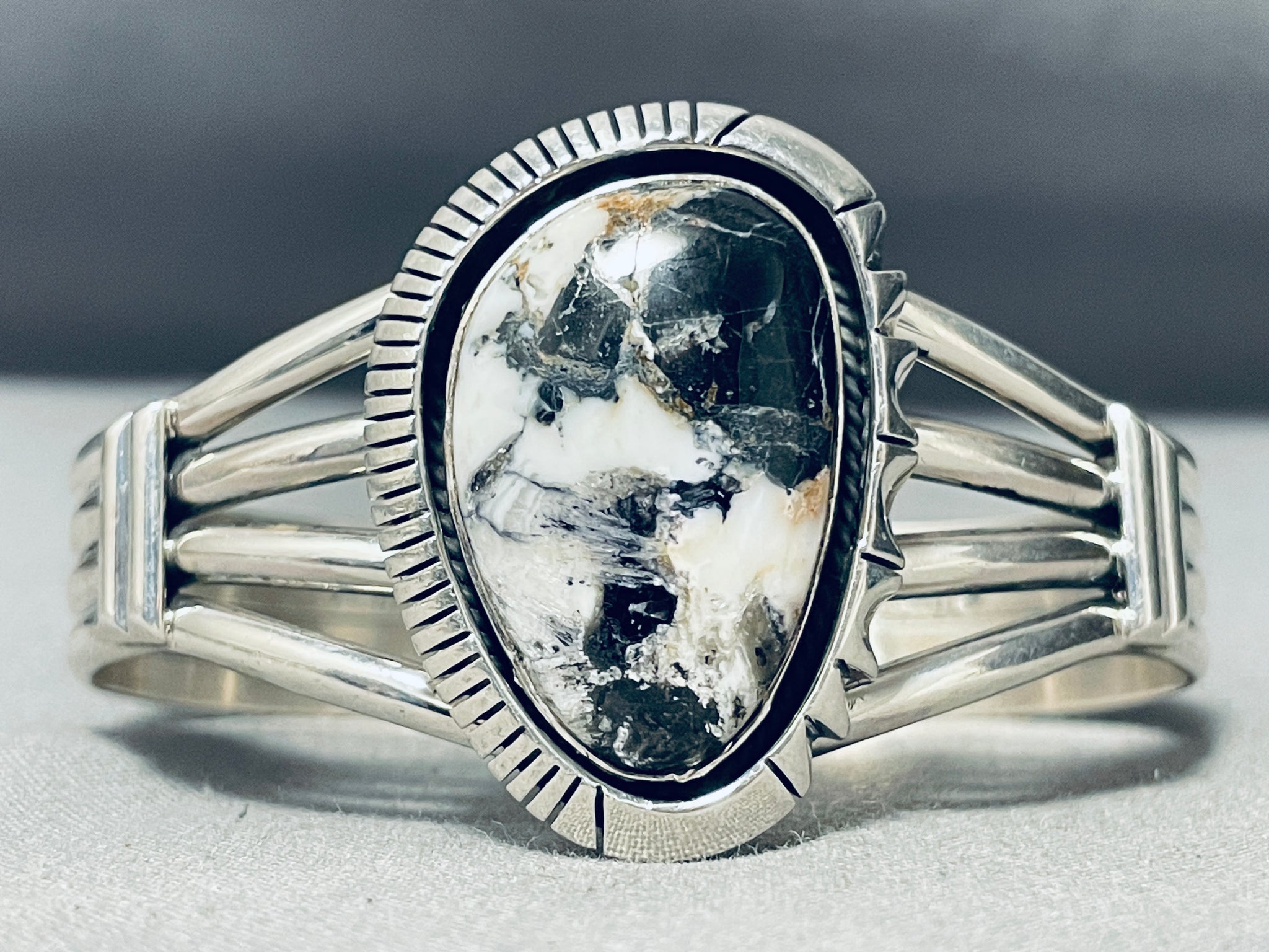 Incredible Native American Navajo White Buffalo Turquoise Sterling Silver Bracelet