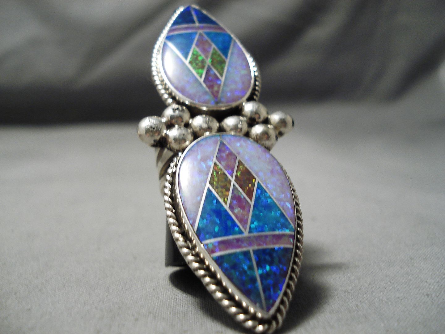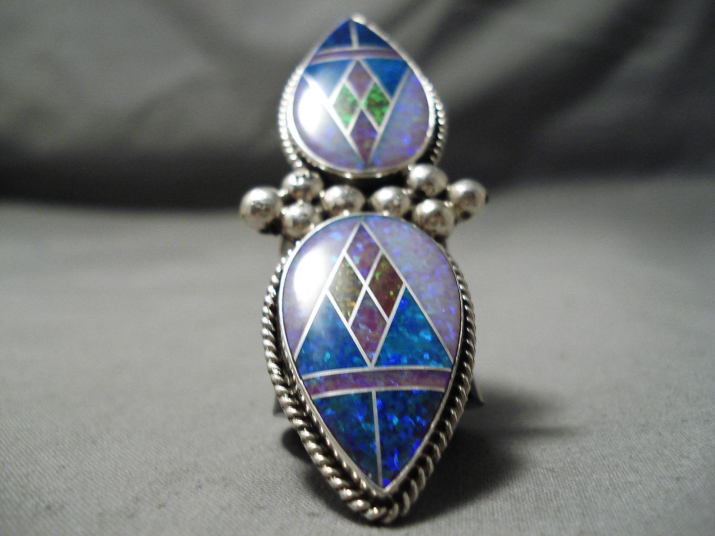 Incredible Native American San Felipe Sterling Silver Opal Ring