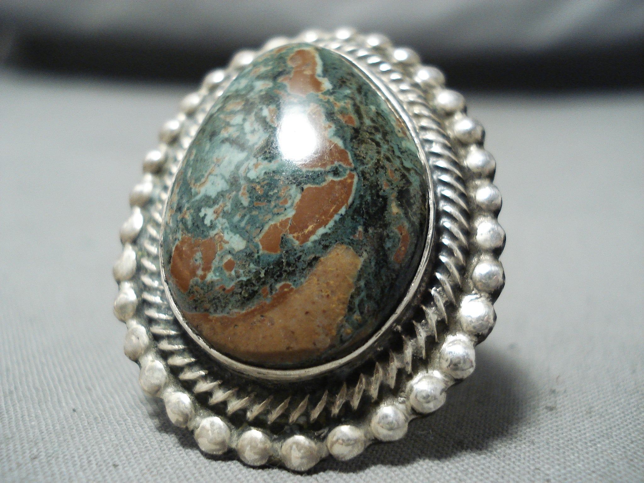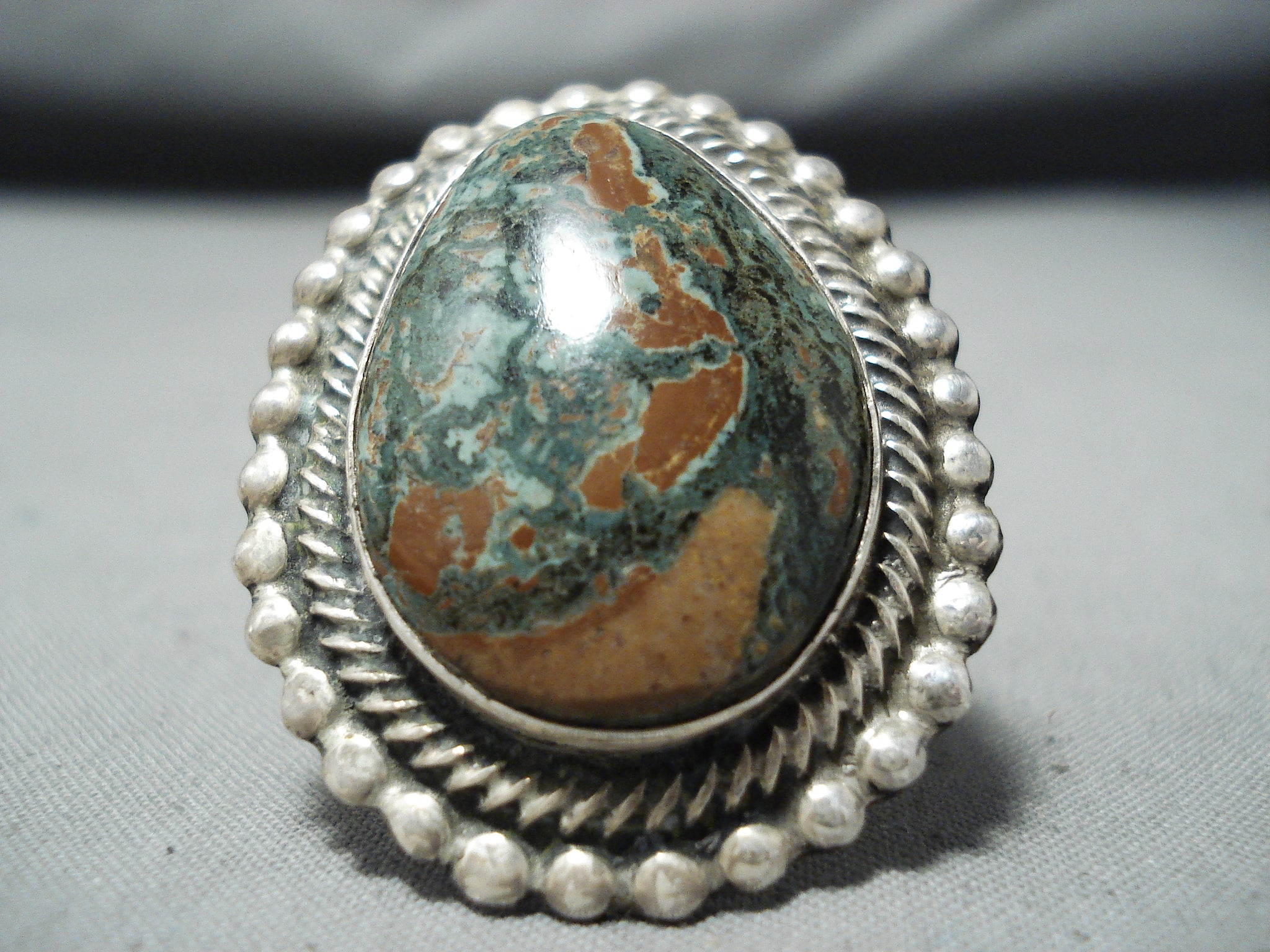 Incredible Navajo Green Kingman Turquoise Sterling Silver Ring Native American