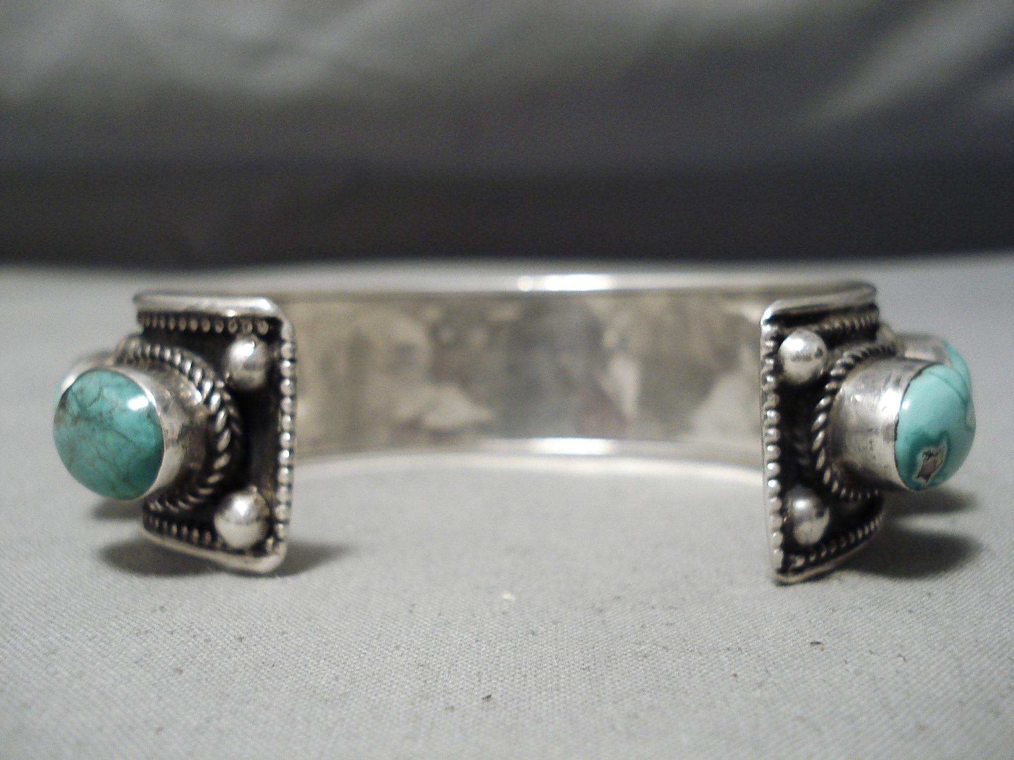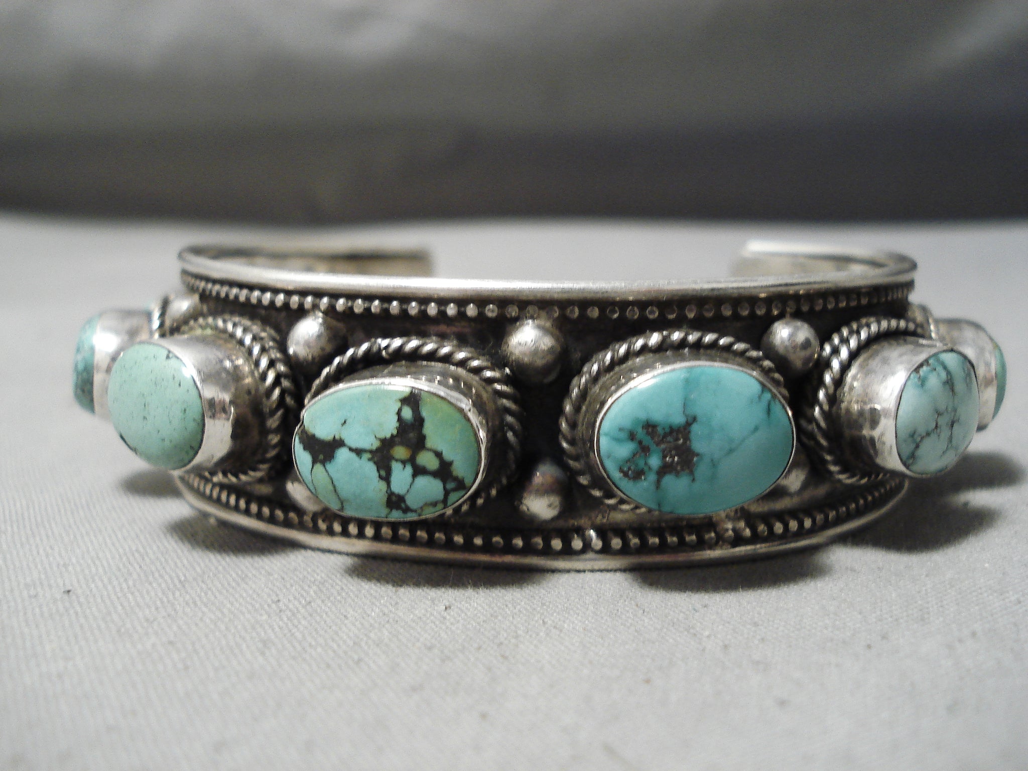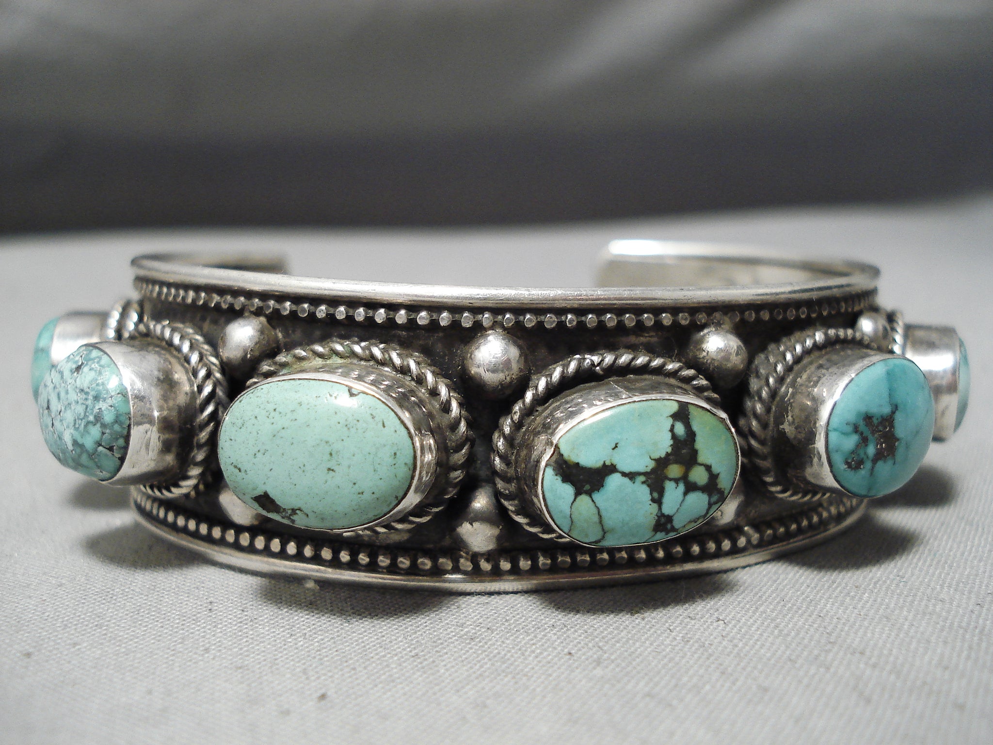 Incredible Vintage Native American Navajo 9 Turquoise Sterling Silver Bracelet