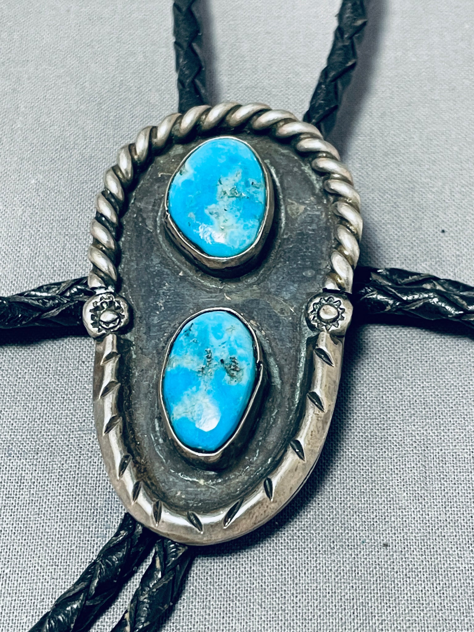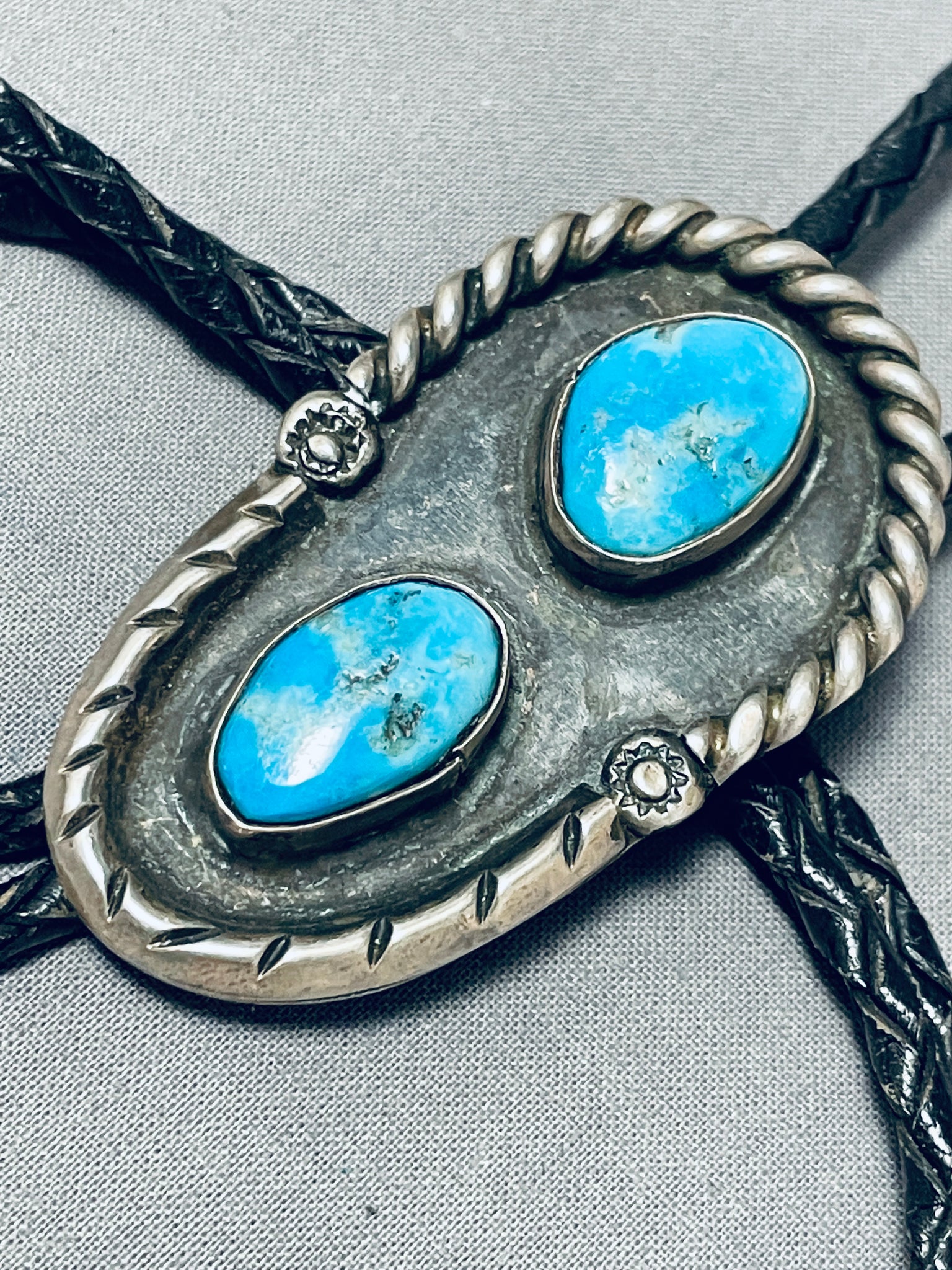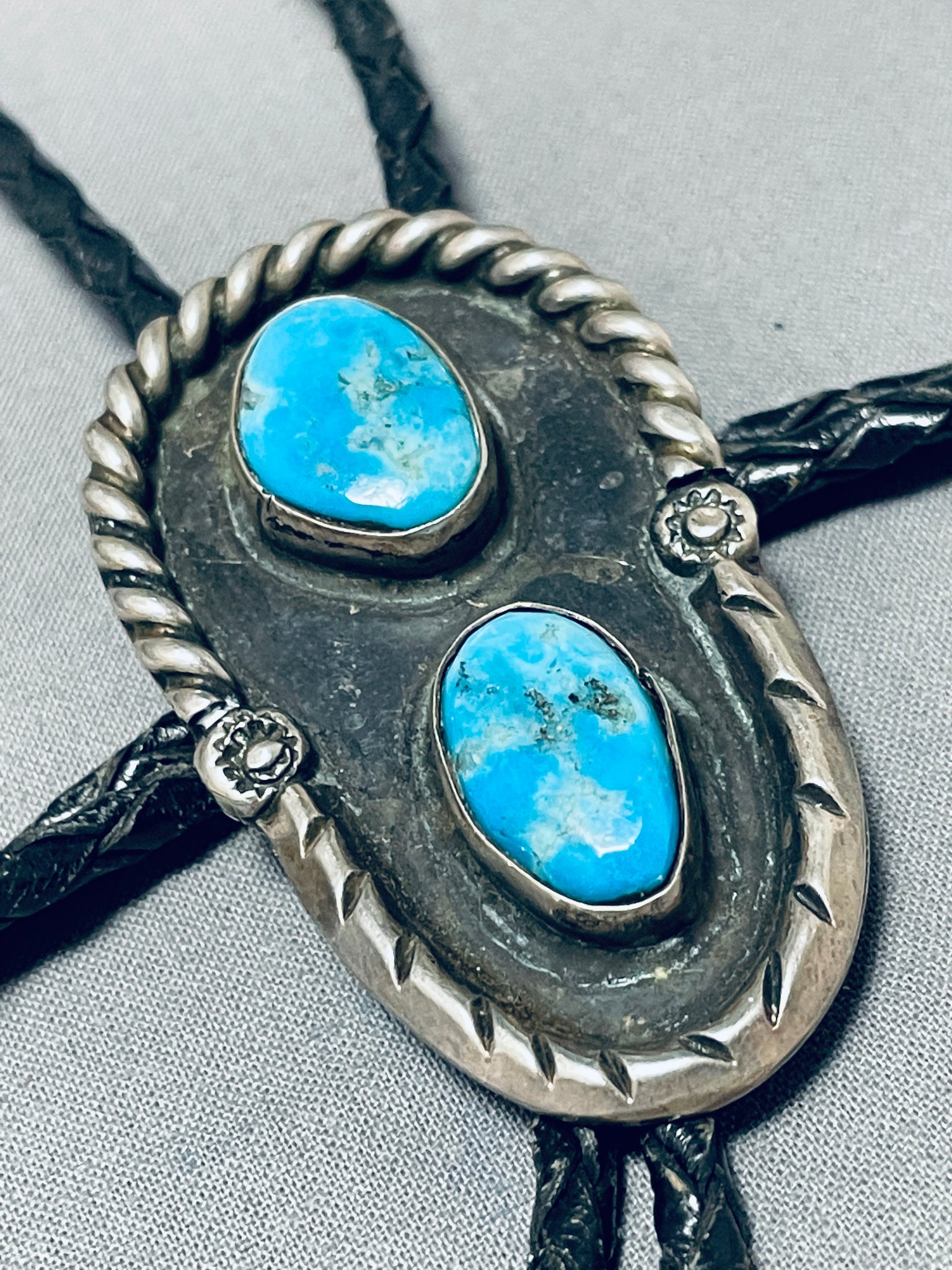 Incredible Vintage Native American Navajo Blue Gem Turquoise Sterling Silver Bolo Tie