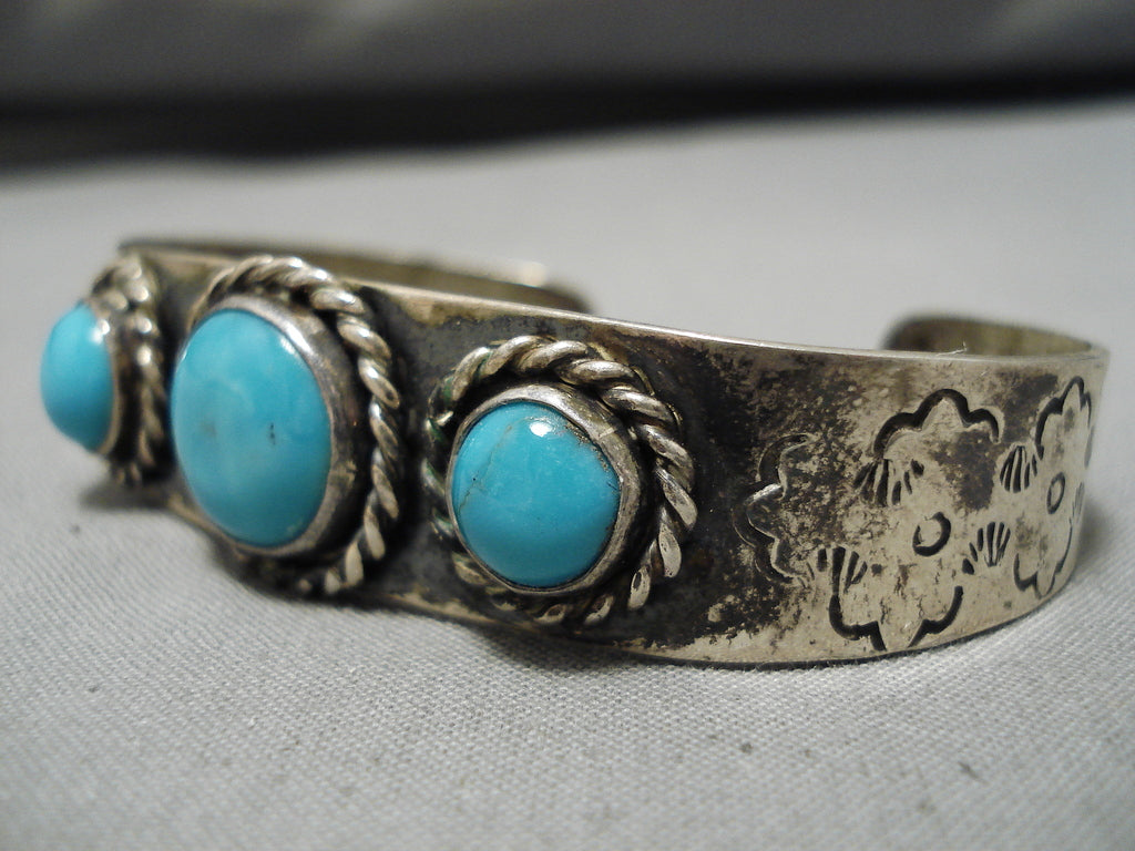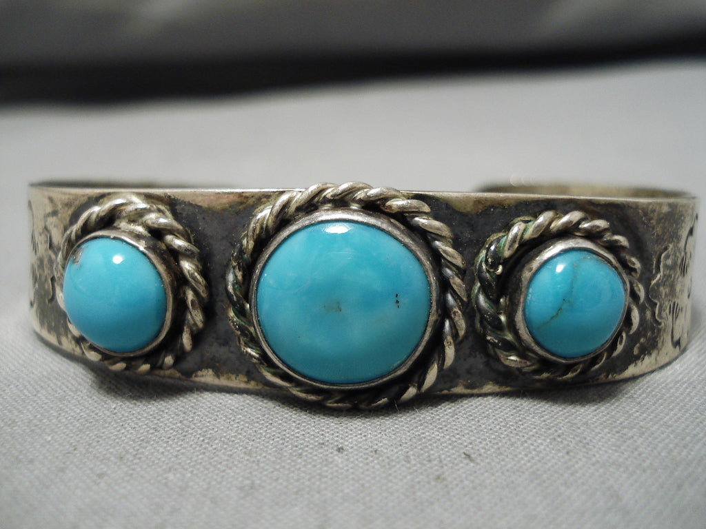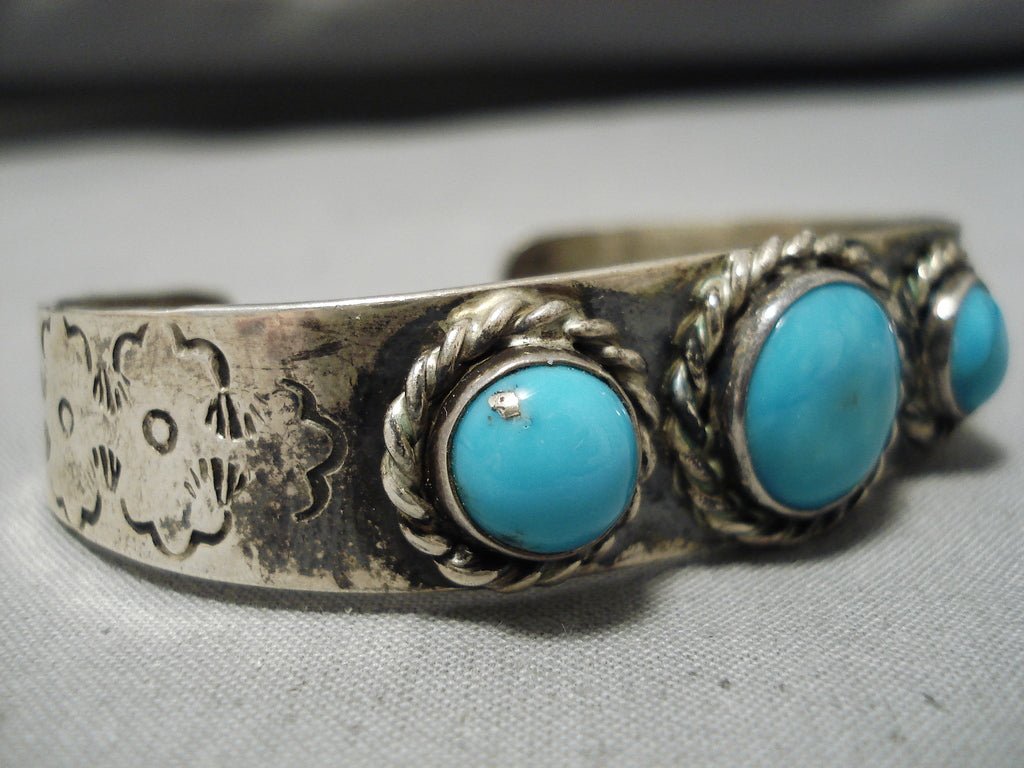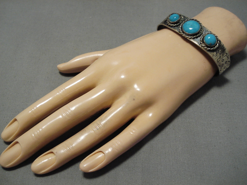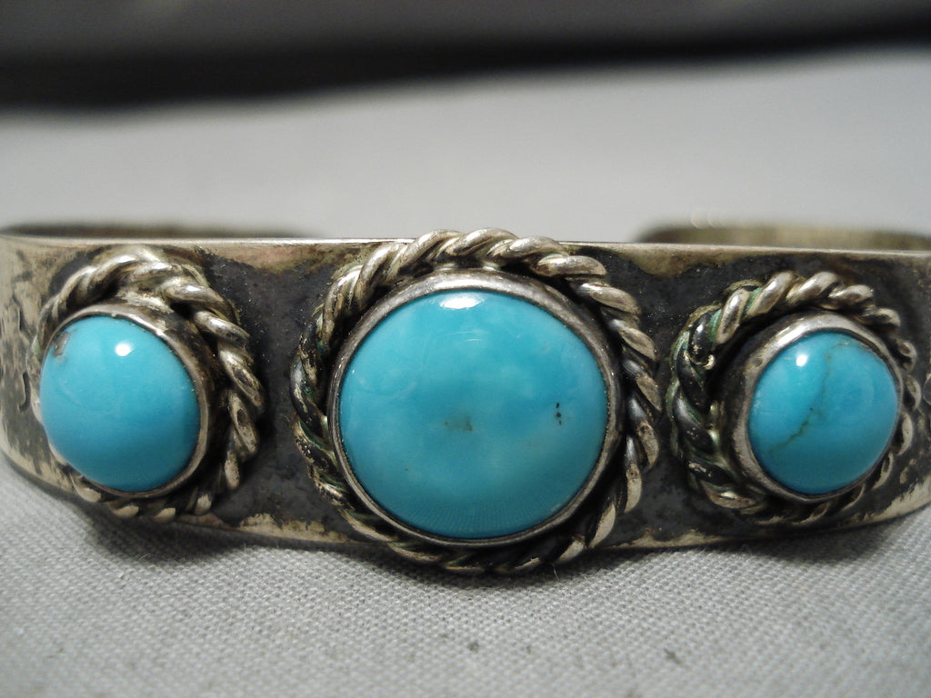 Incredible Vintage Native American Navajo Blue Gem Turquoise Sterling Silver Bracelet Cuff